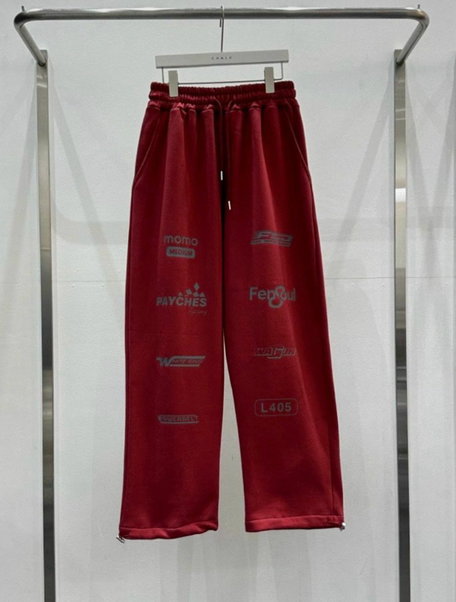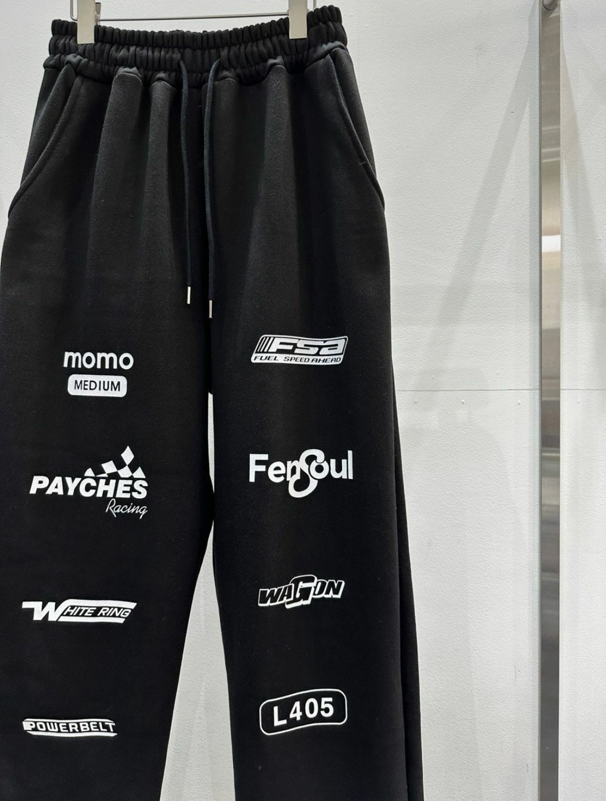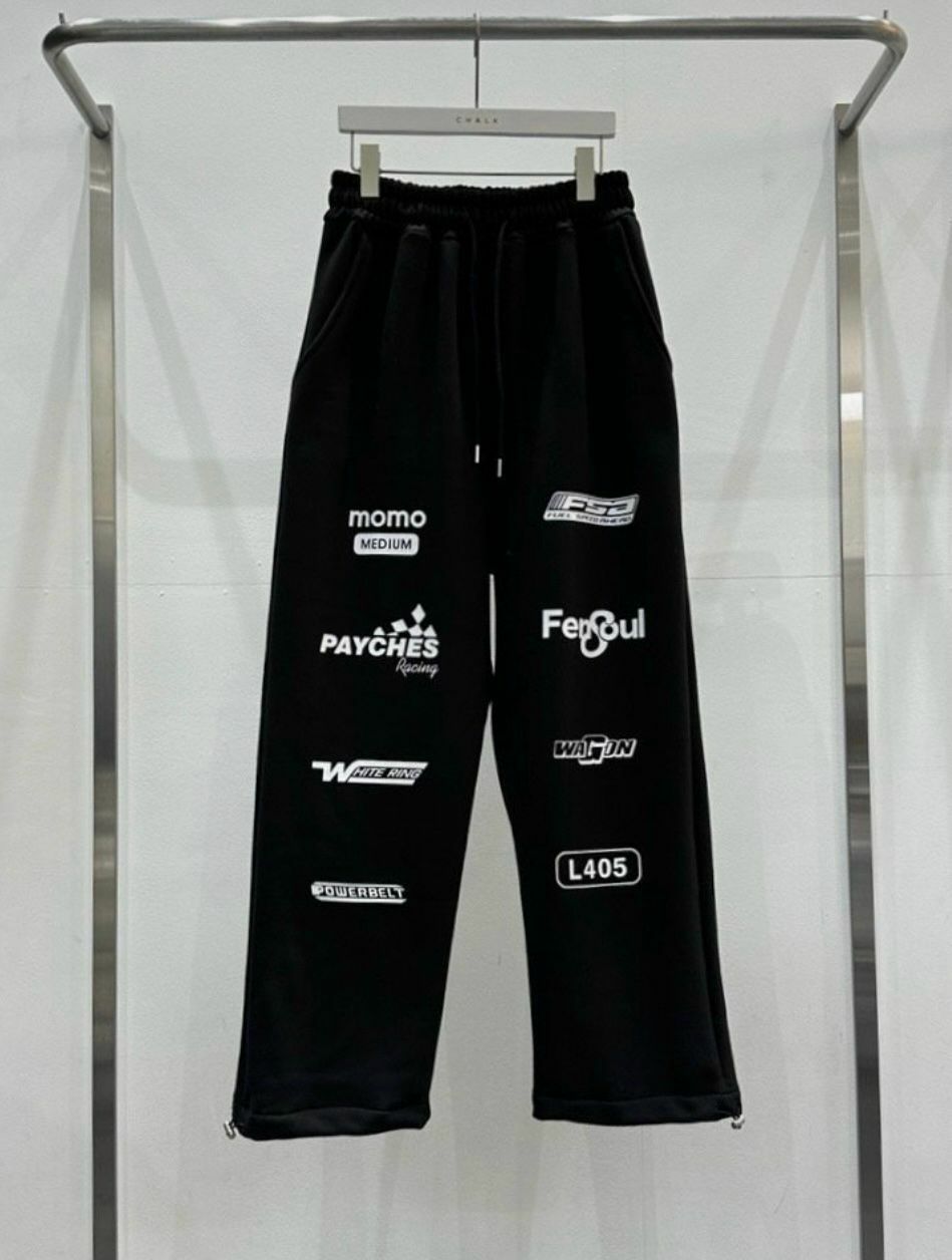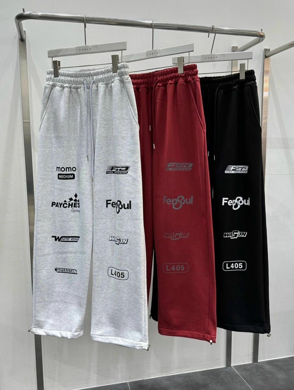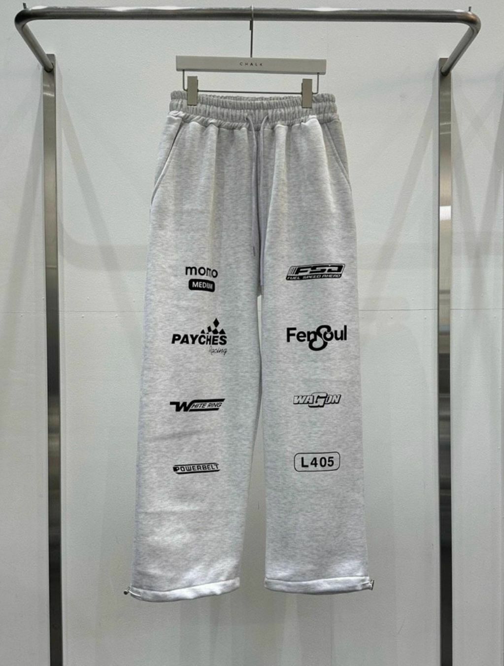 英文字棉質可束腳運動褲(薄抓毛底) CHALK-002P