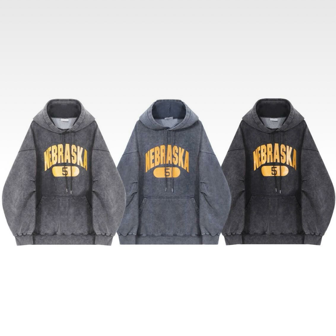 洗水英文字連帽衛衣(薄抓毛底) Clear-030T