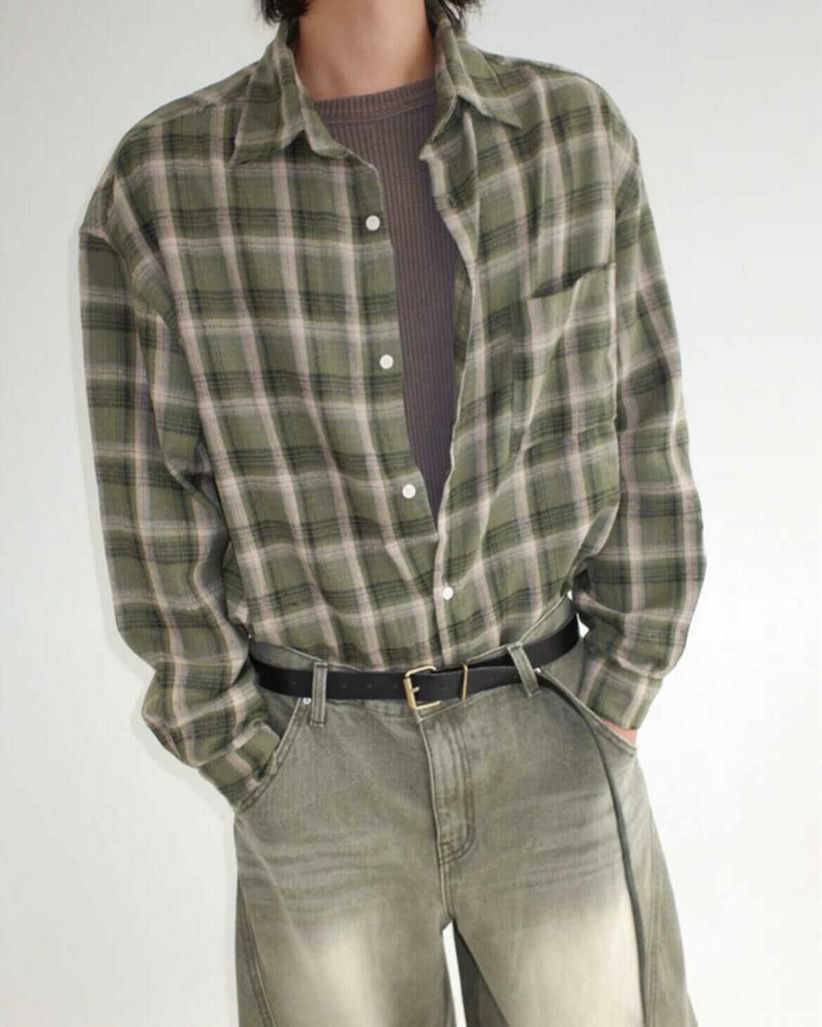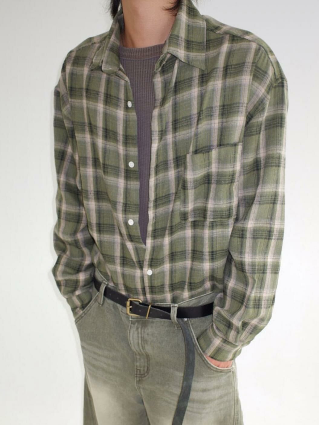 格仔長袖恤衫 CONCRETE-001S