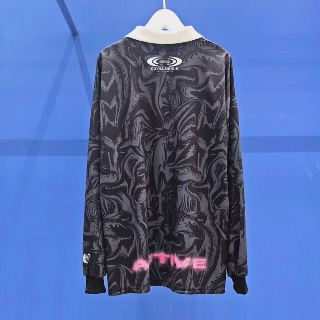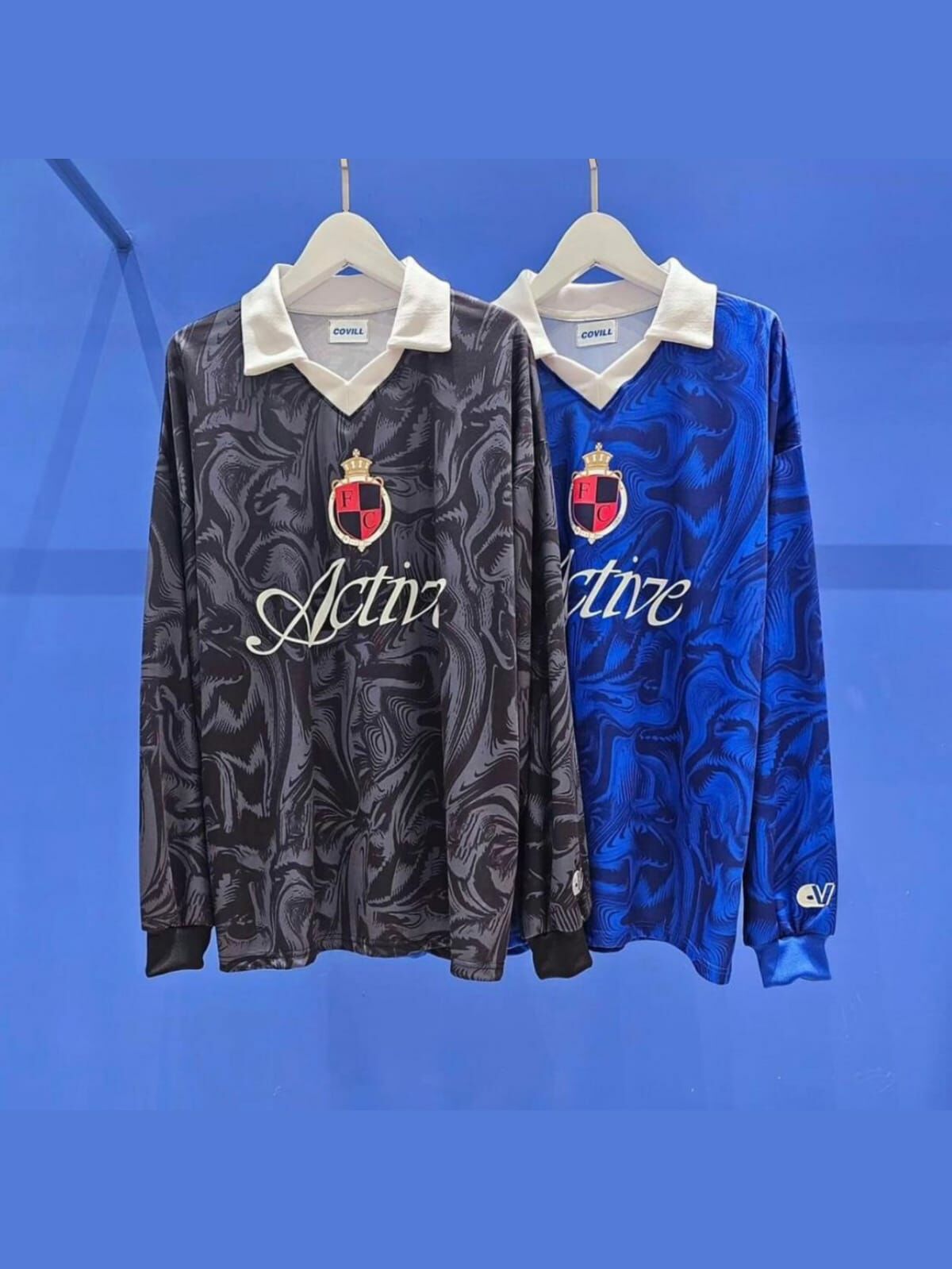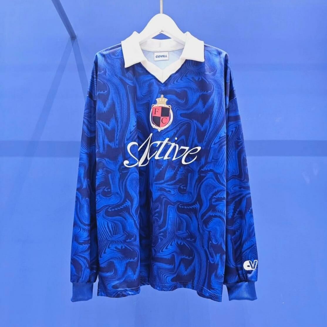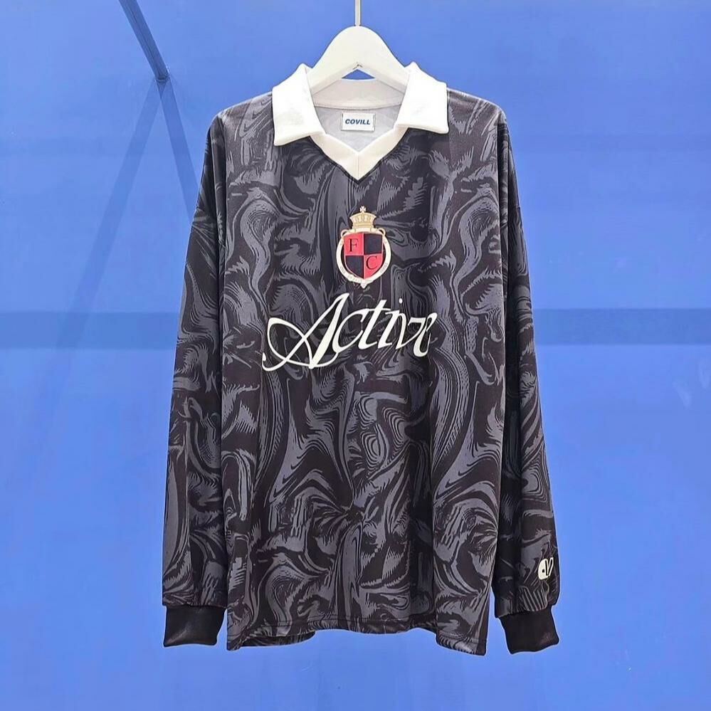 反領亂紋英文字長袖衫 COVILL-126T