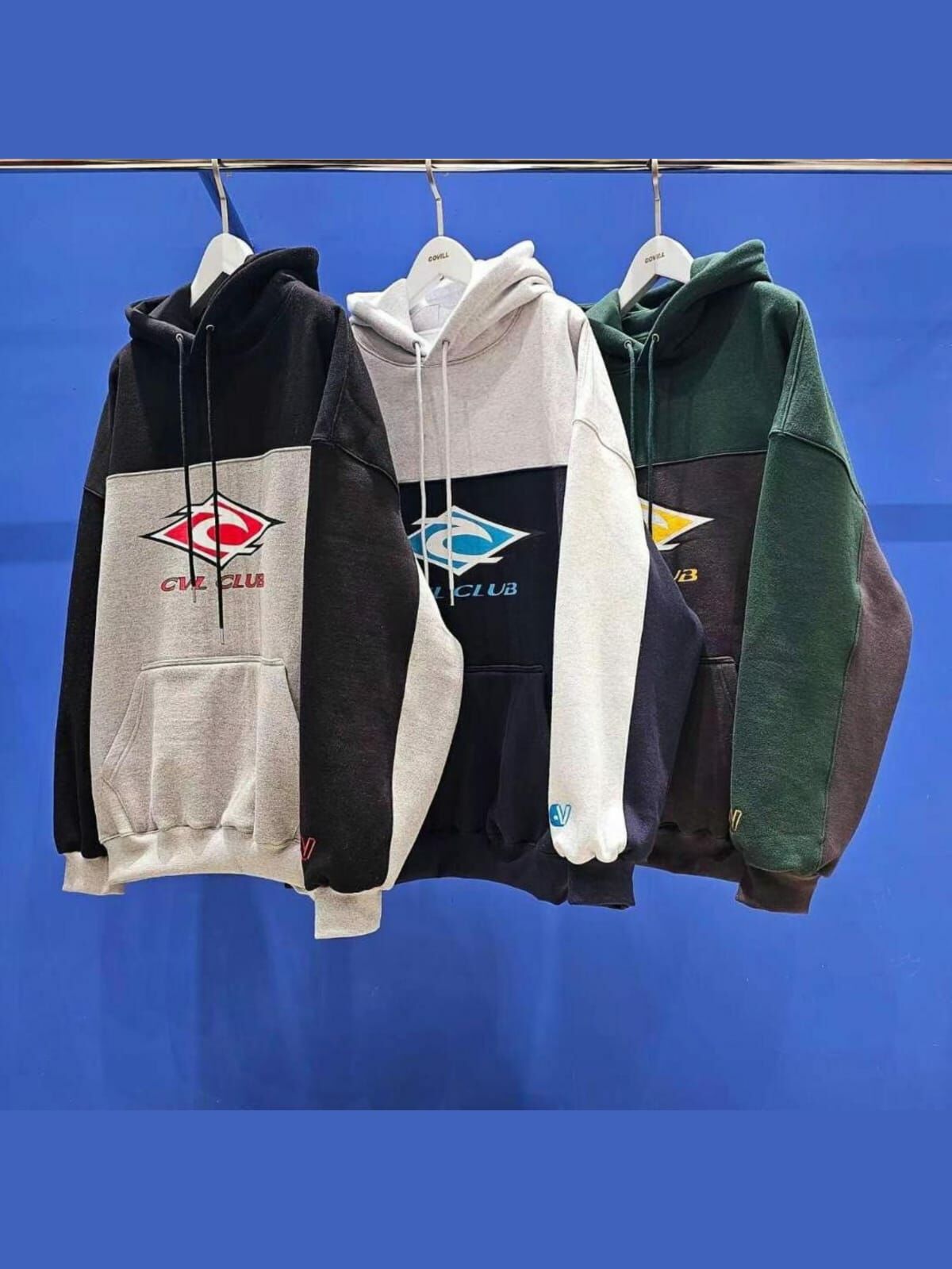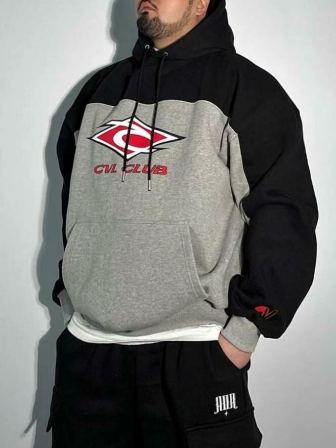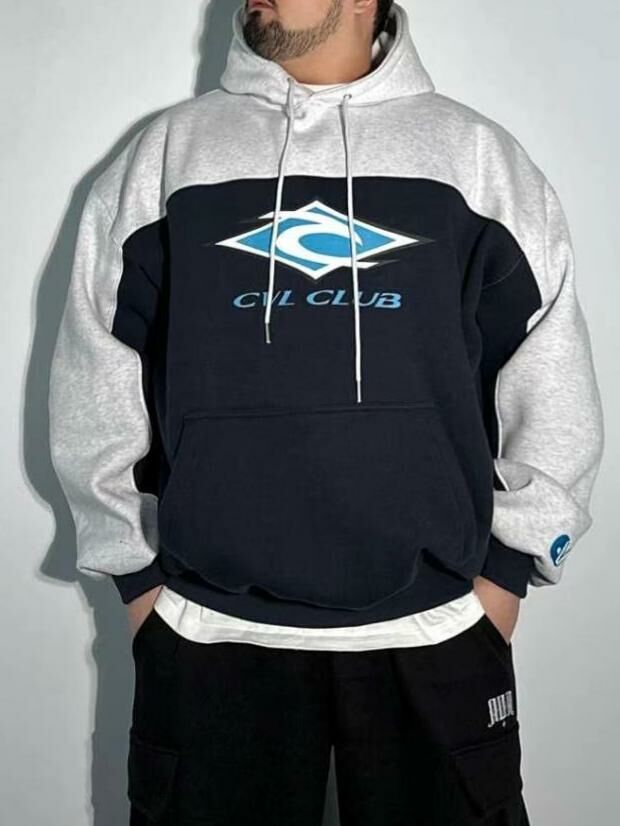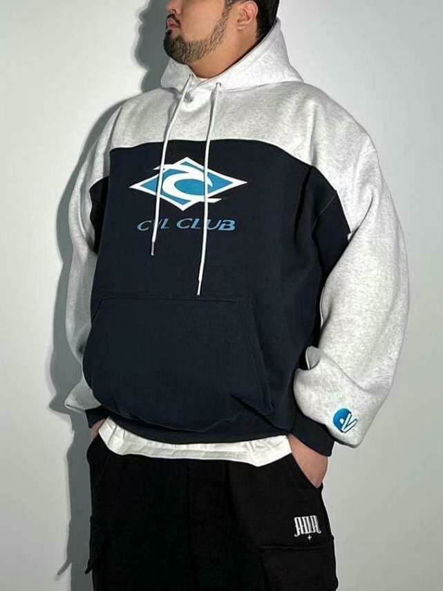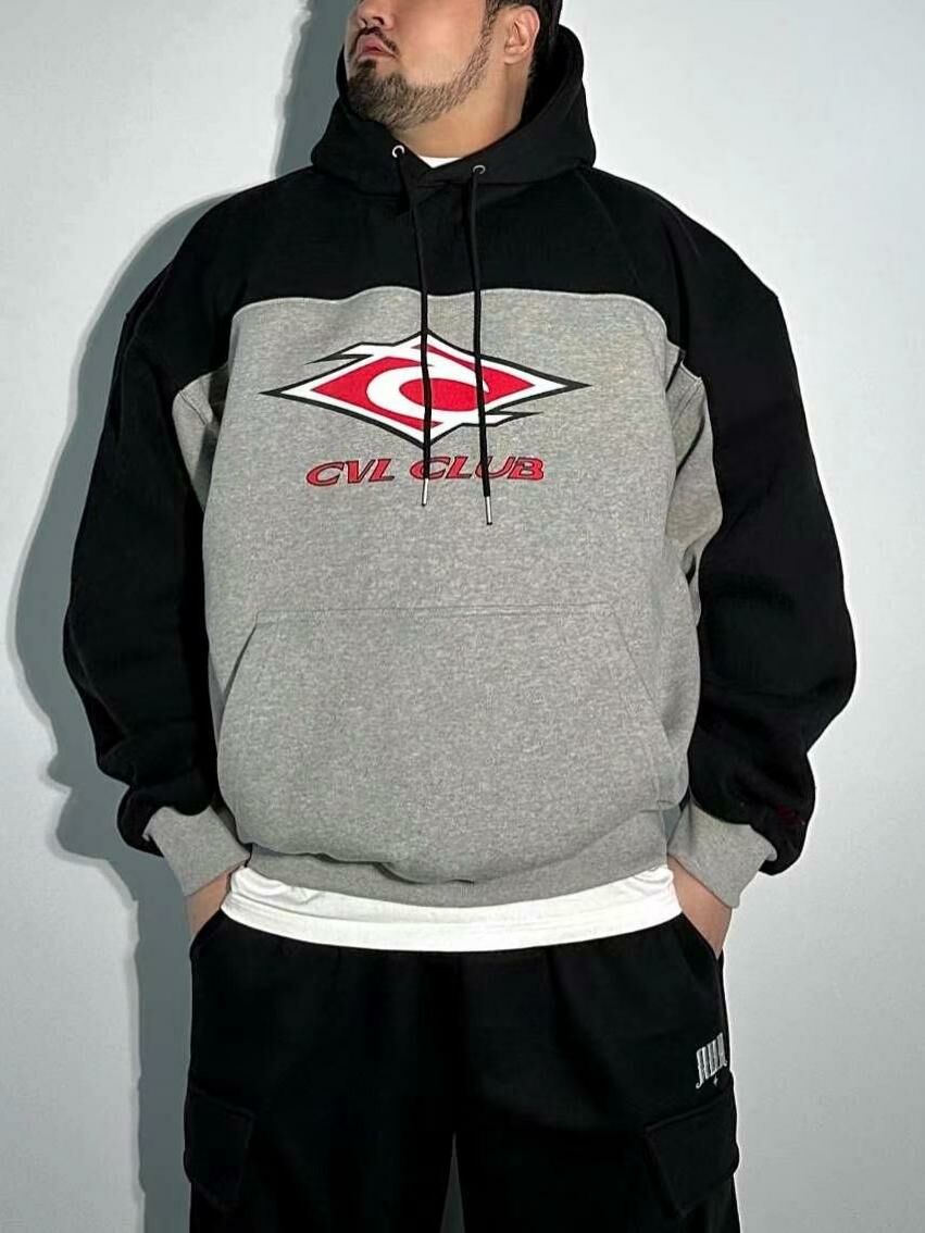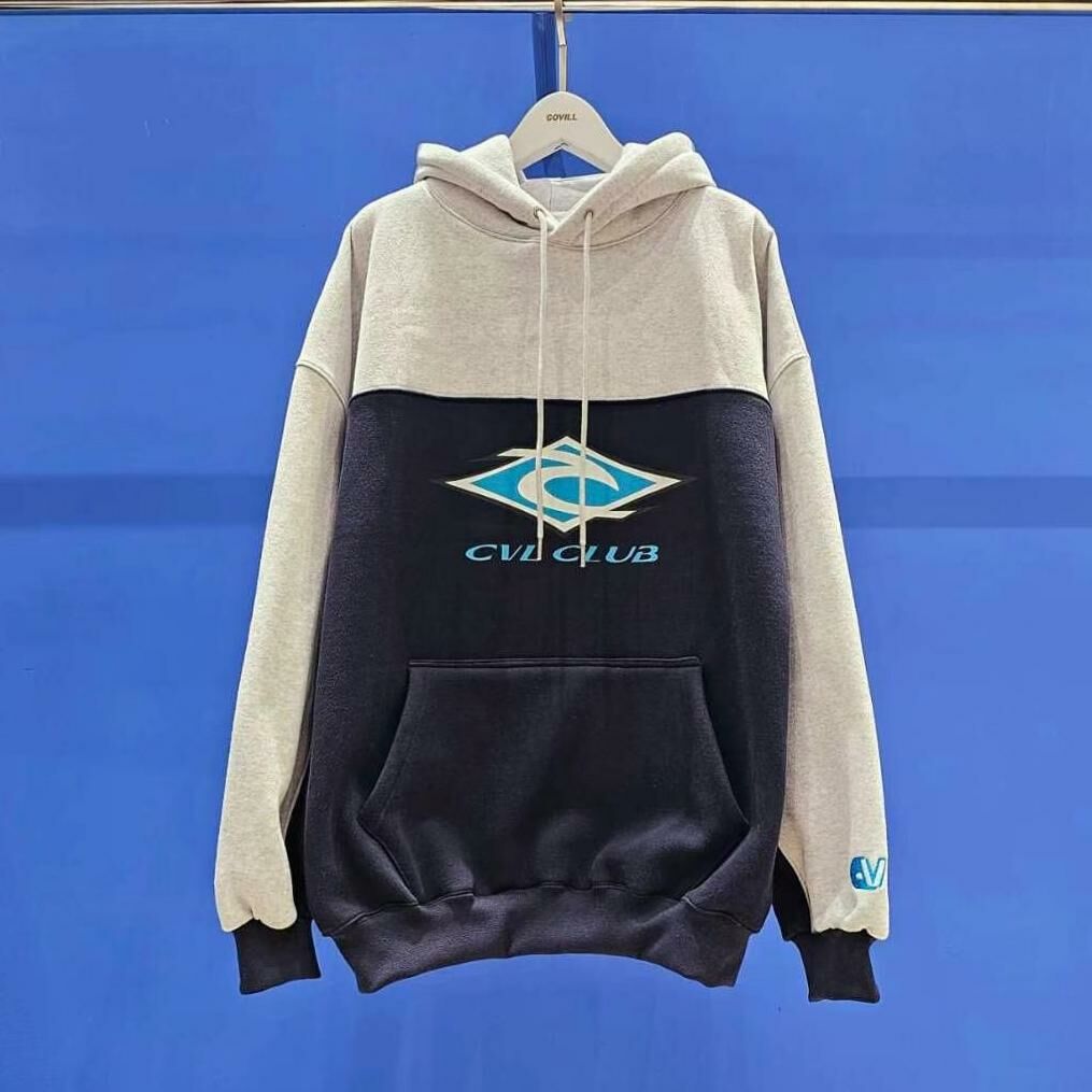 拼色英文字圖案連帽衛衣(薄抓毛底) COVILL-159T