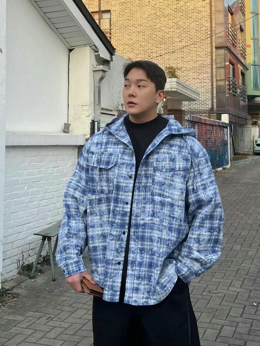 格仔連帽長袖恤衫外套 COVILL-167JK