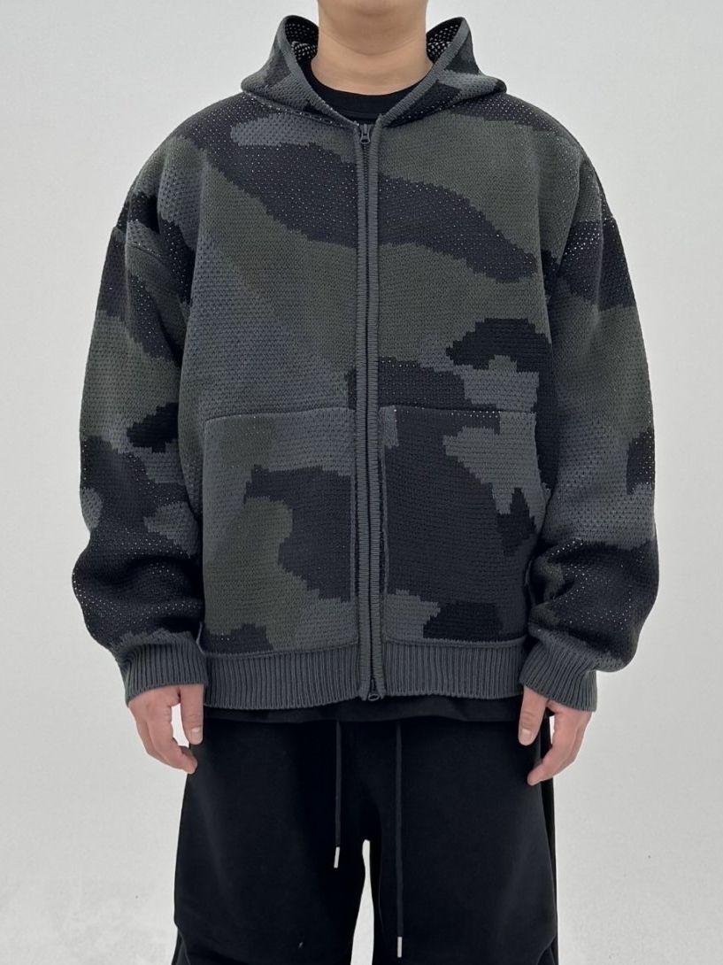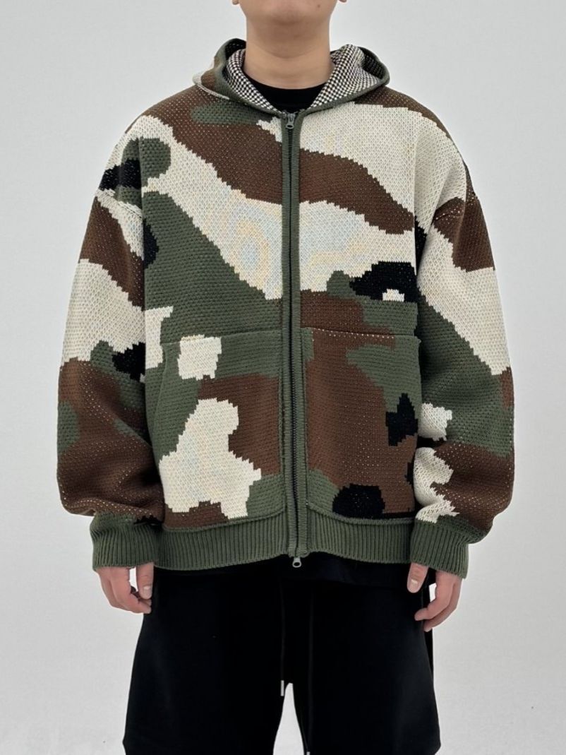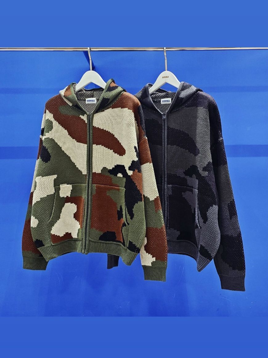 迷彩連帽拉鍊針織外套 COVILL-233JK