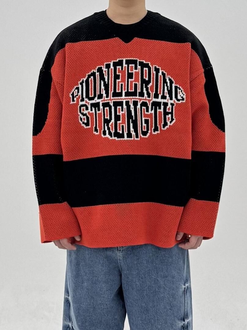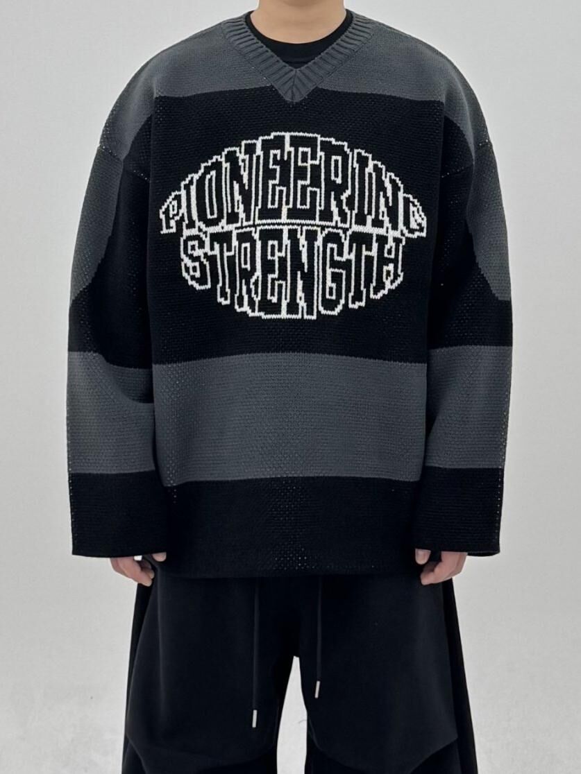 拼色英文字針織衫 COVILL-234T