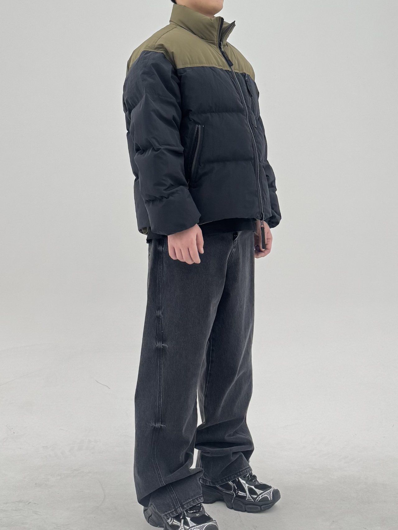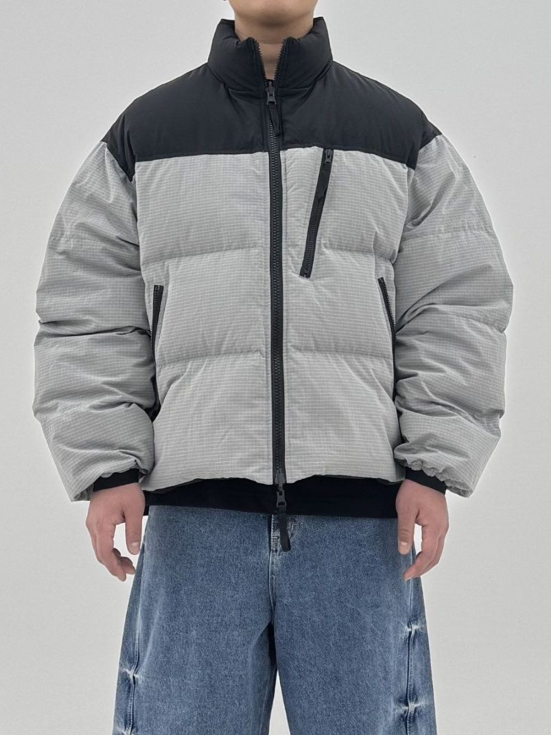 拼色企領拉鍊外套(雙面羽絨) COVILL-241JK