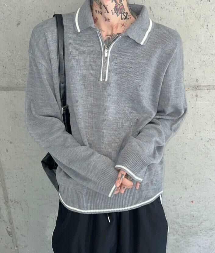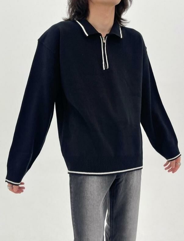 針織半拉鍊長袖PoloTee Crunky_youth-004T