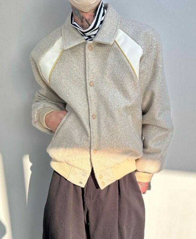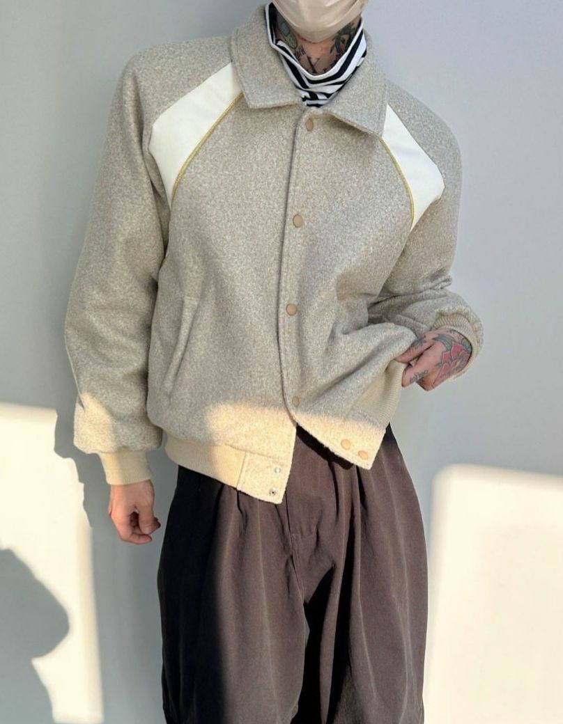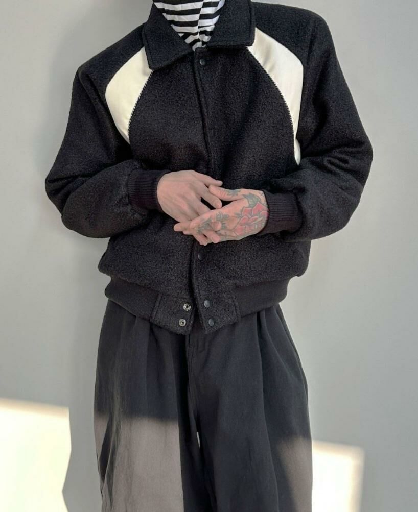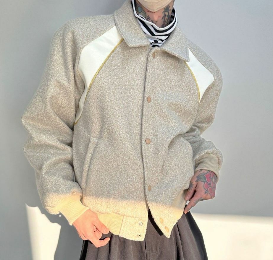 恤衫領拼皮開胸外套 Crunky_youth-013JK