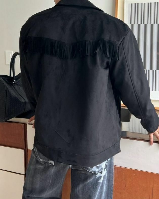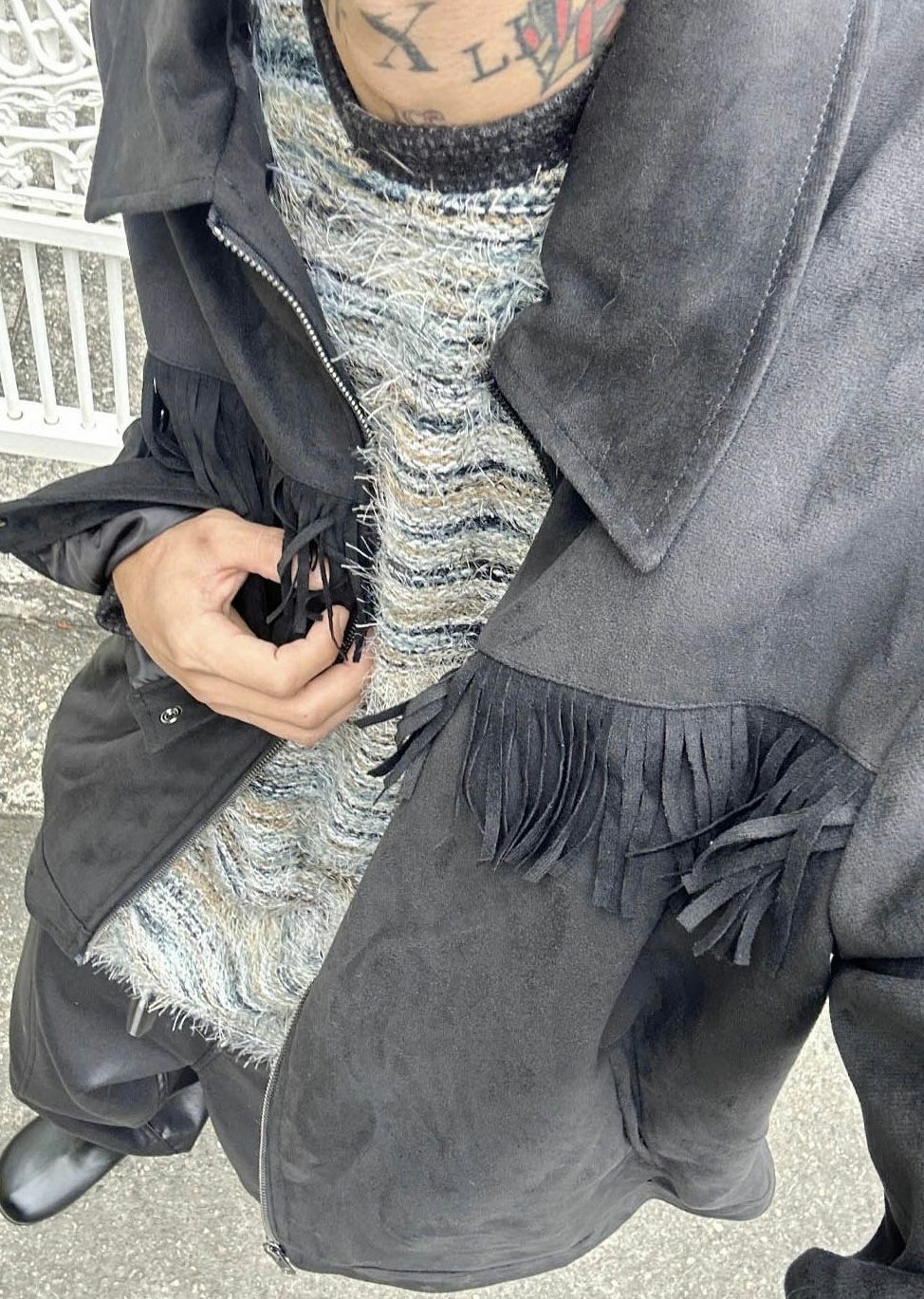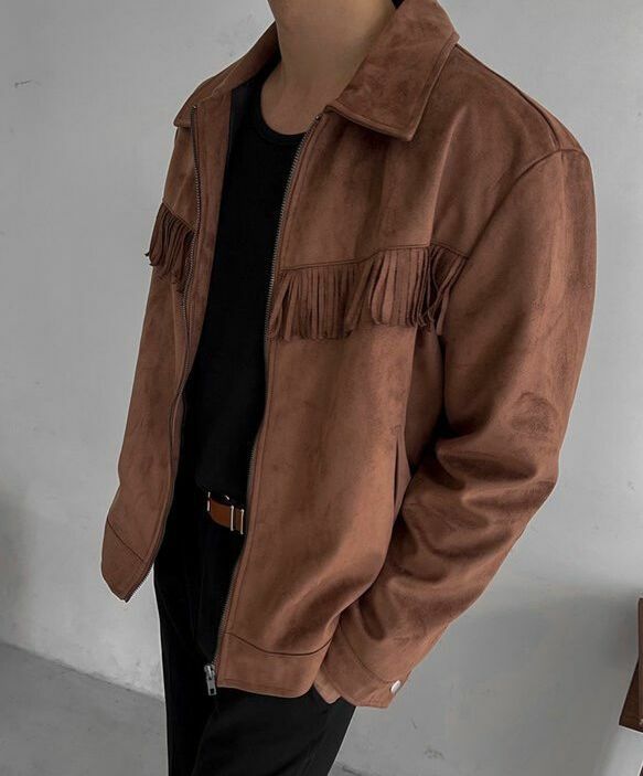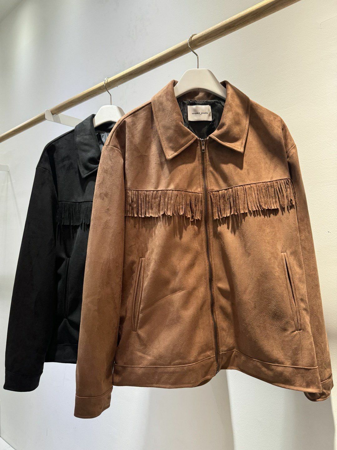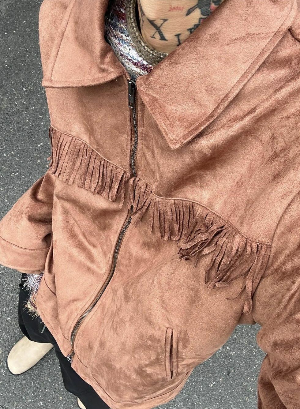 淨色反領流蘇拉鍊猄面外套 Crunky_youth-066JK