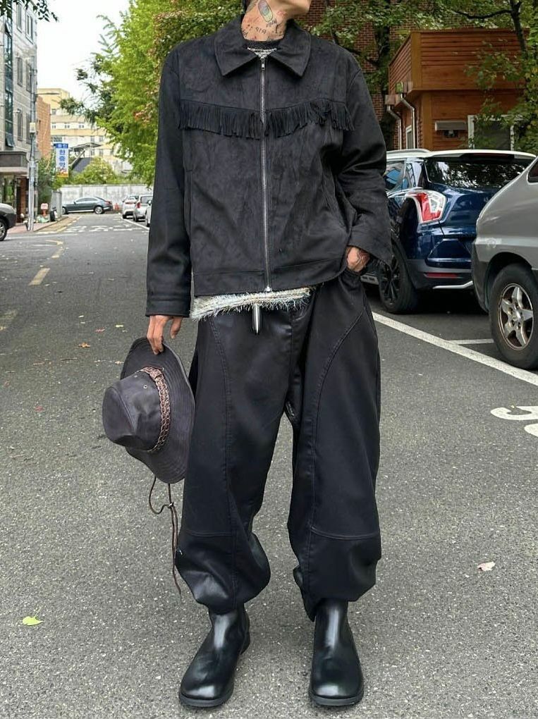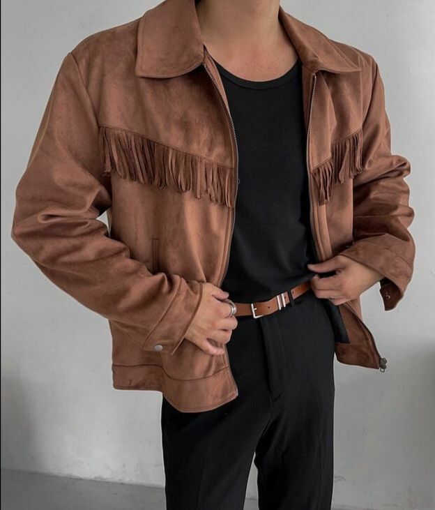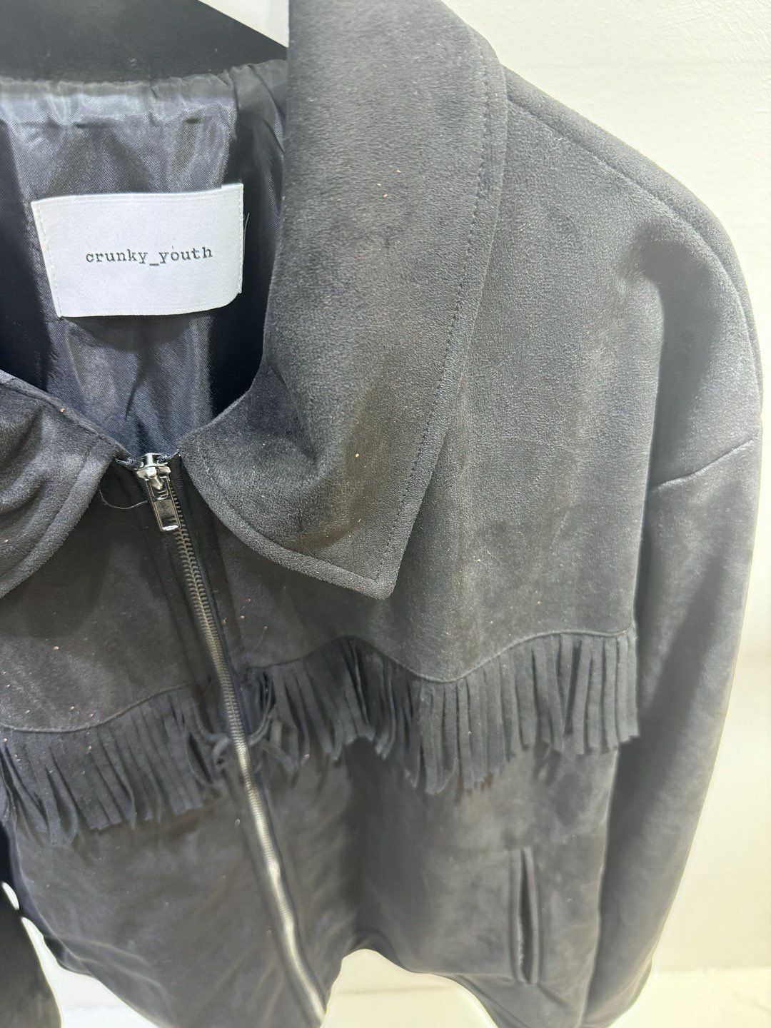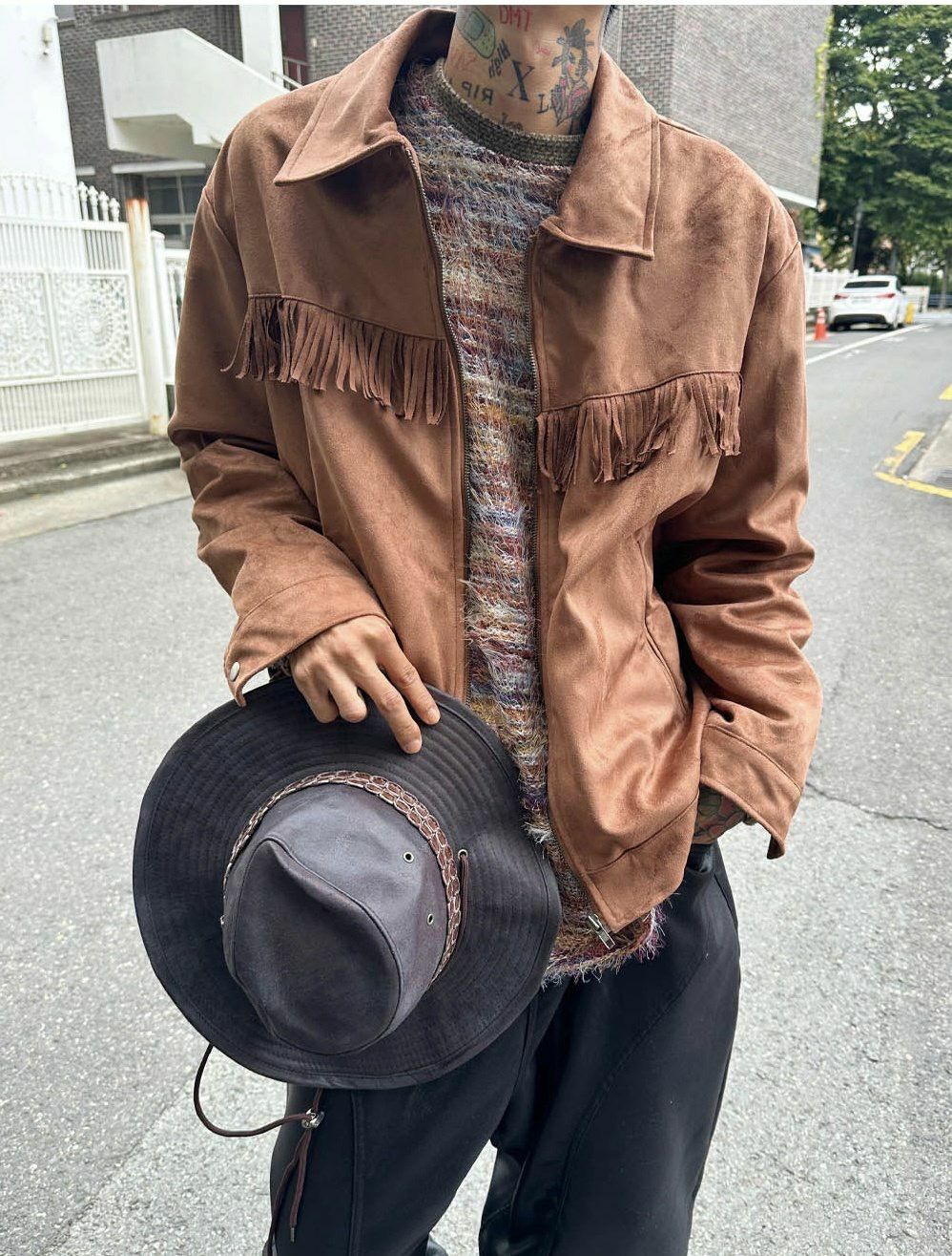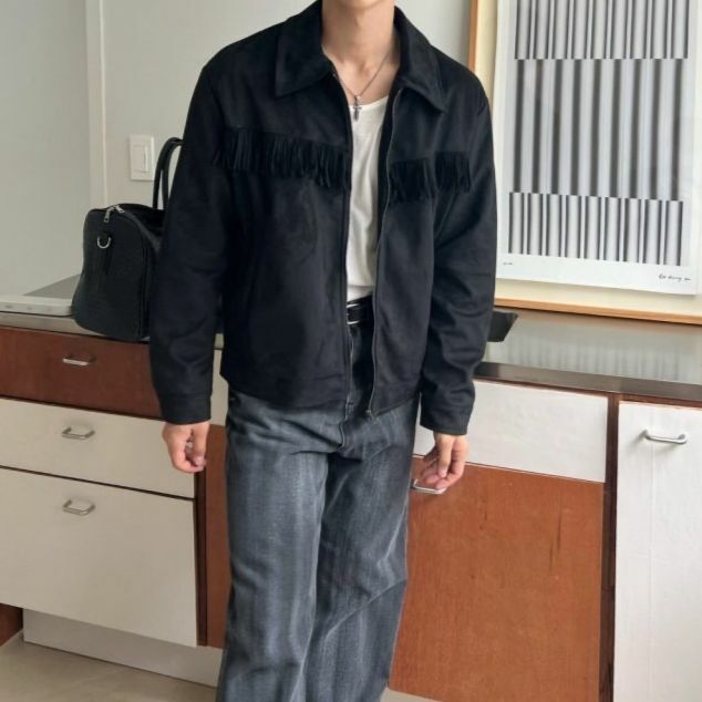 淨色反領流蘇拉鍊猄面外套 Crunky_youth-066JK