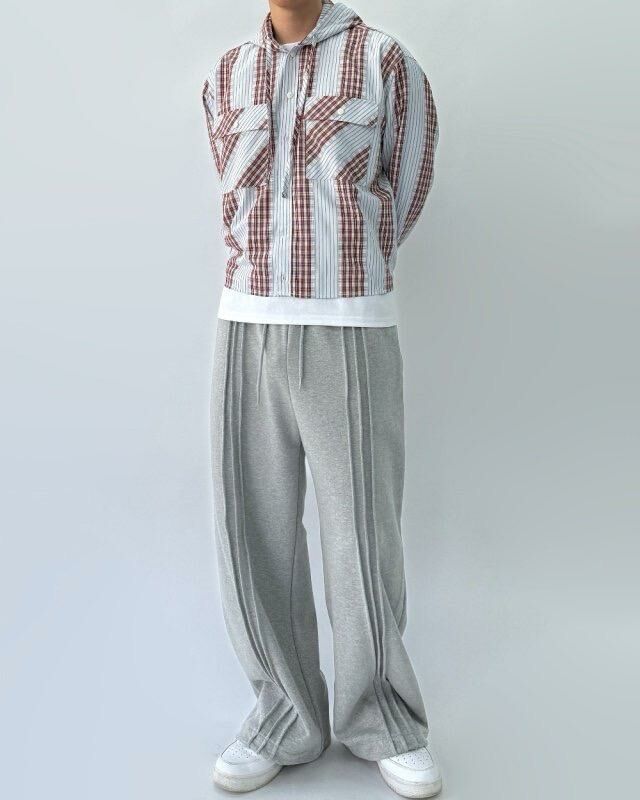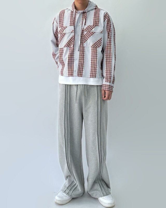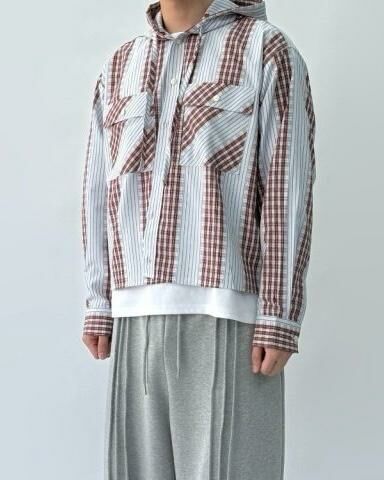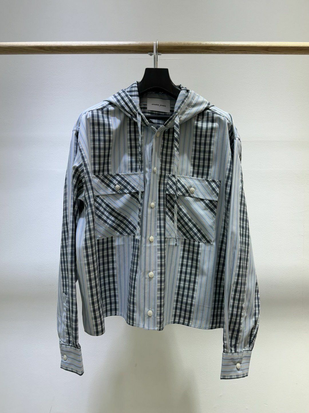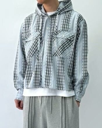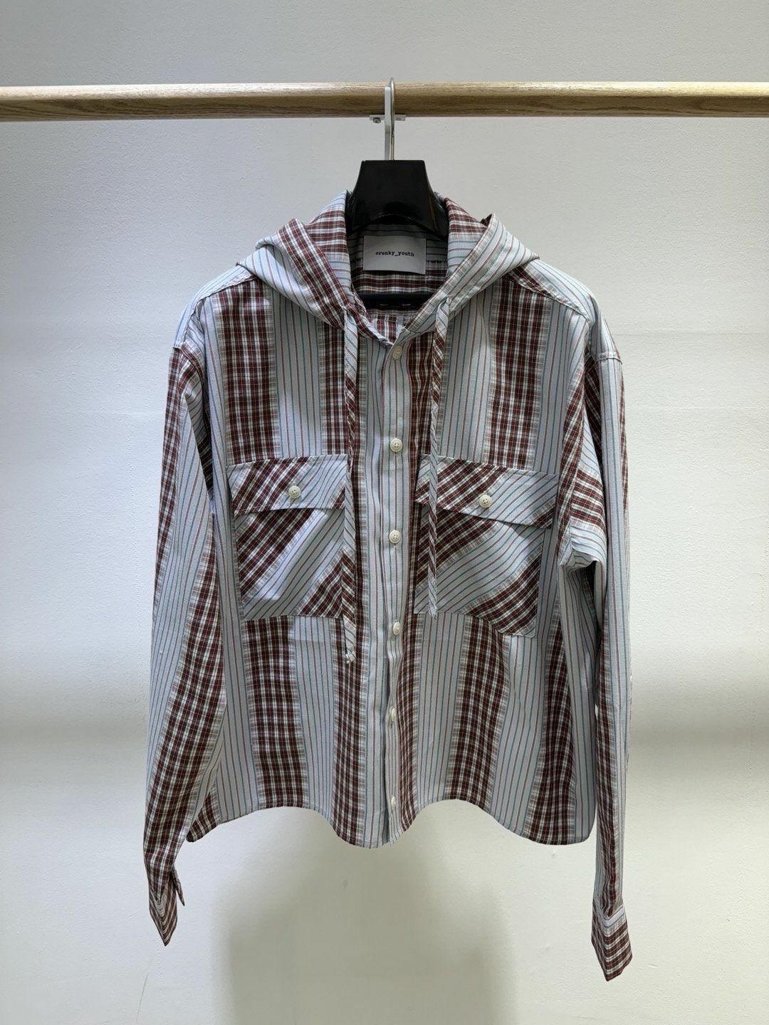 拼格仔連帽長袖恤衫 Crunky_youth-086JK