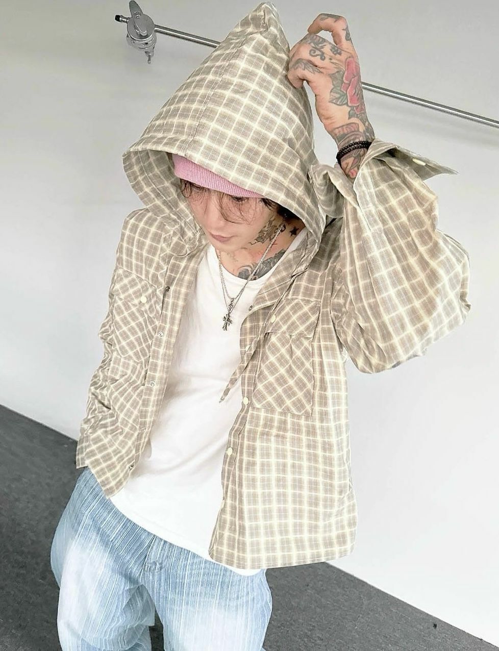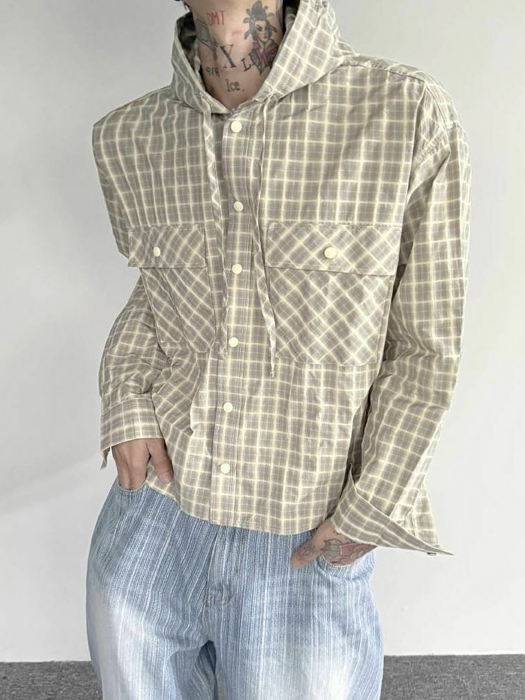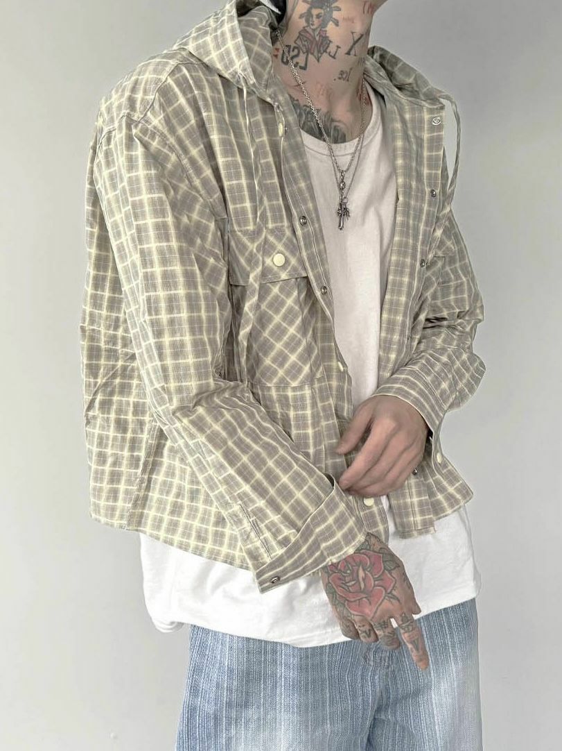 格仔連帽長袖恤衫 Crunky_youth-093JK