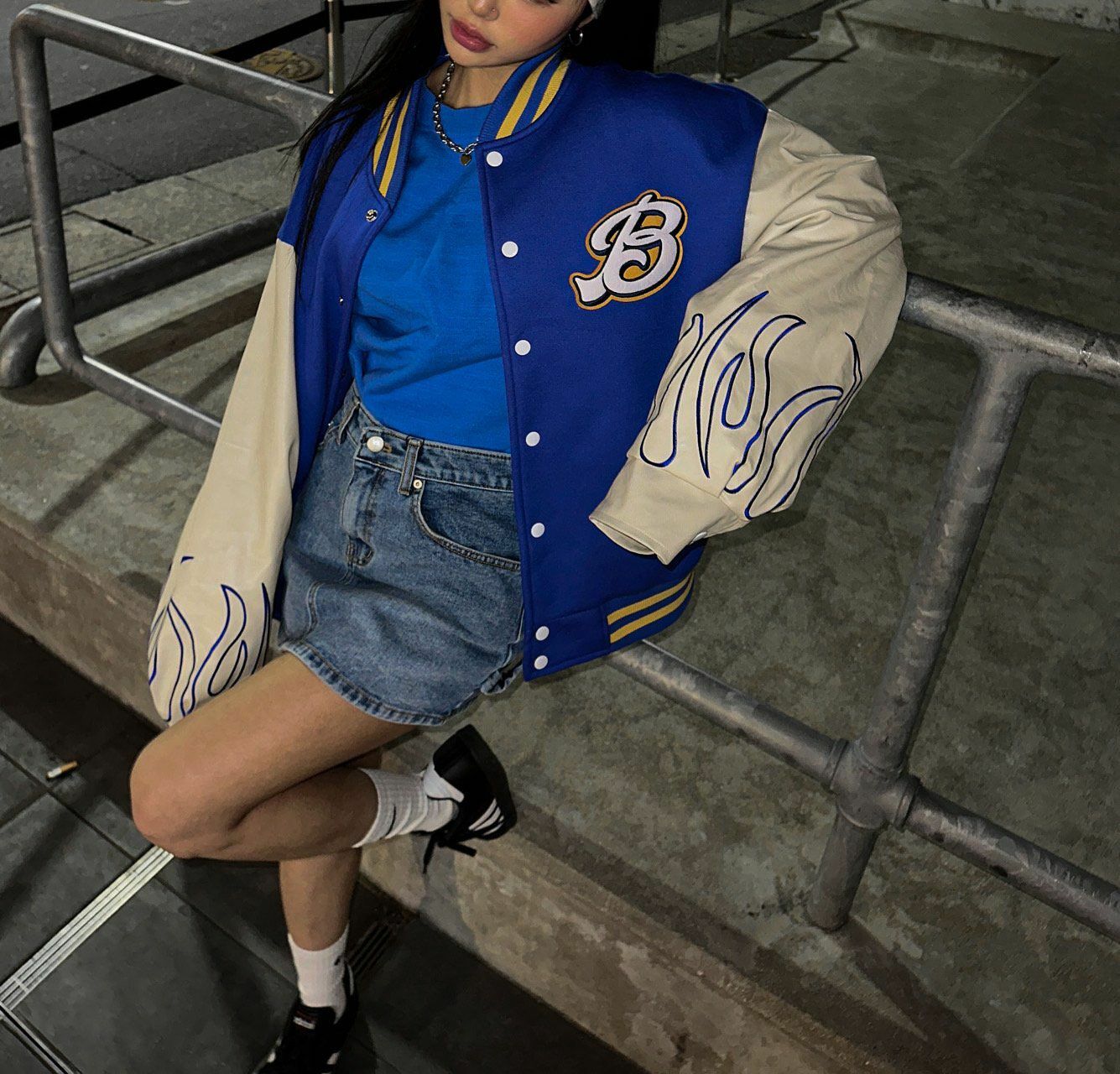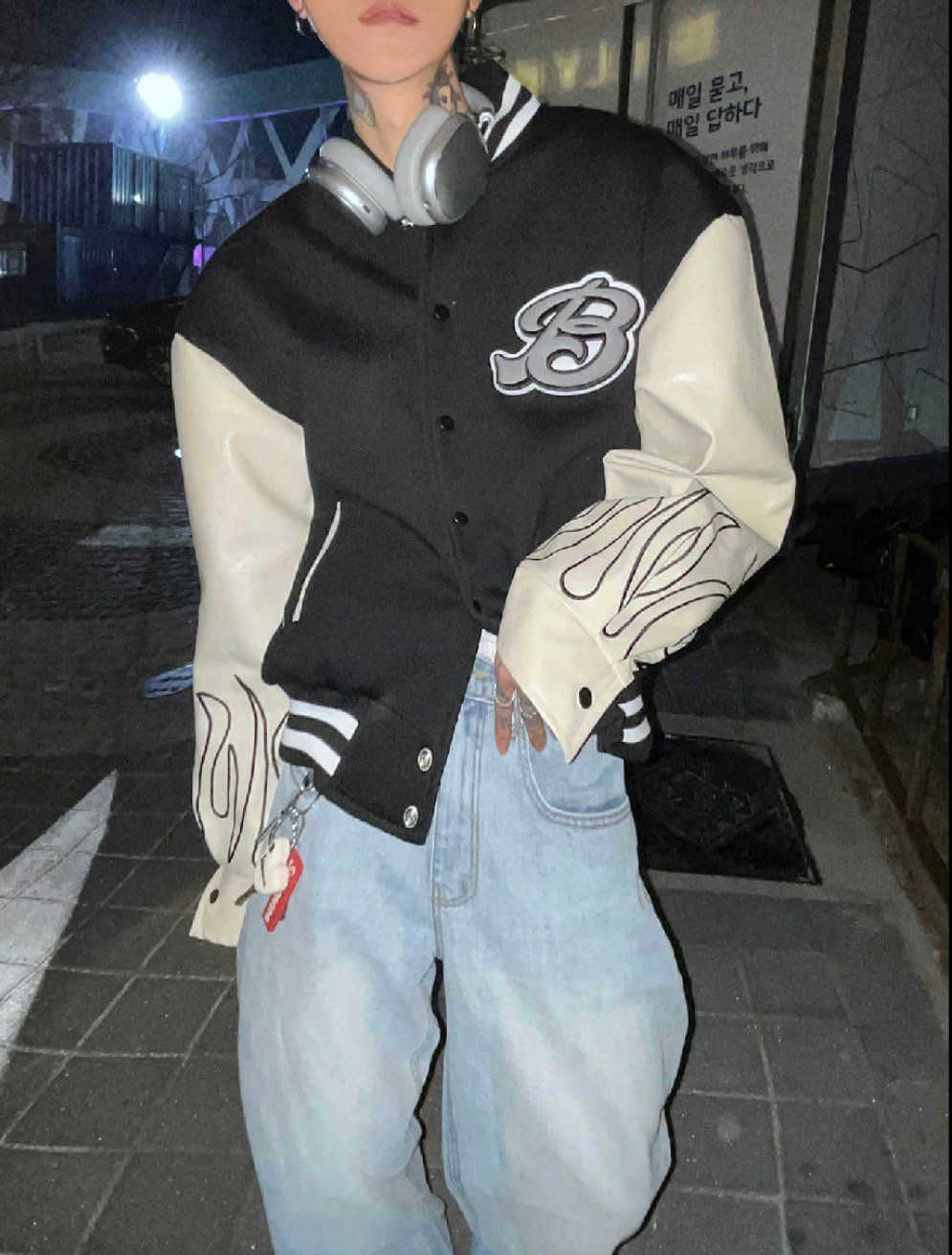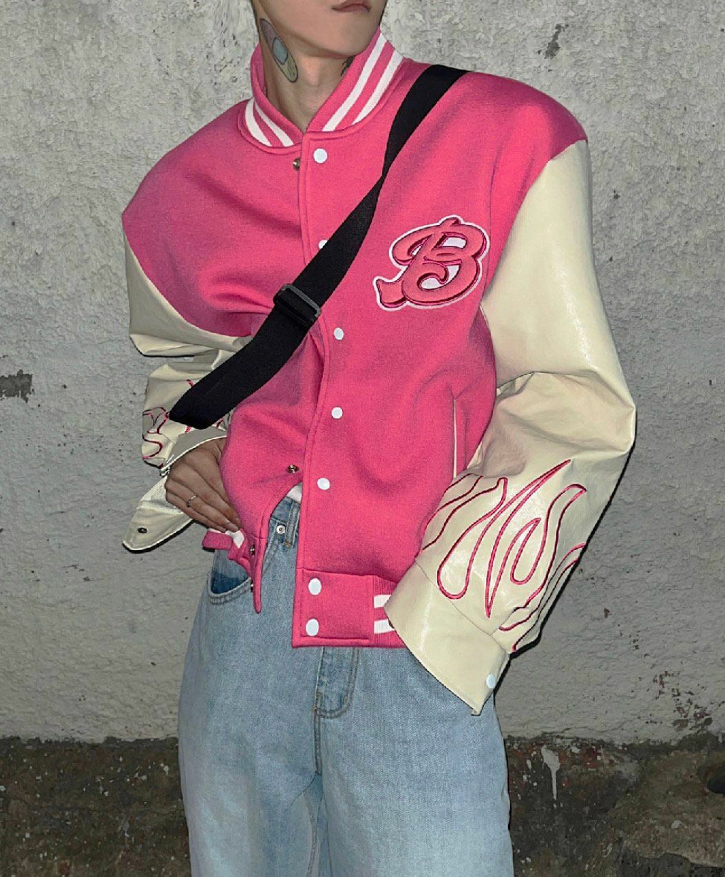 拼皮袖棉質棒球褸 DEAN-013JK