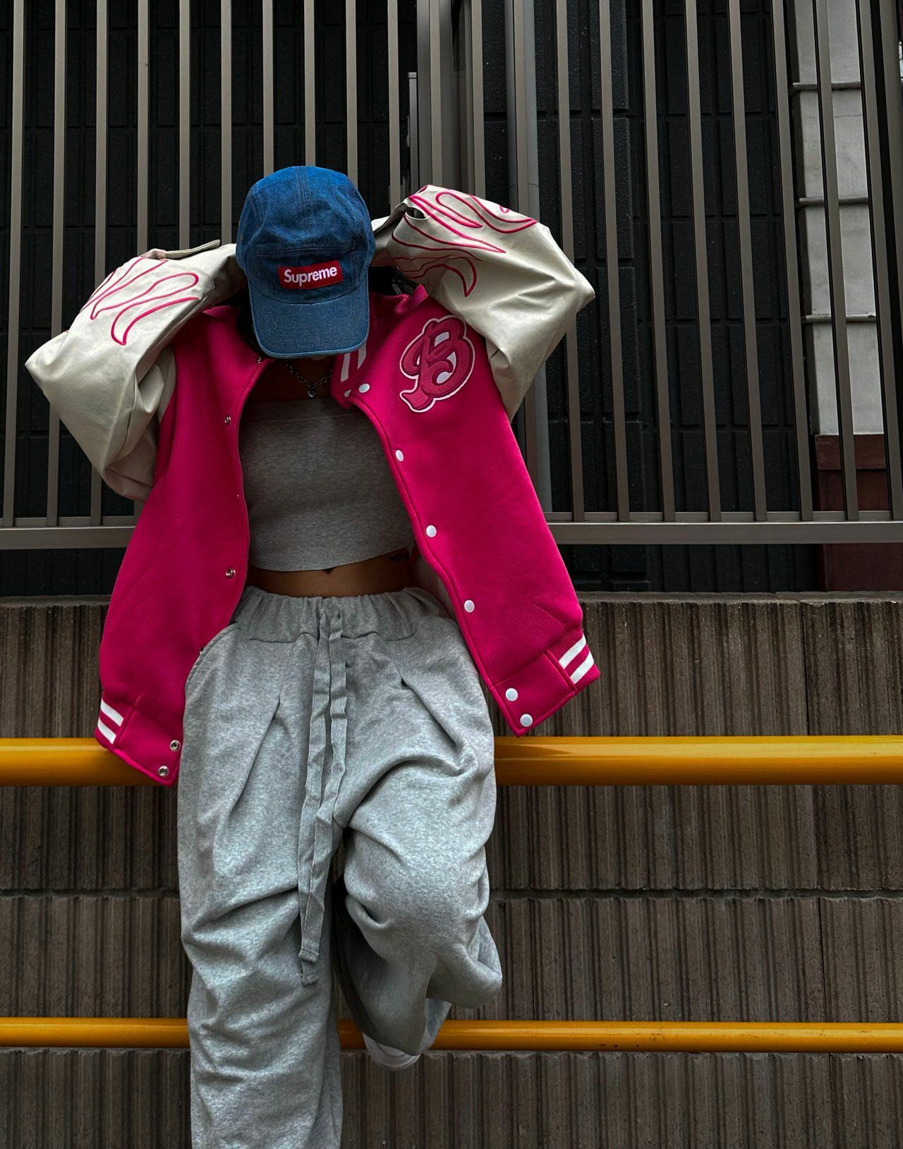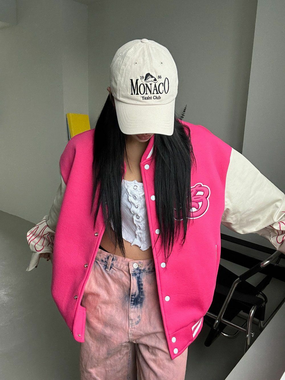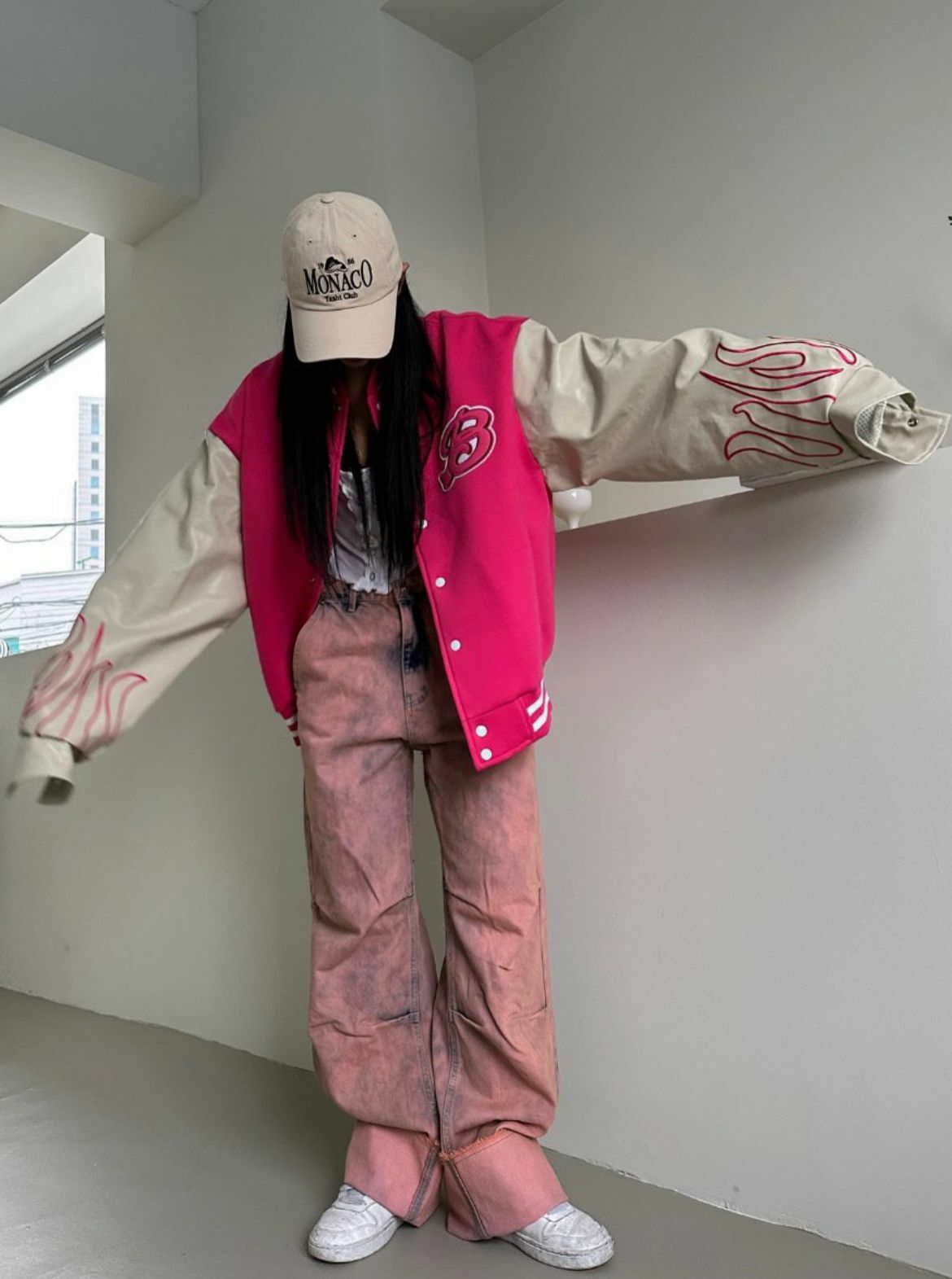 拼皮袖棉質棒球褸 DEAN-013JK