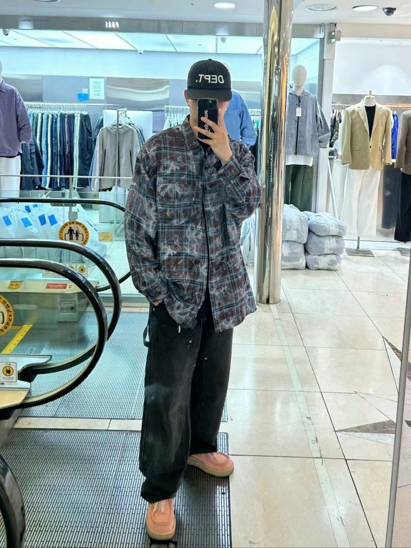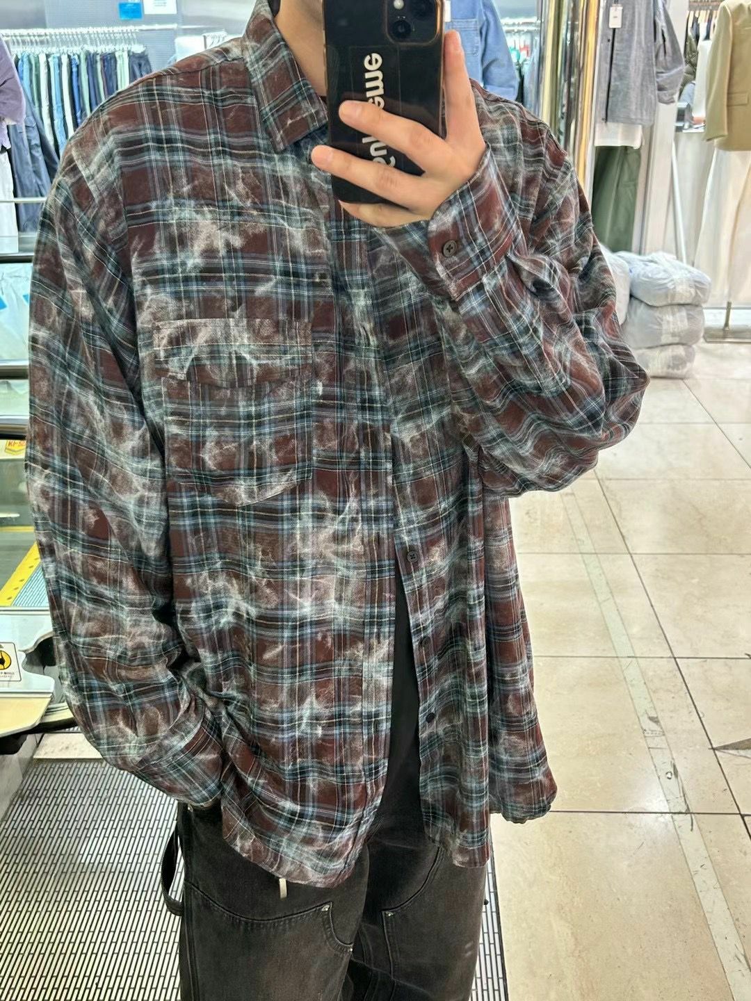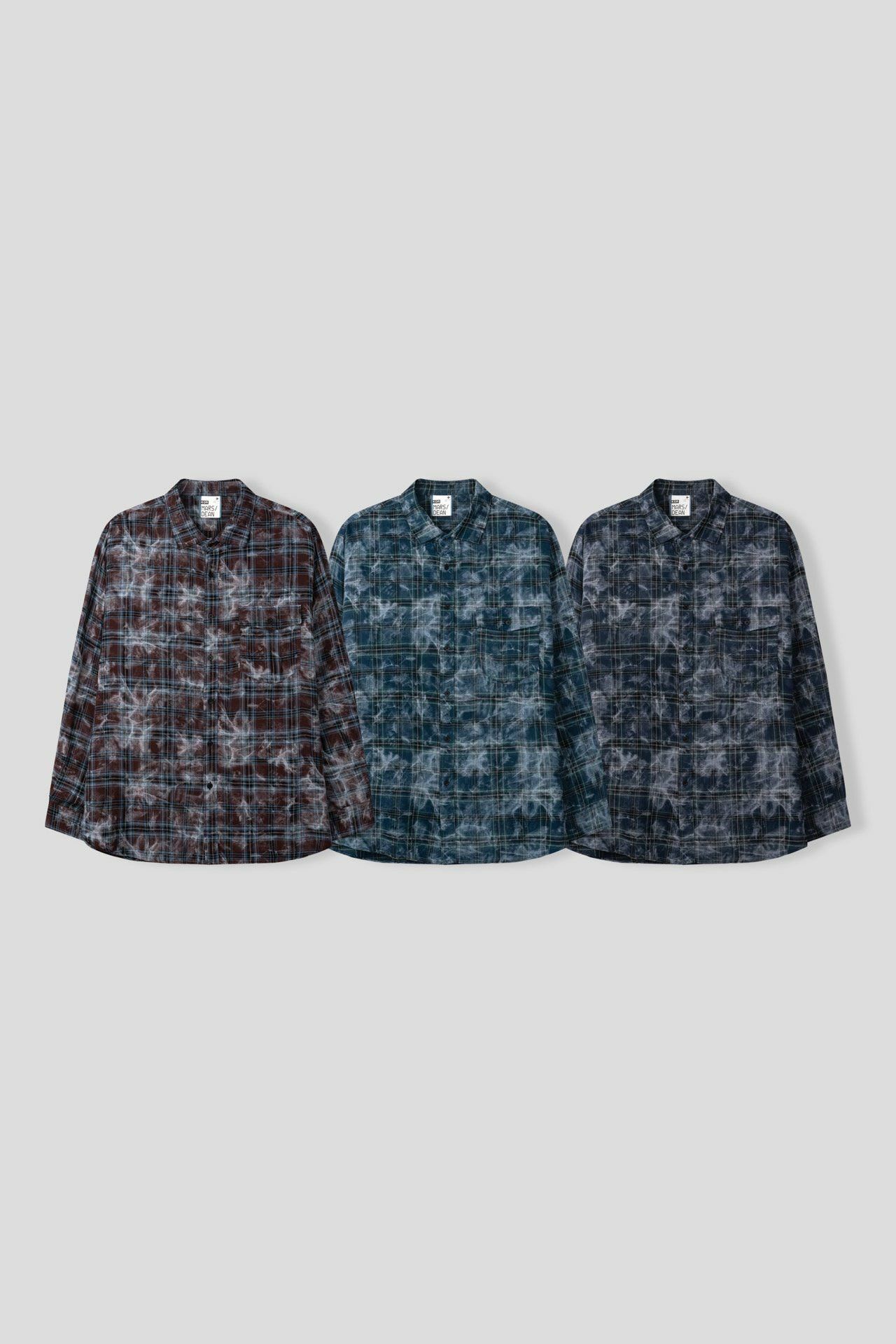 紮染格仔長袖恤衫 DEAN-034S