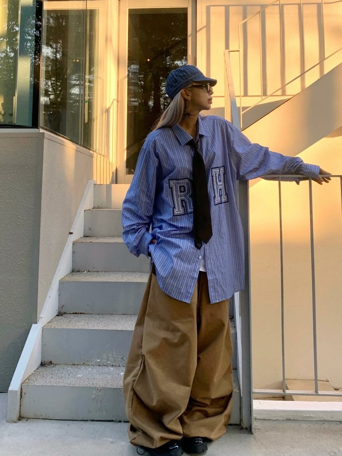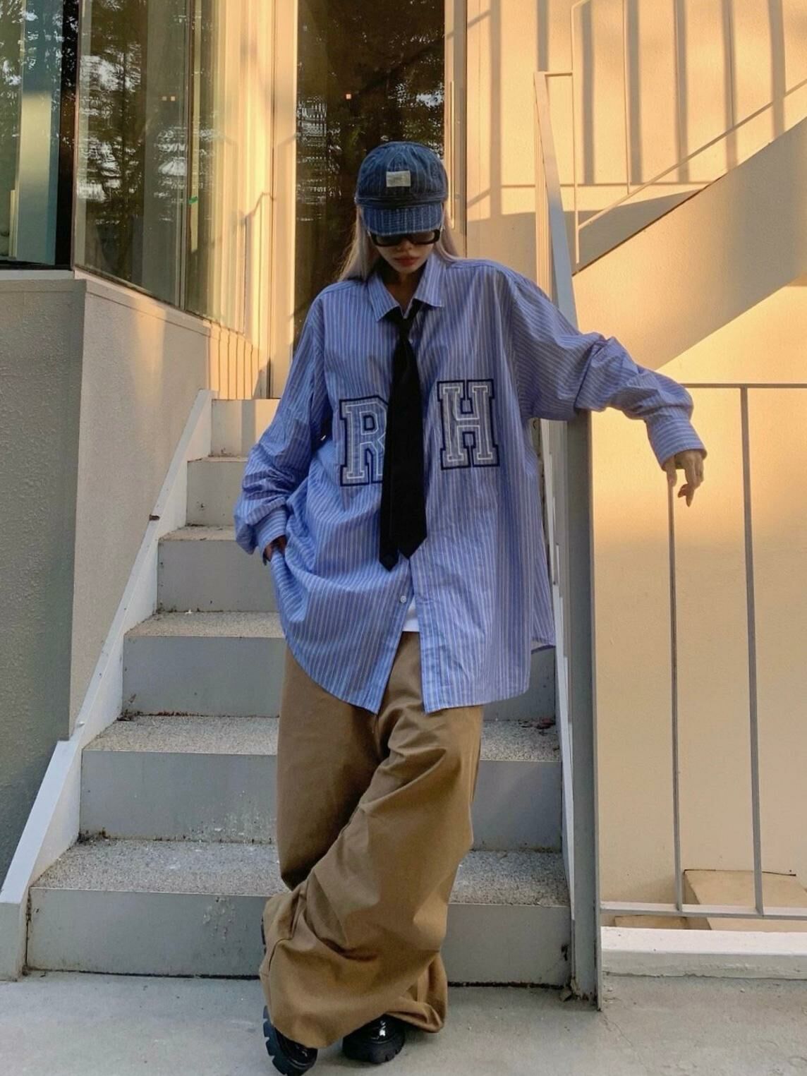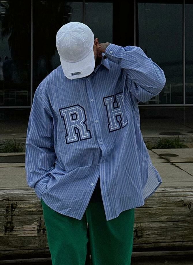 英文字直紋長袖恤衫 DEAN-041S