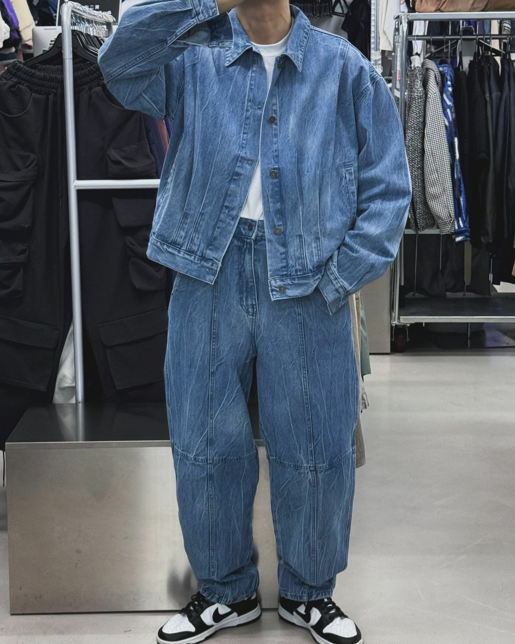 淨色裂紋鬆身牛仔褲 DOT-0033P