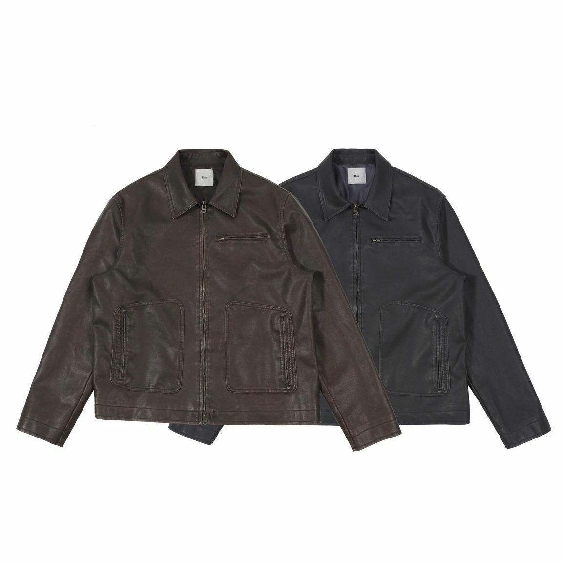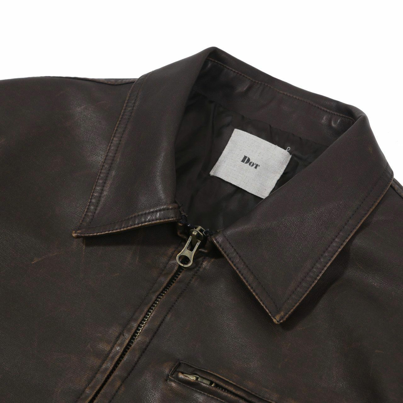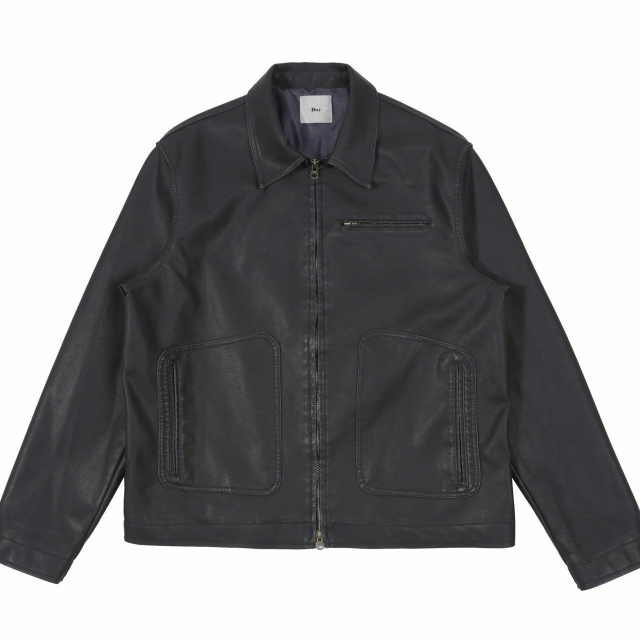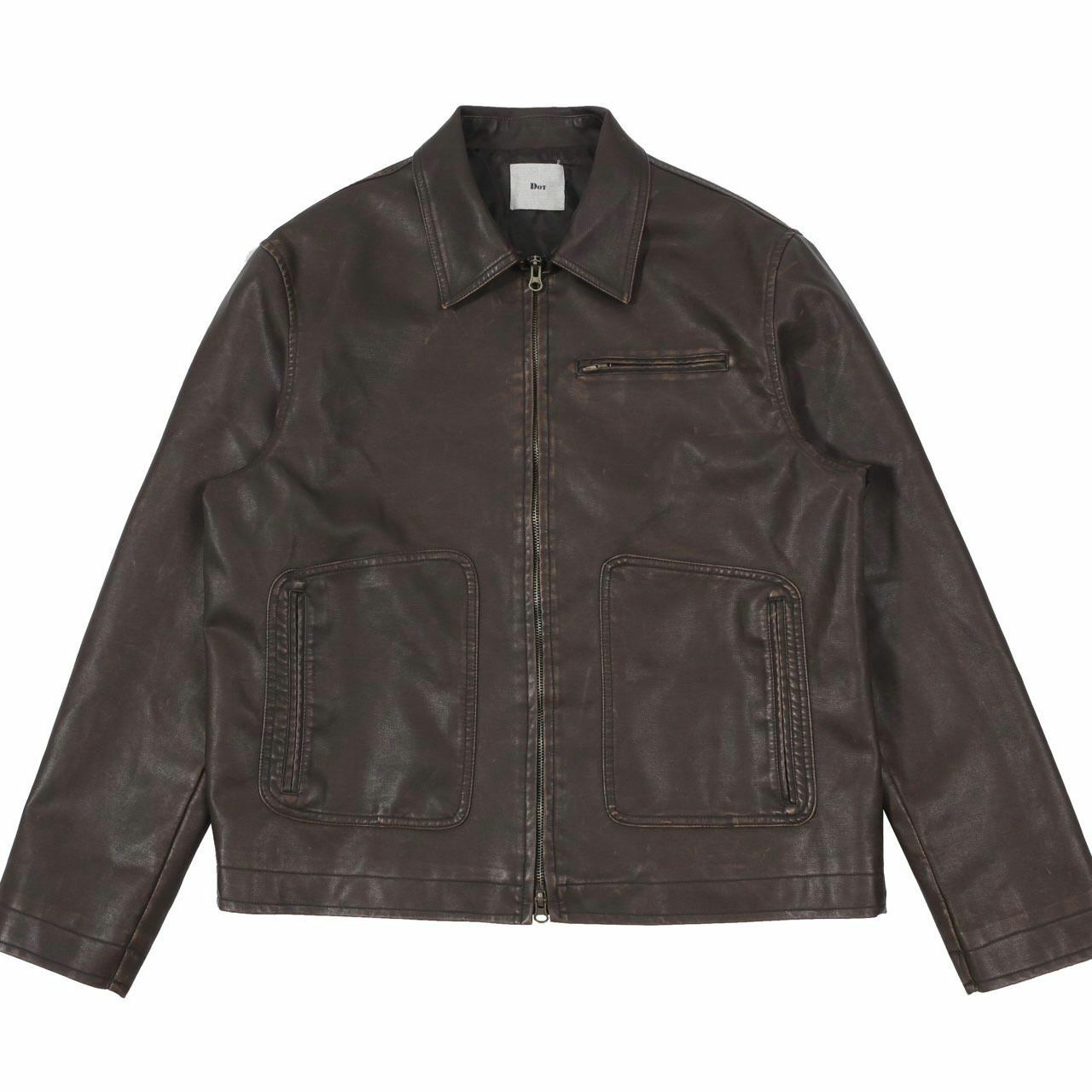 恤衫領拉鍊合成皮褸 DOT-0046JK