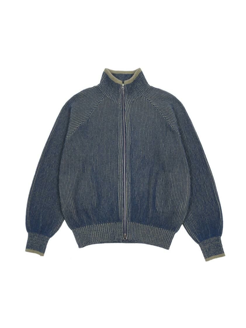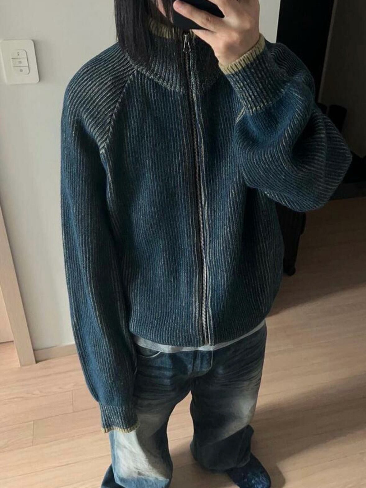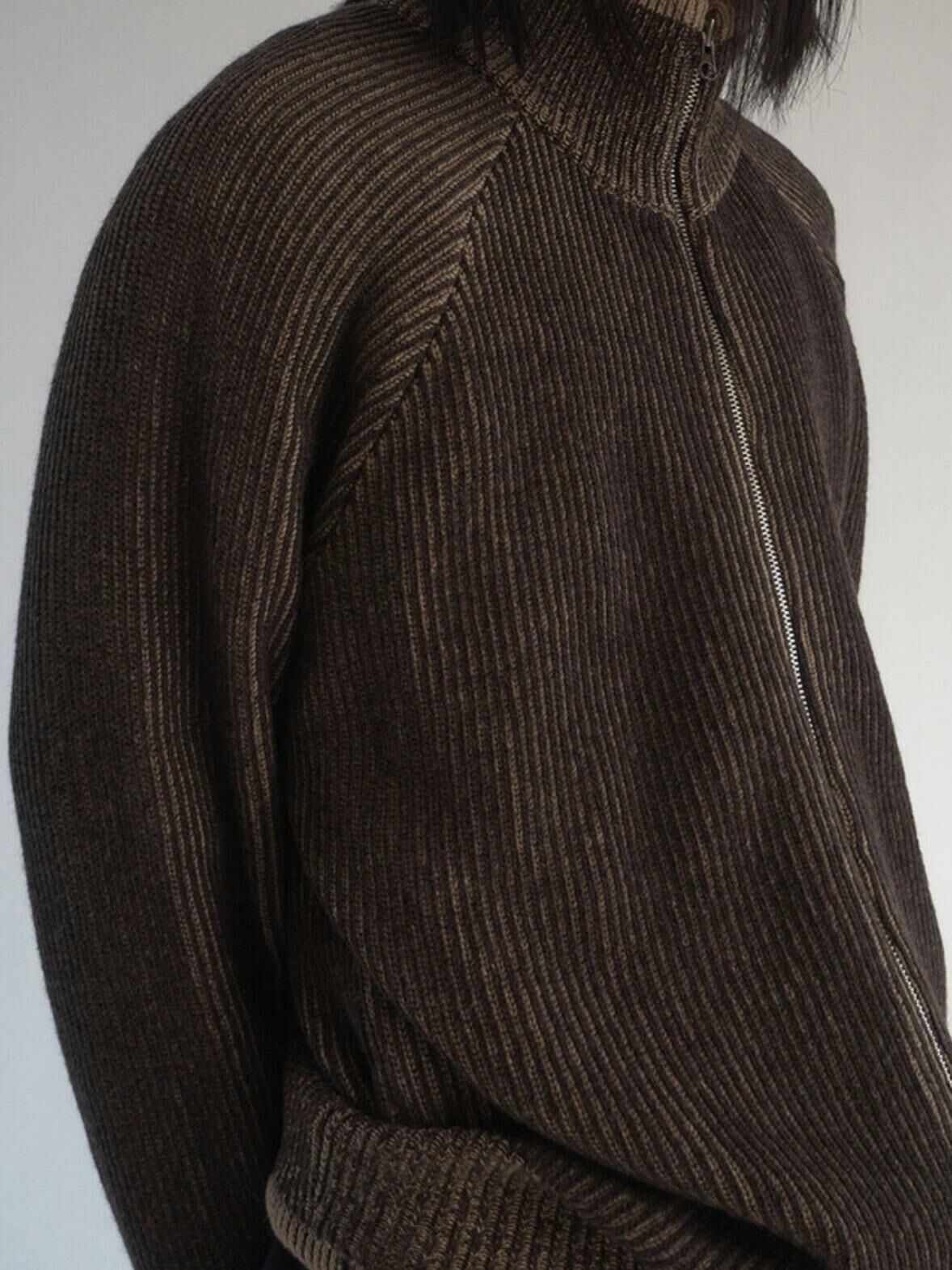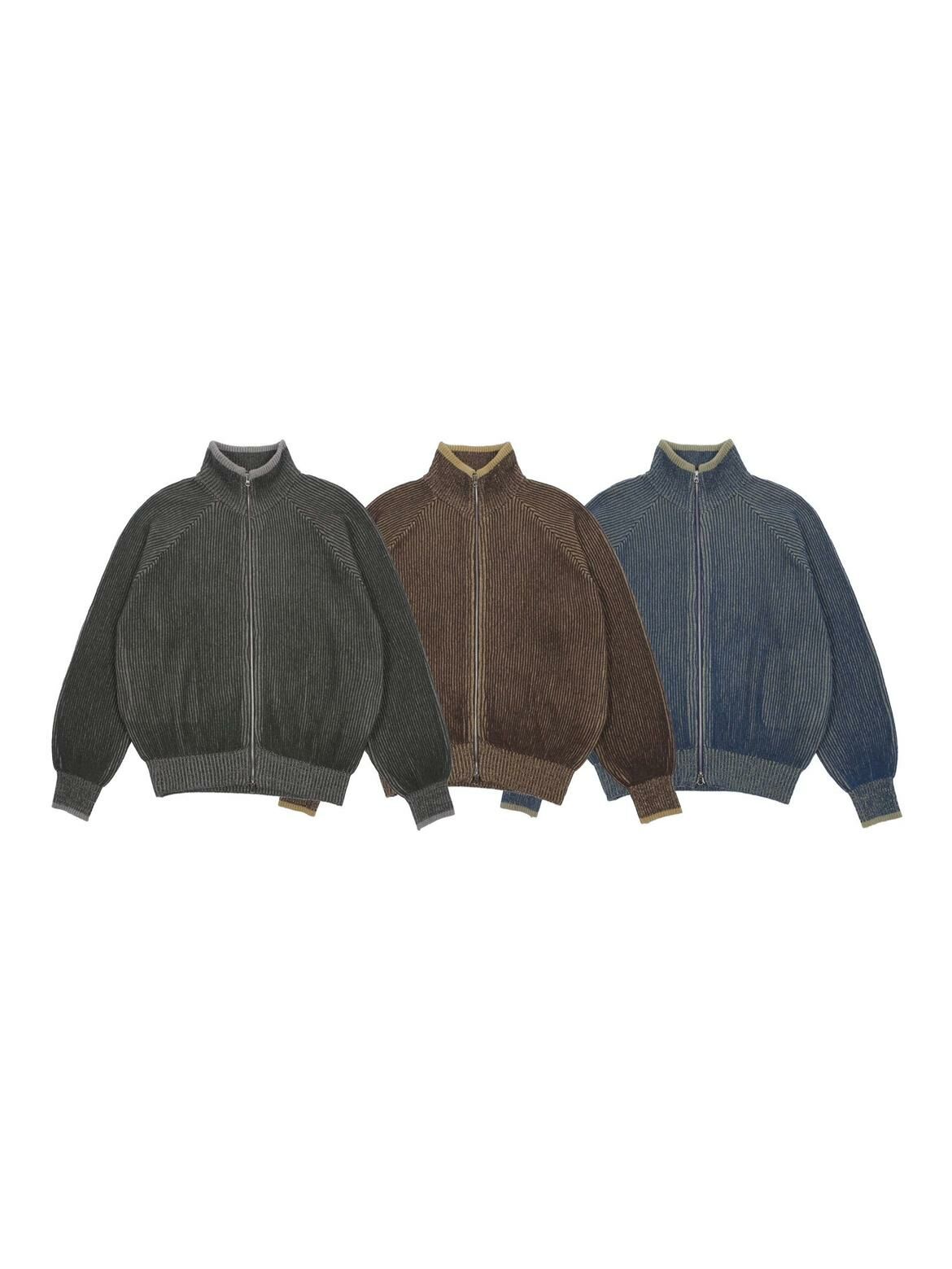 企領暗直紋拉鍊針織外套 DOT-072JK