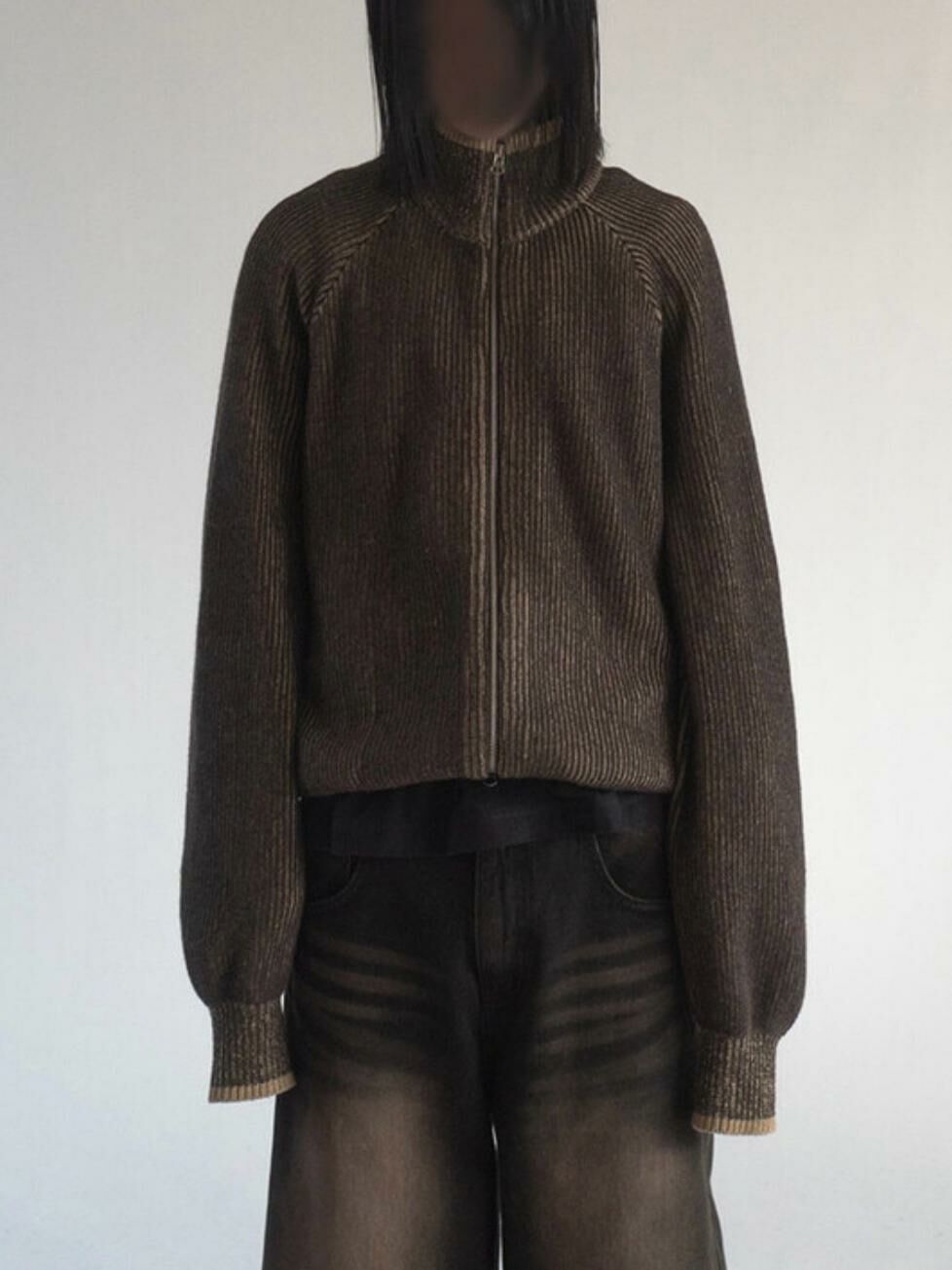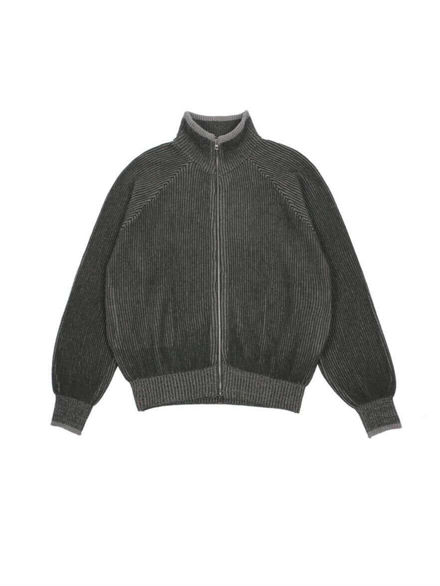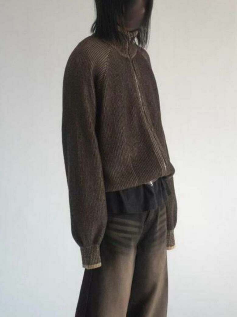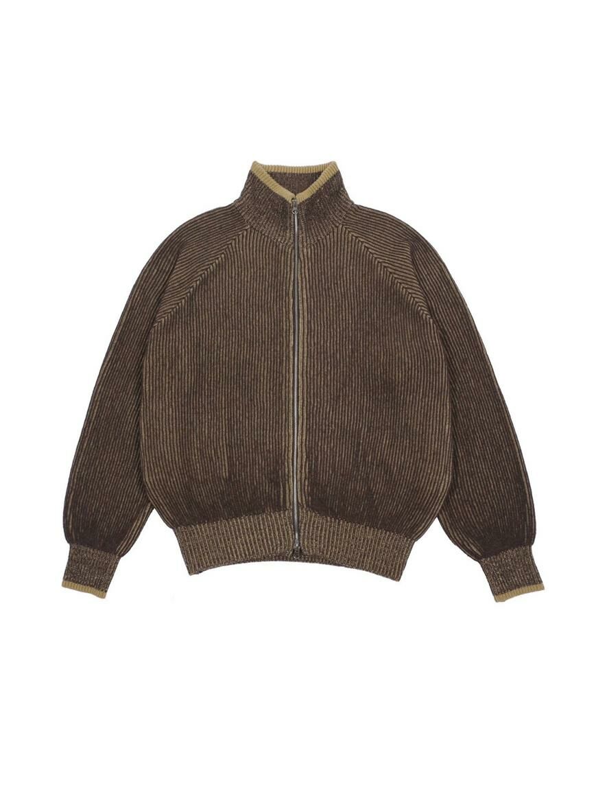 企領暗直紋拉鍊針織外套 DOT-072JK