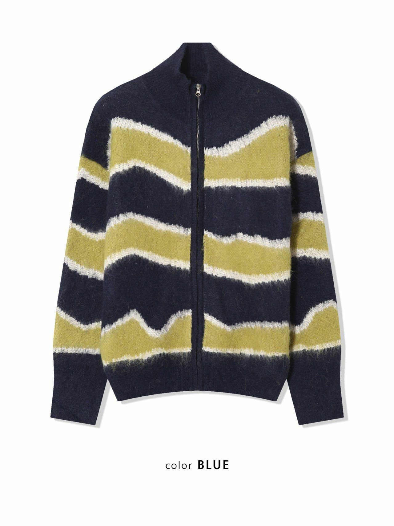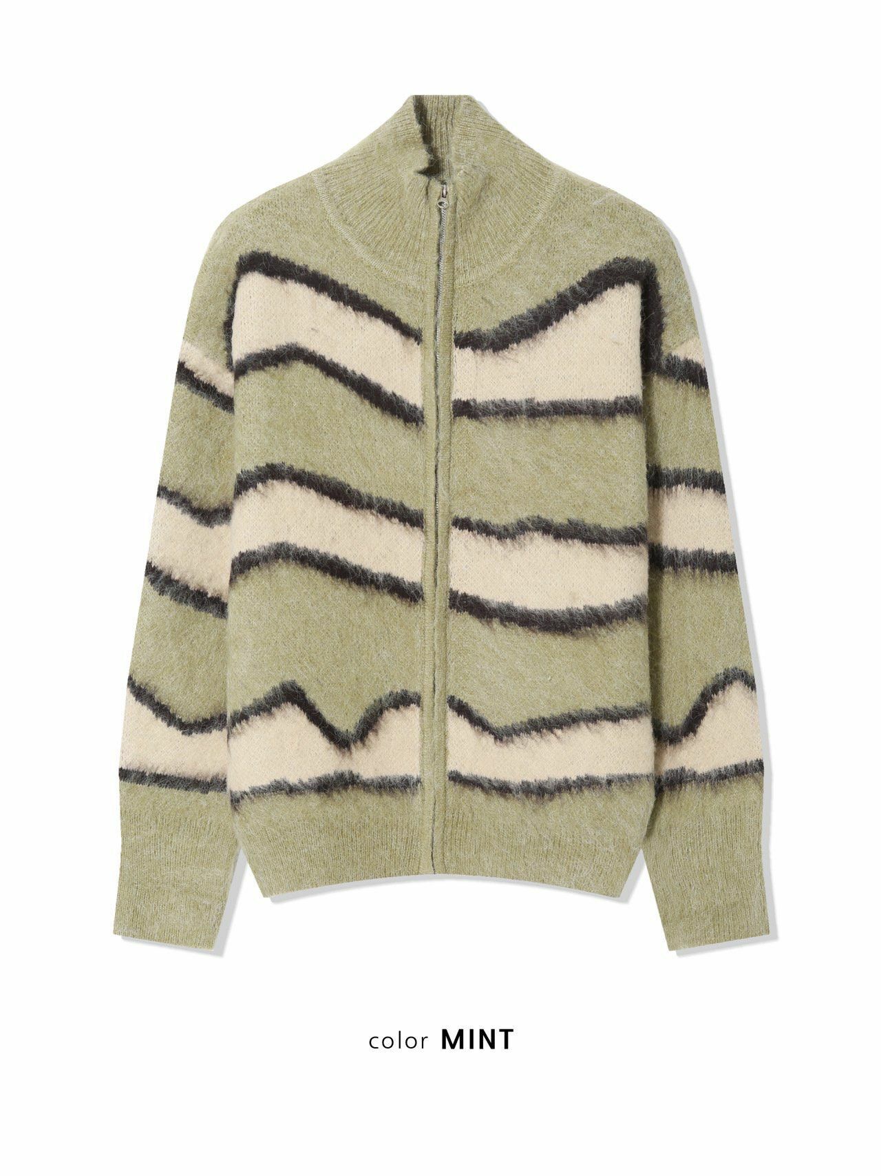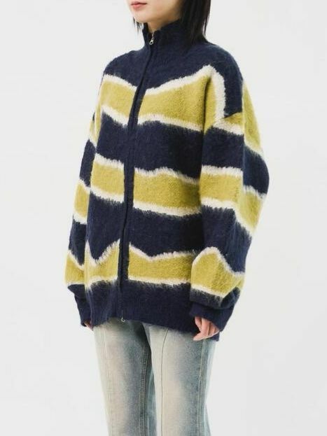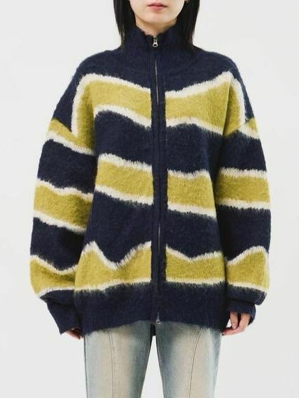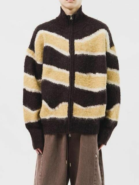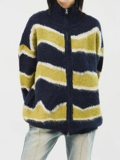 橫間企領拉鍊針織外套 DOT-075JK