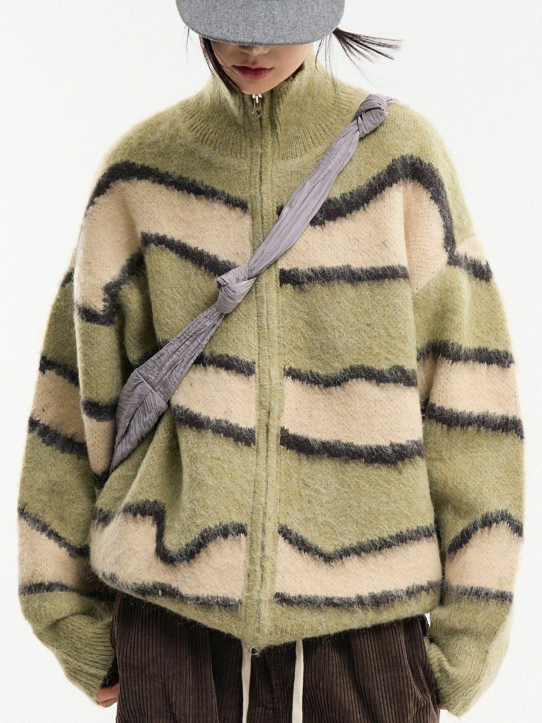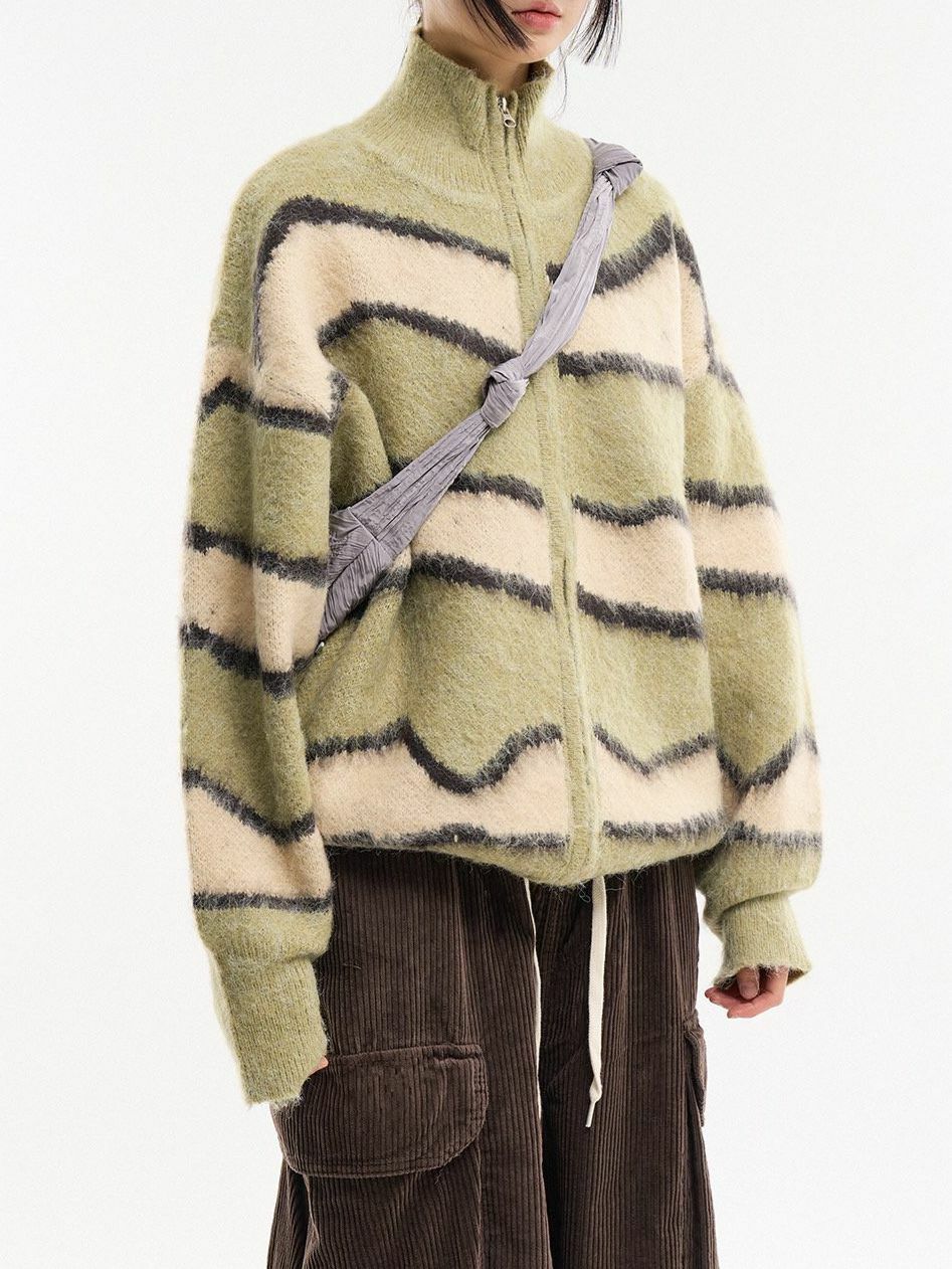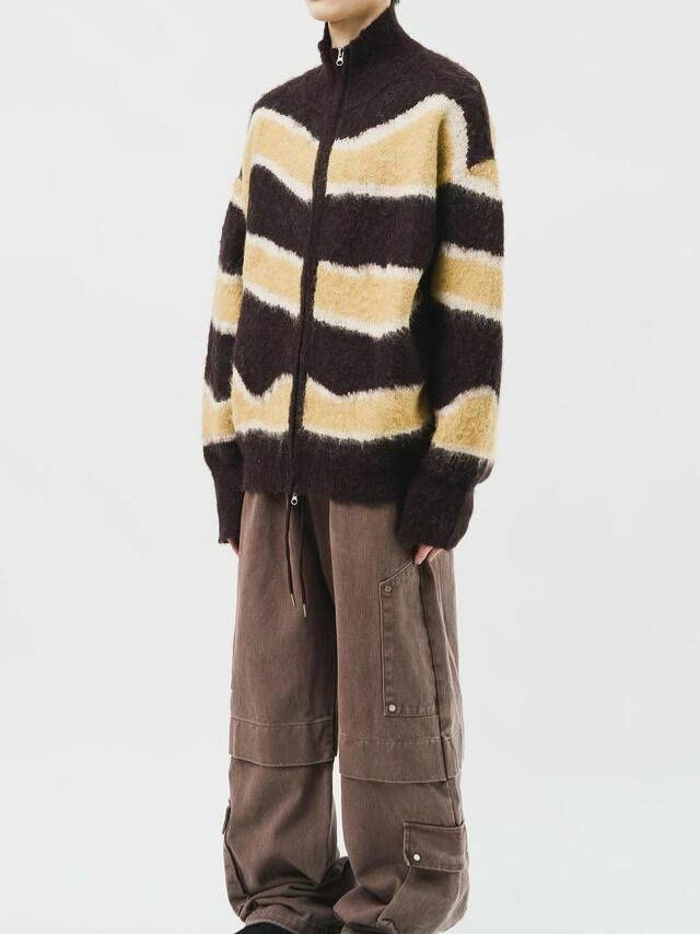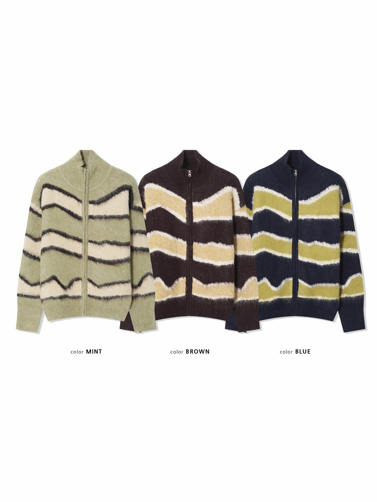 橫間企領拉鍊針織外套 DOT-075JK