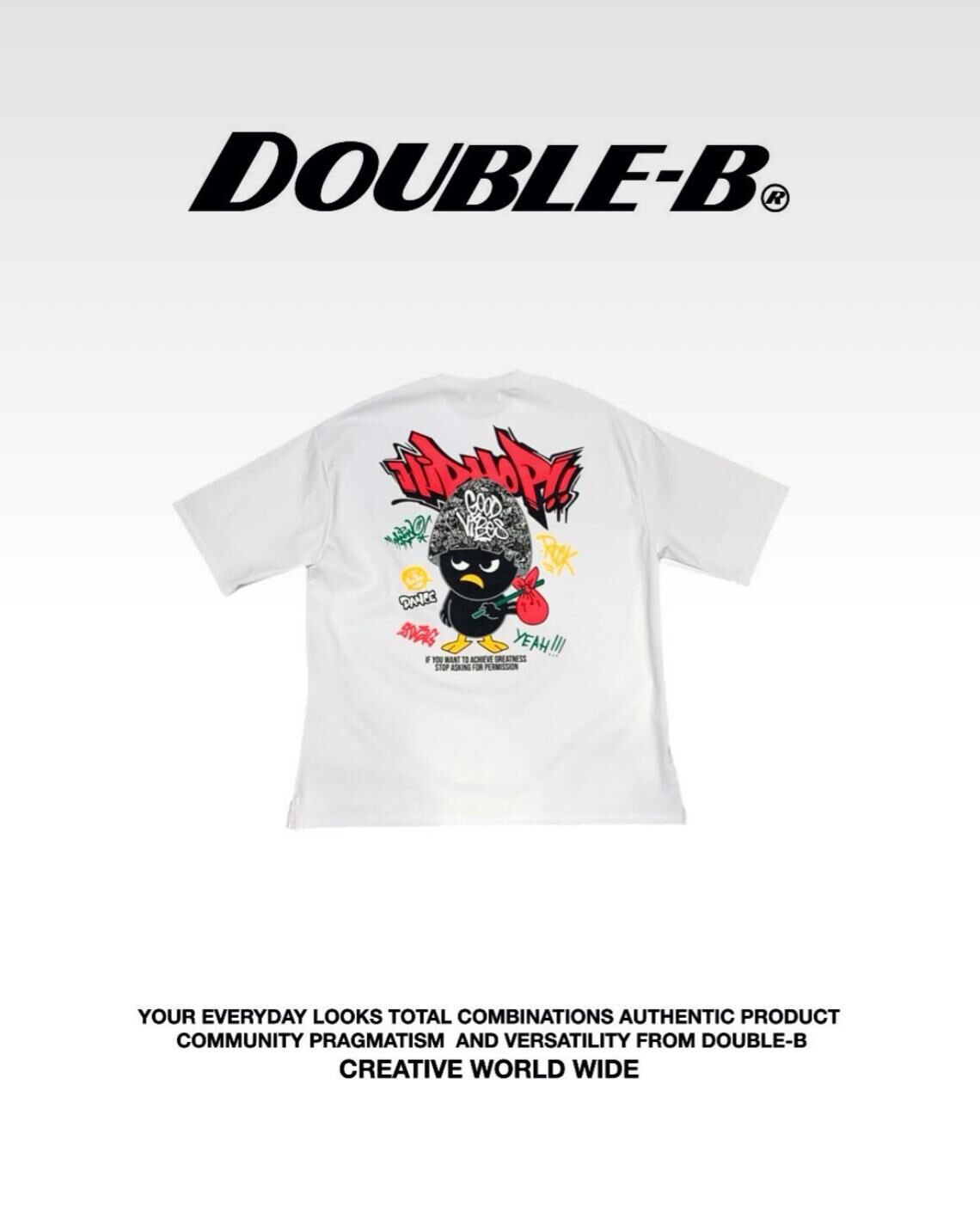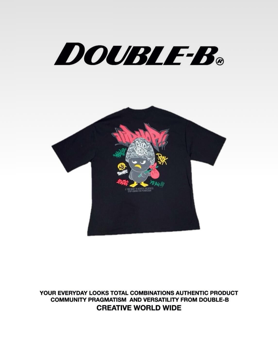 雀仔圖案英文字短袖Tee Double-B-016T