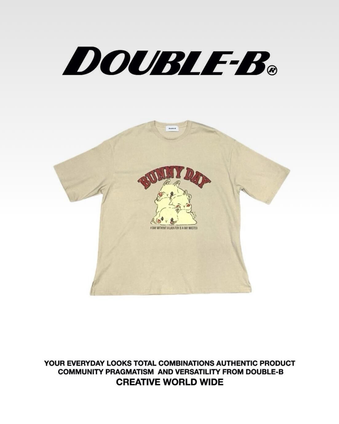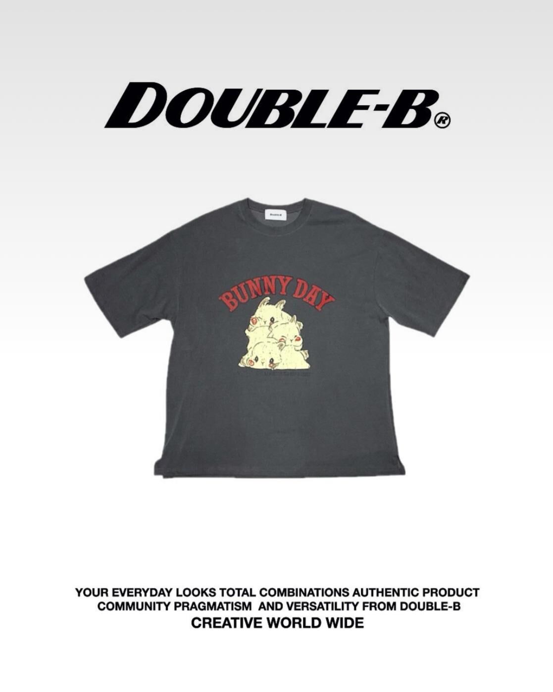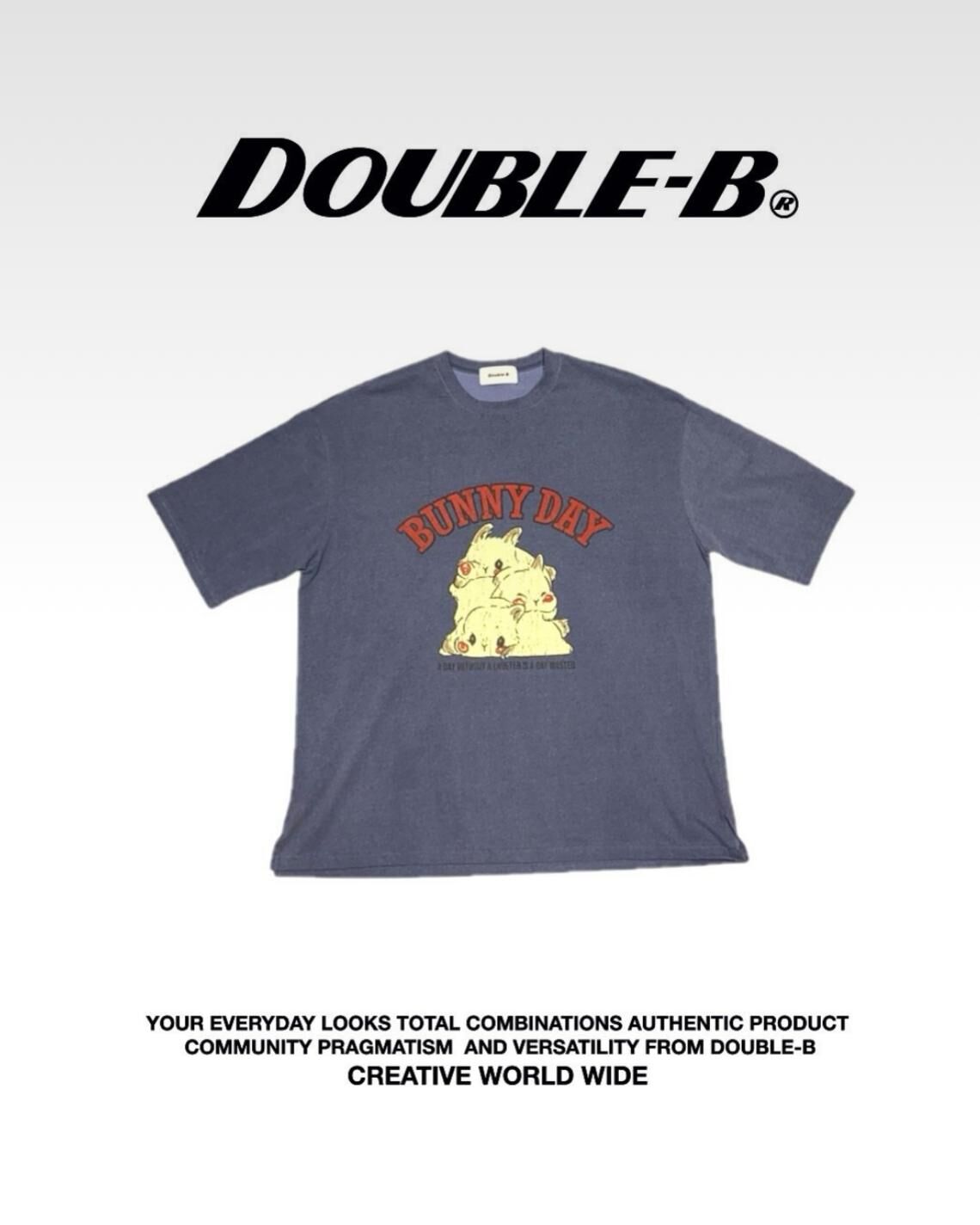兔仔圖案英文字短袖Tee Double-B-017T