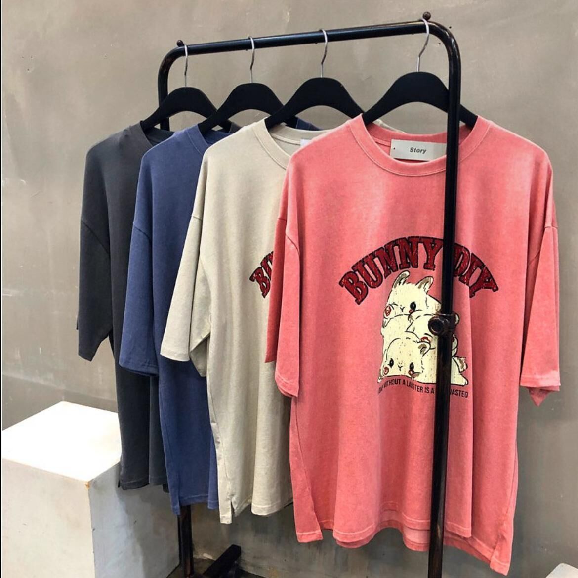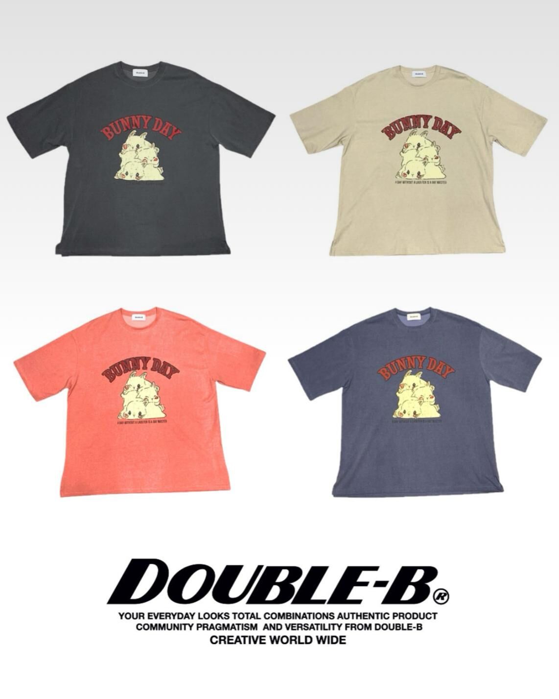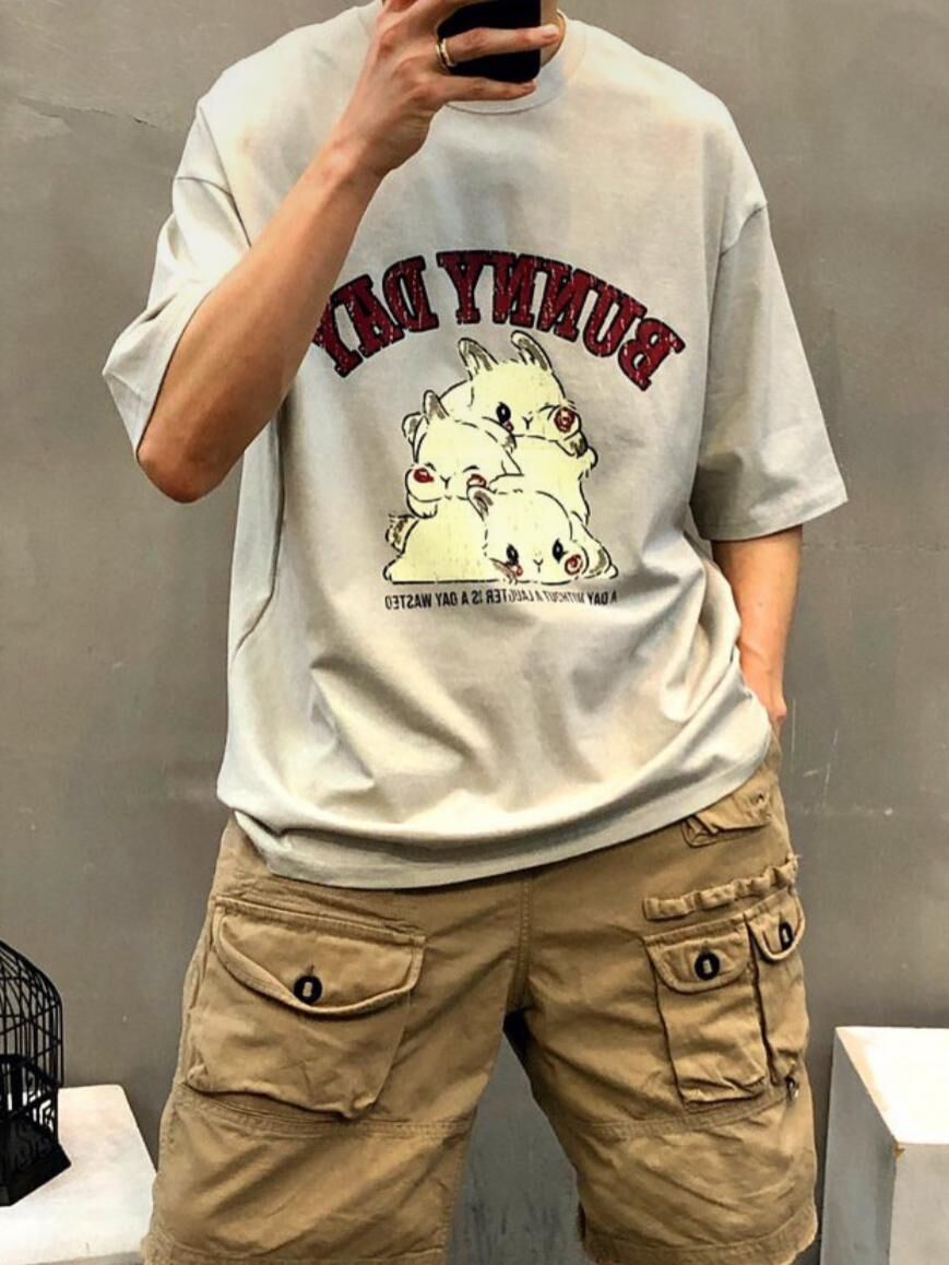兔仔圖案英文字短袖Tee Double-B-017T