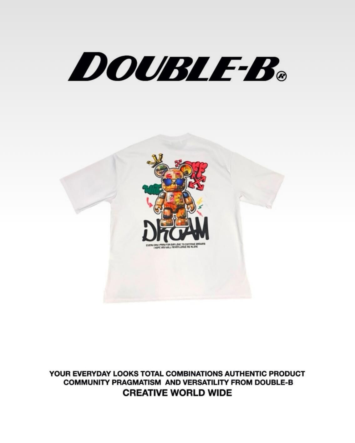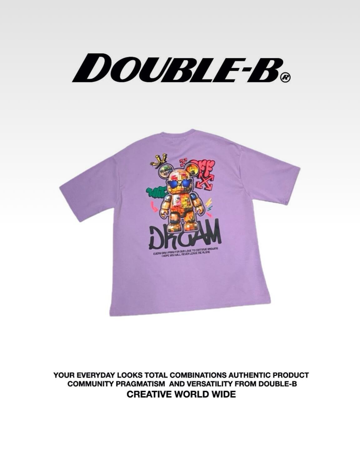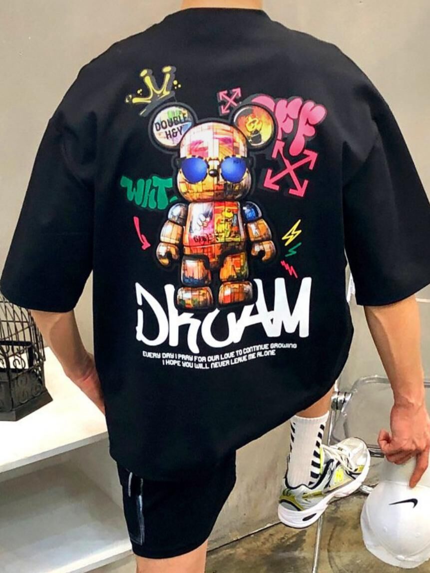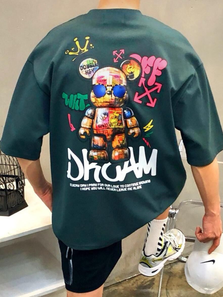 熊仔圖案英文字短袖Tee Double-B-018T