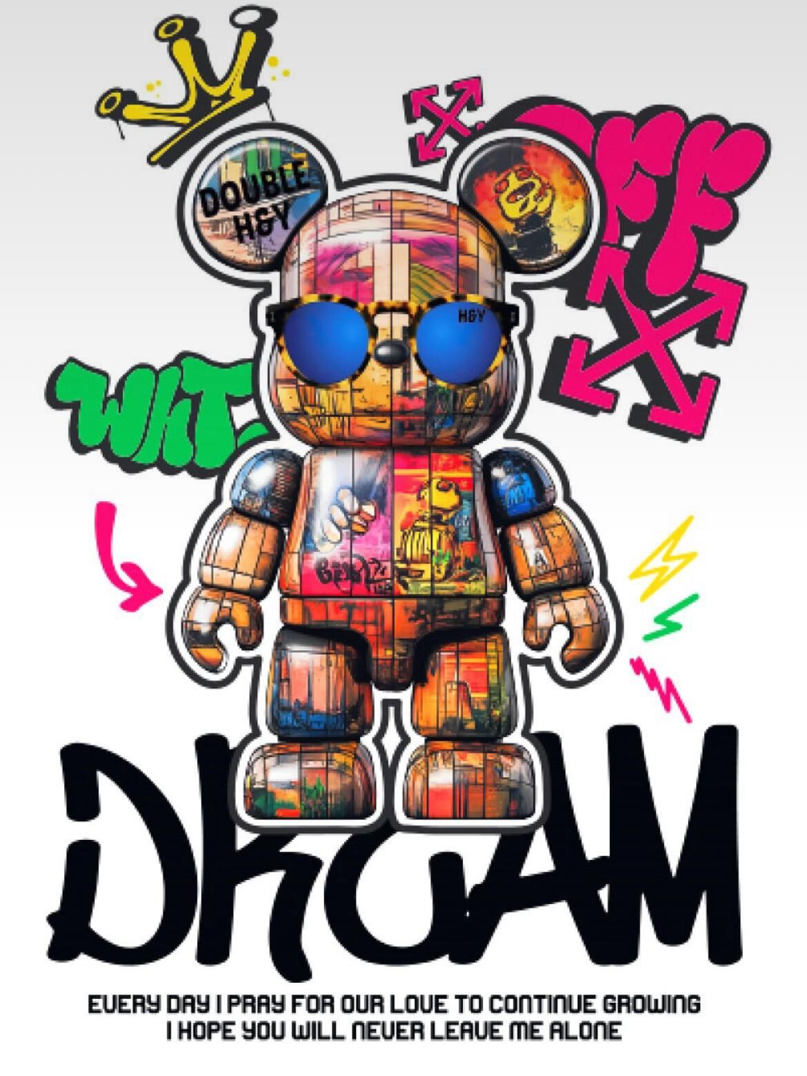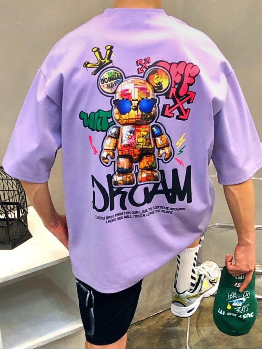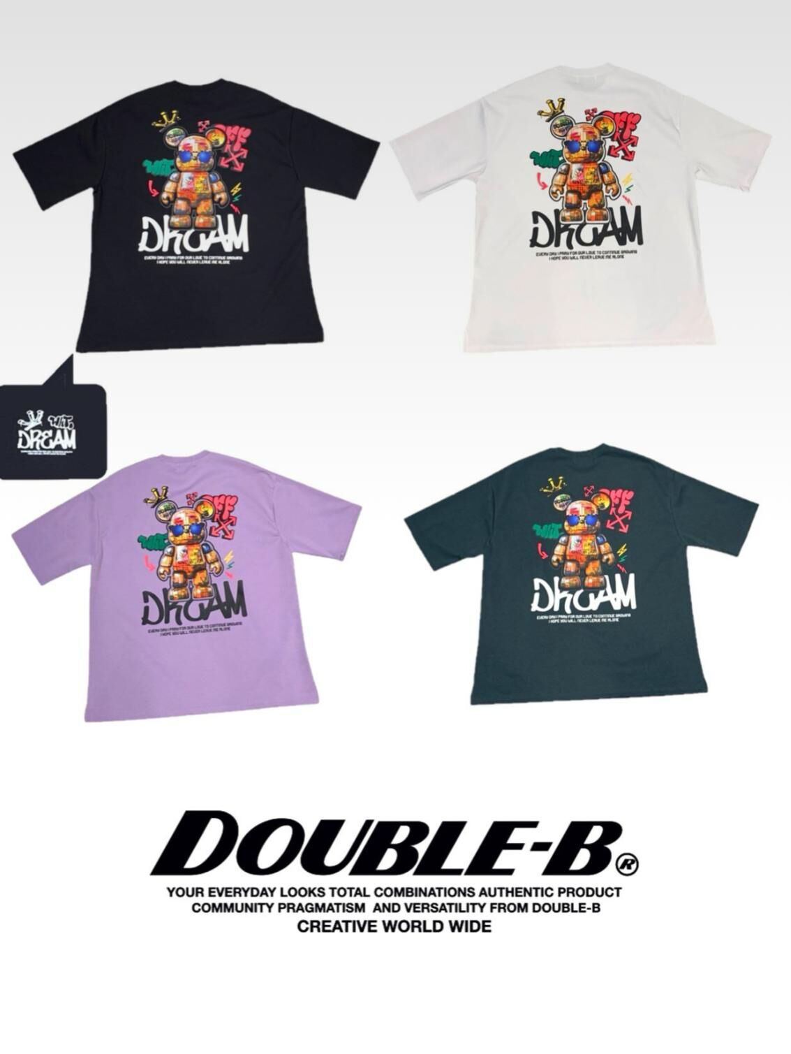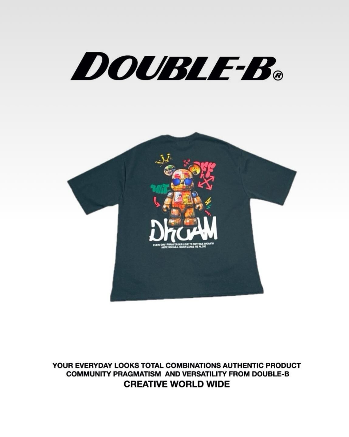 熊仔圖案英文字短袖Tee Double-B-018T