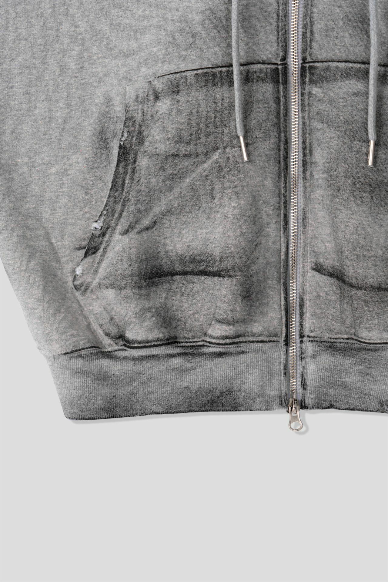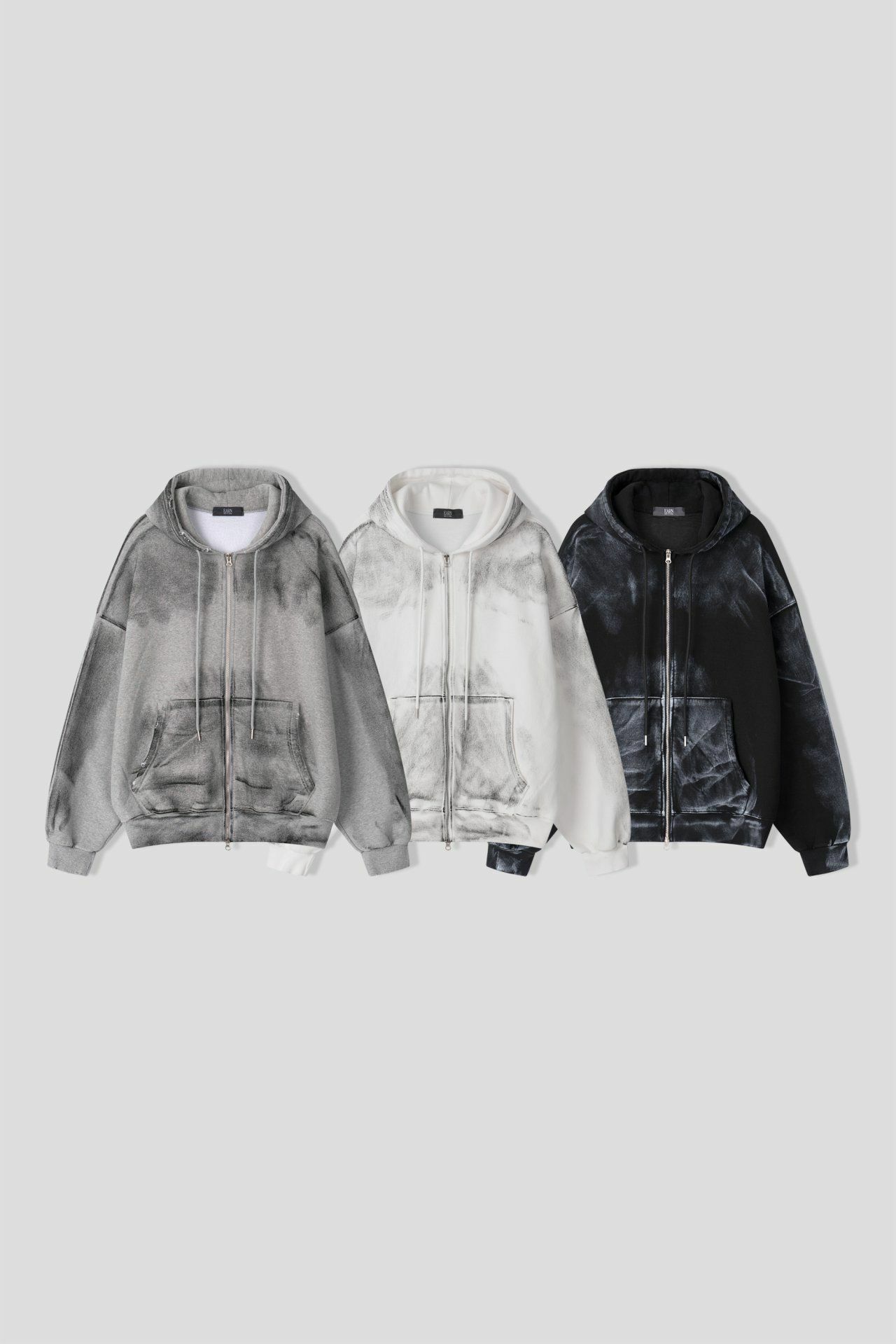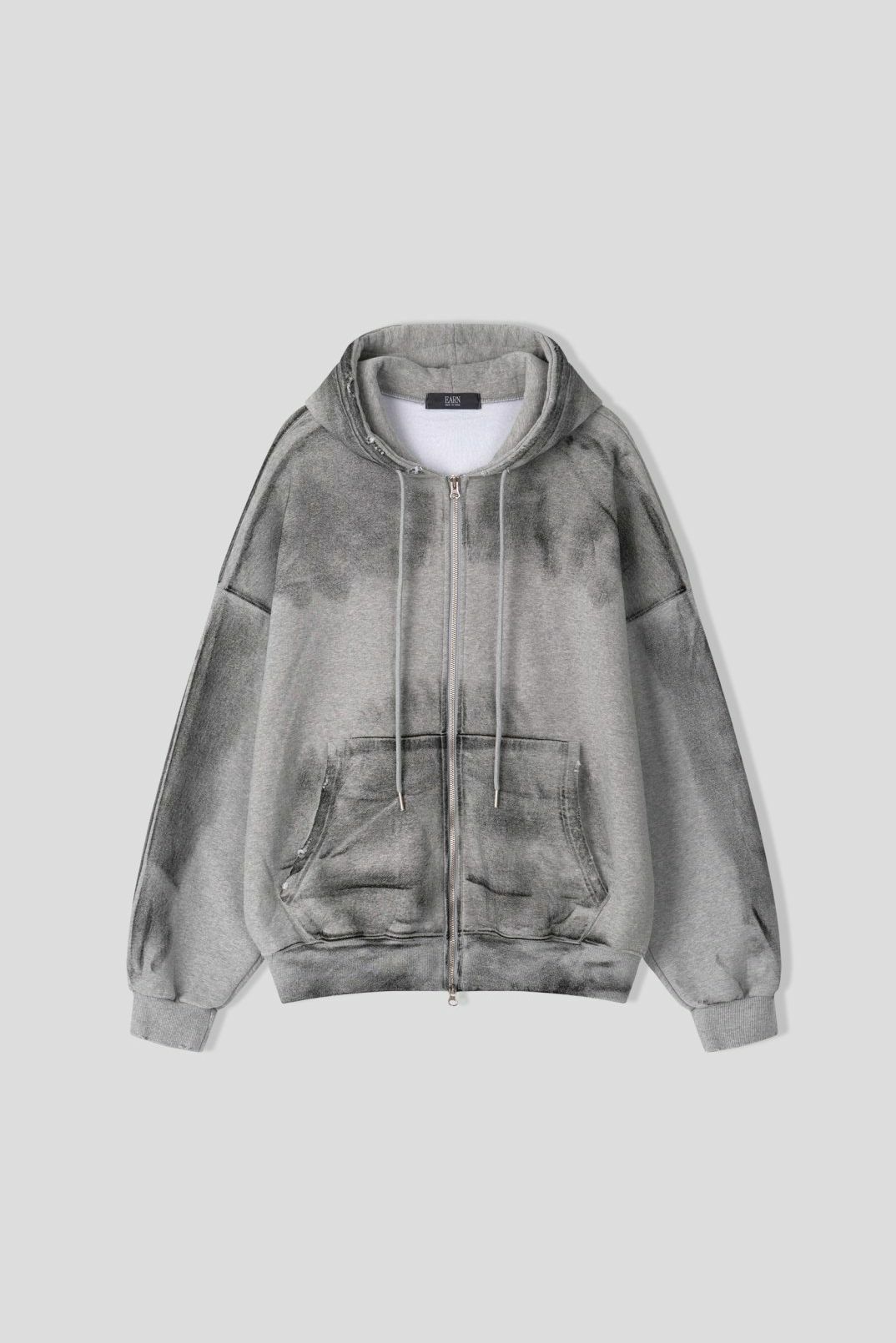 仿污破邊連帽拉鍊外套 EARN-038JK