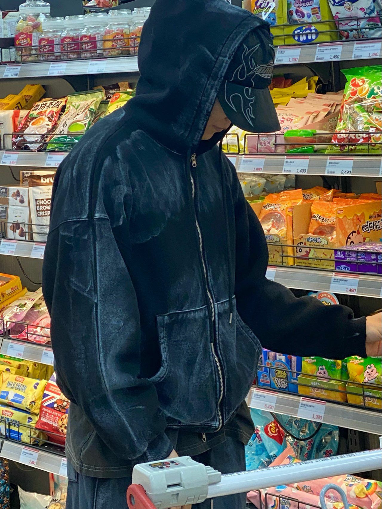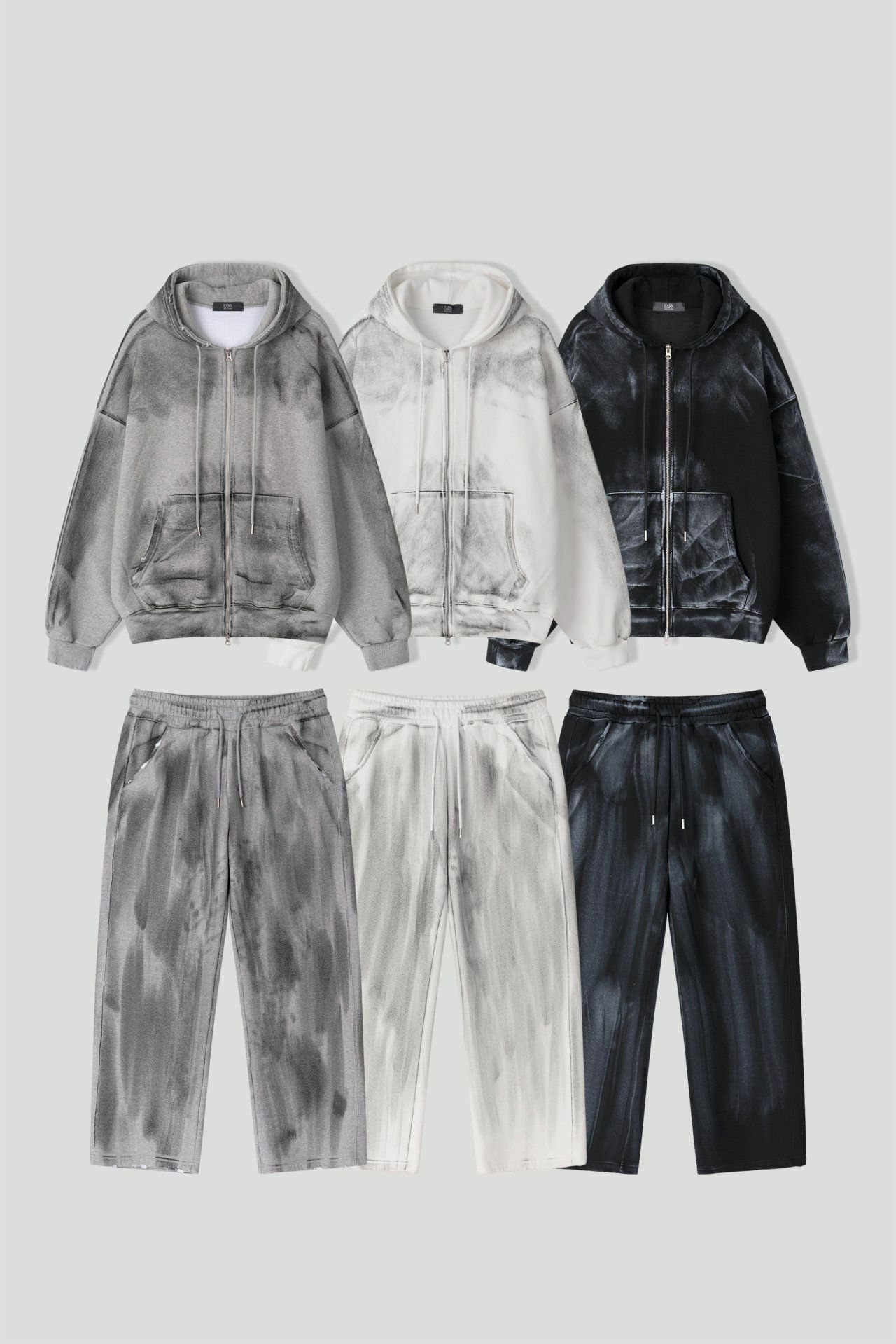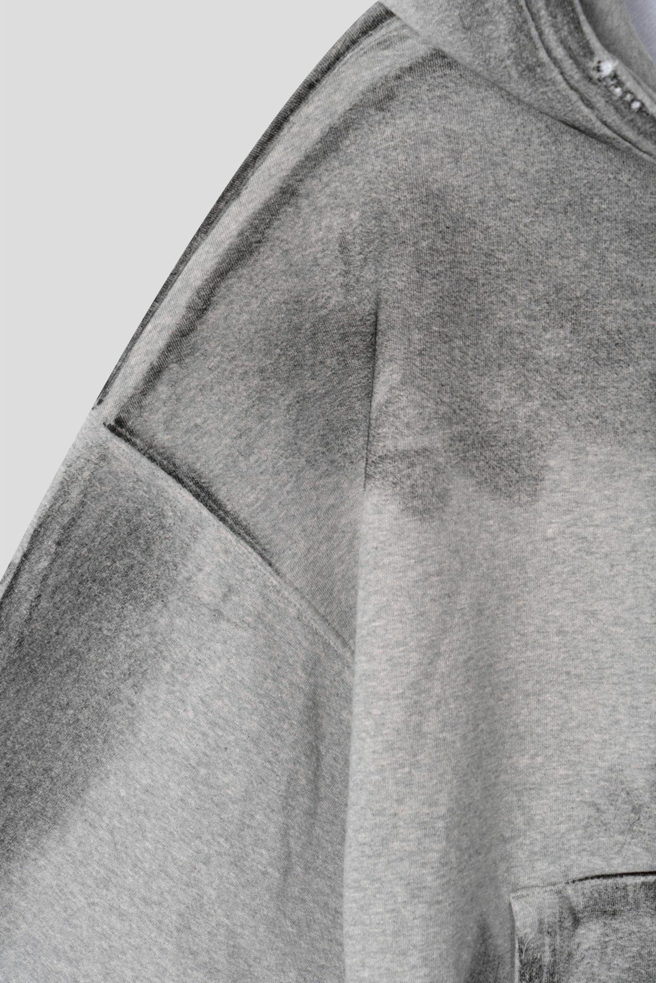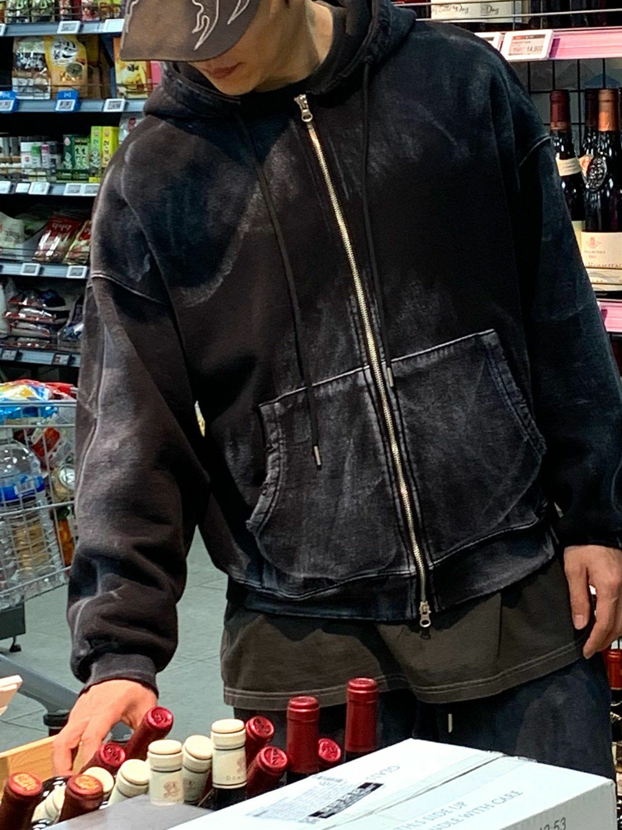 仿污破邊連帽拉鍊外套 EARN-038JK