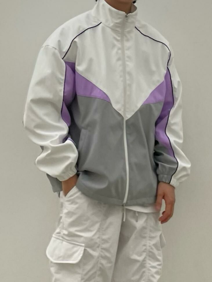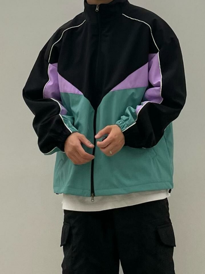 拼色企領拉鍊外套 EASY-056JK