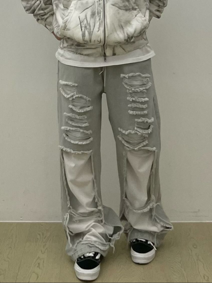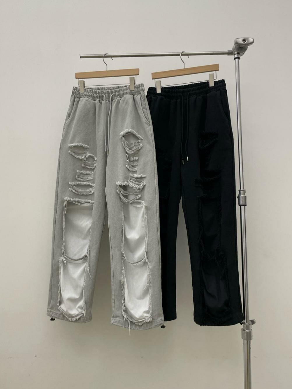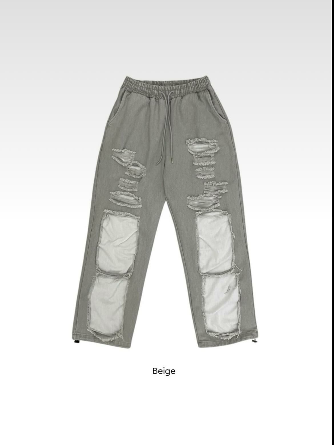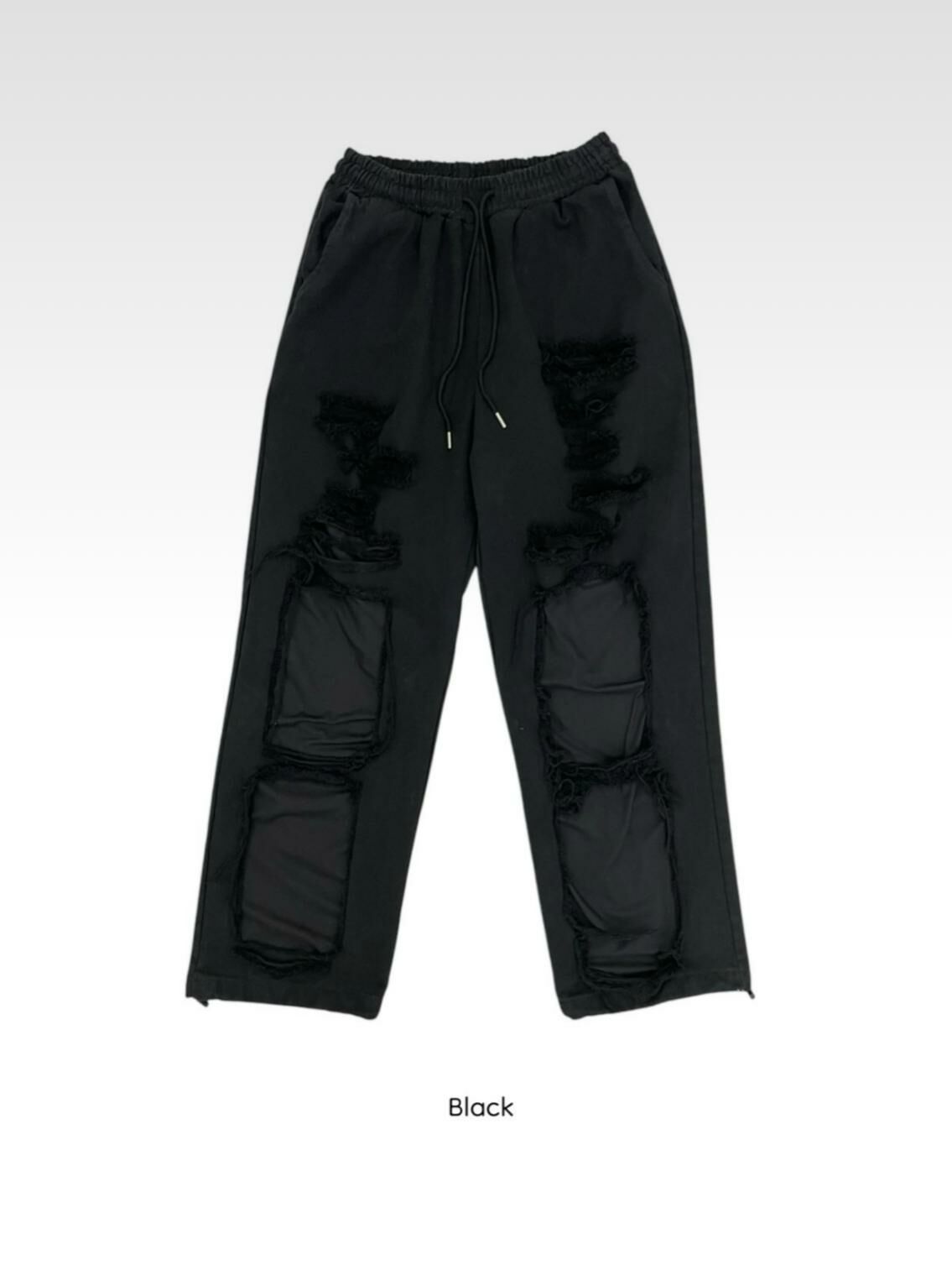 淨色破洞可束腳鬆身運動褲 EASY-062P