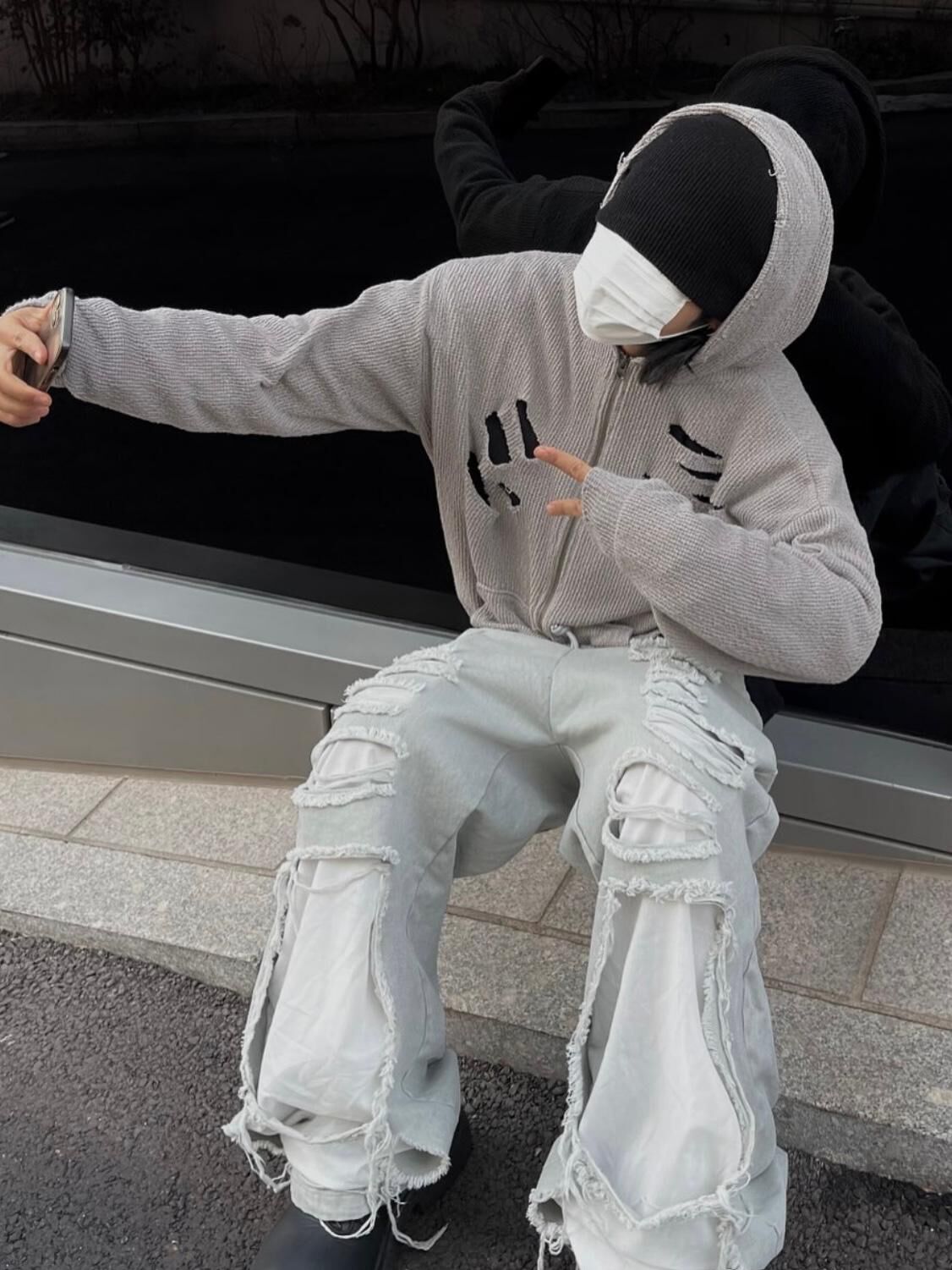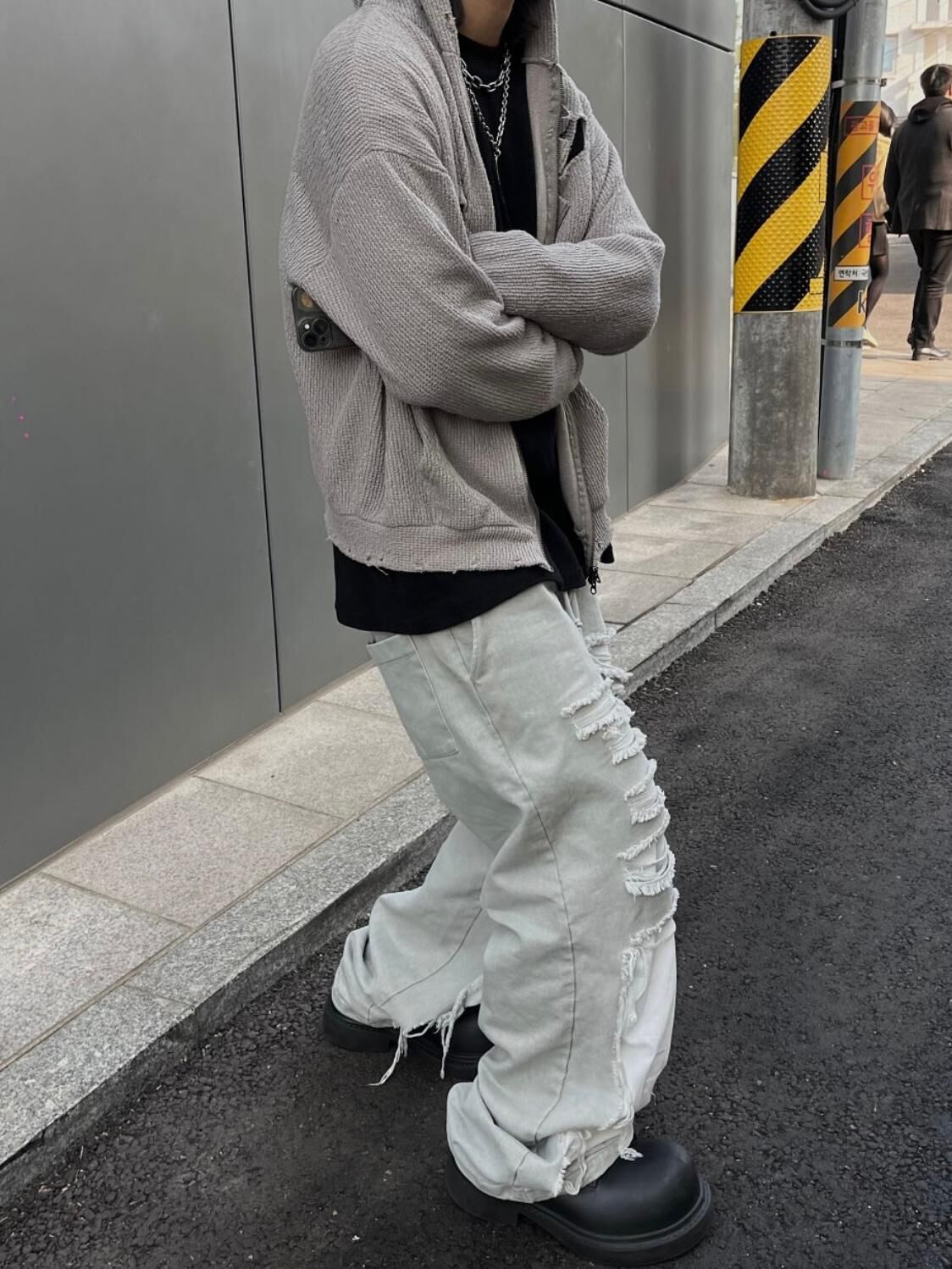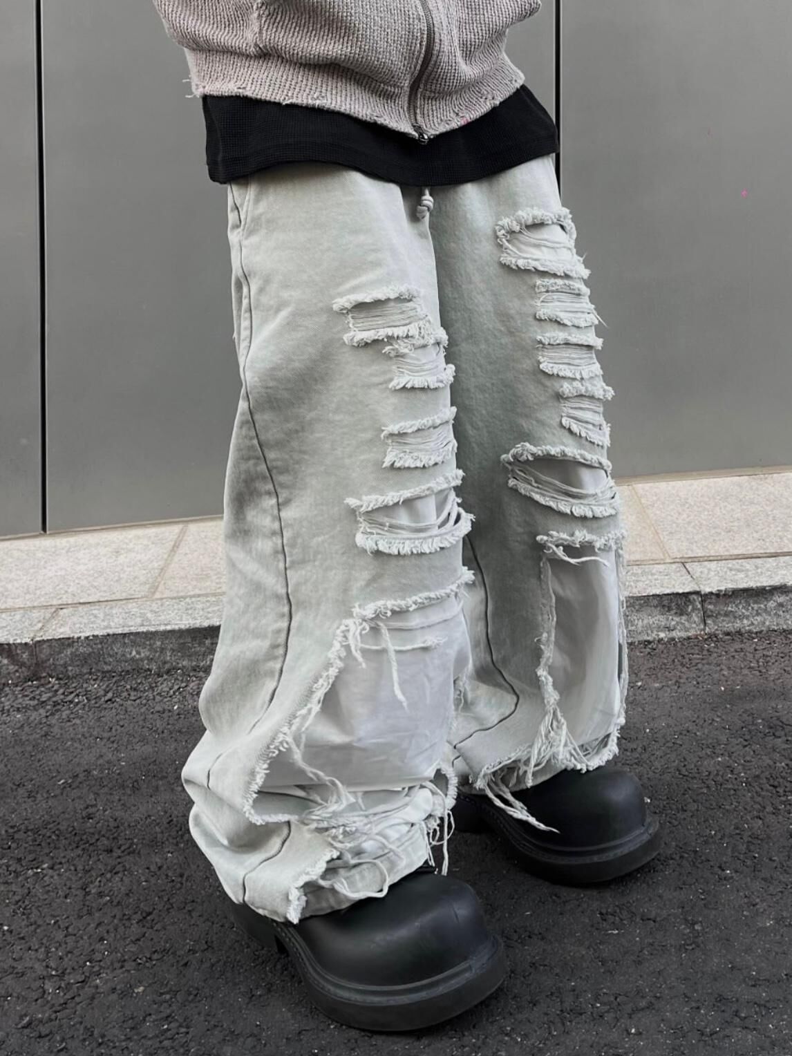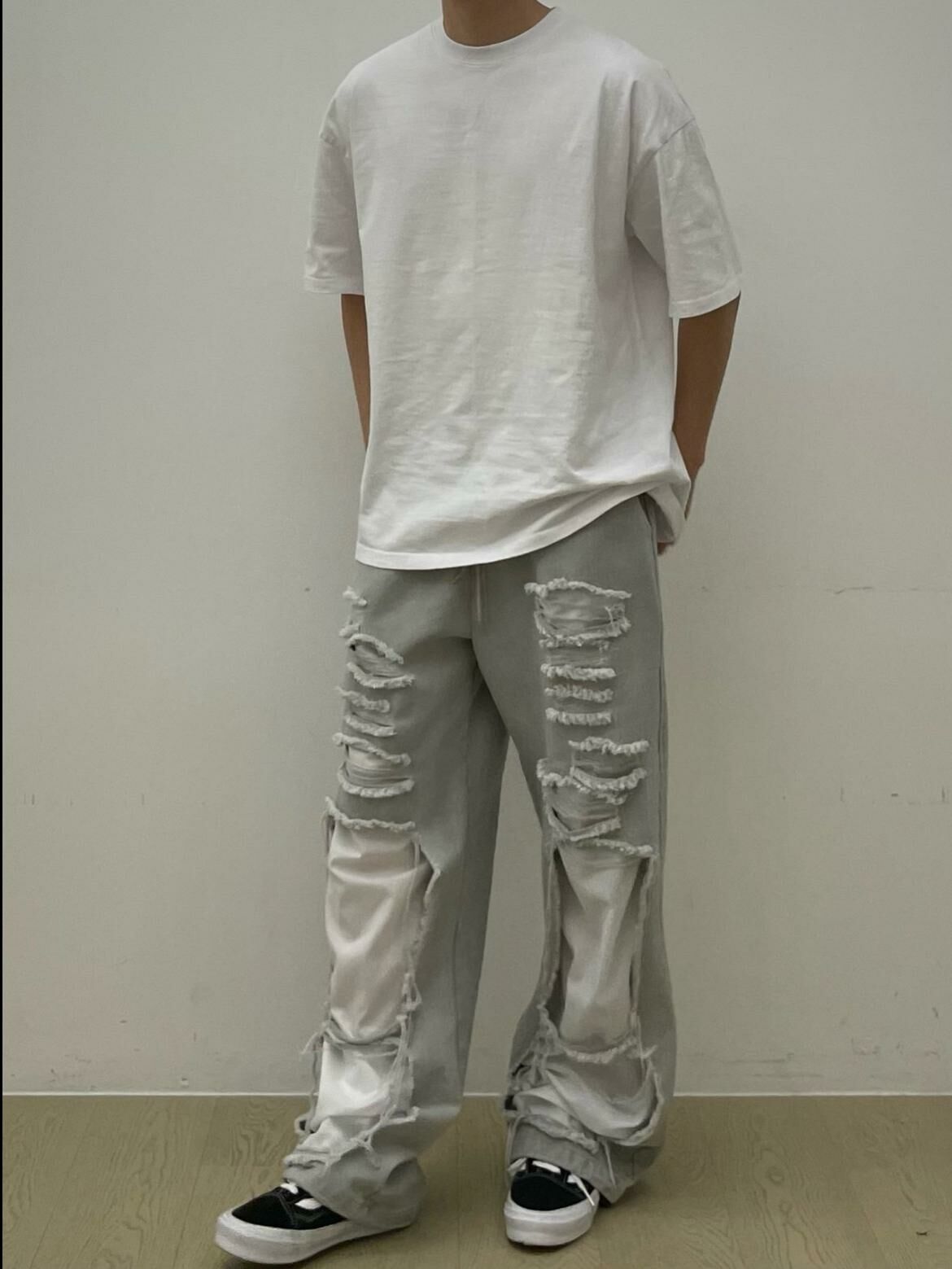 淨色破洞可束腳鬆身運動褲 EASY-062P