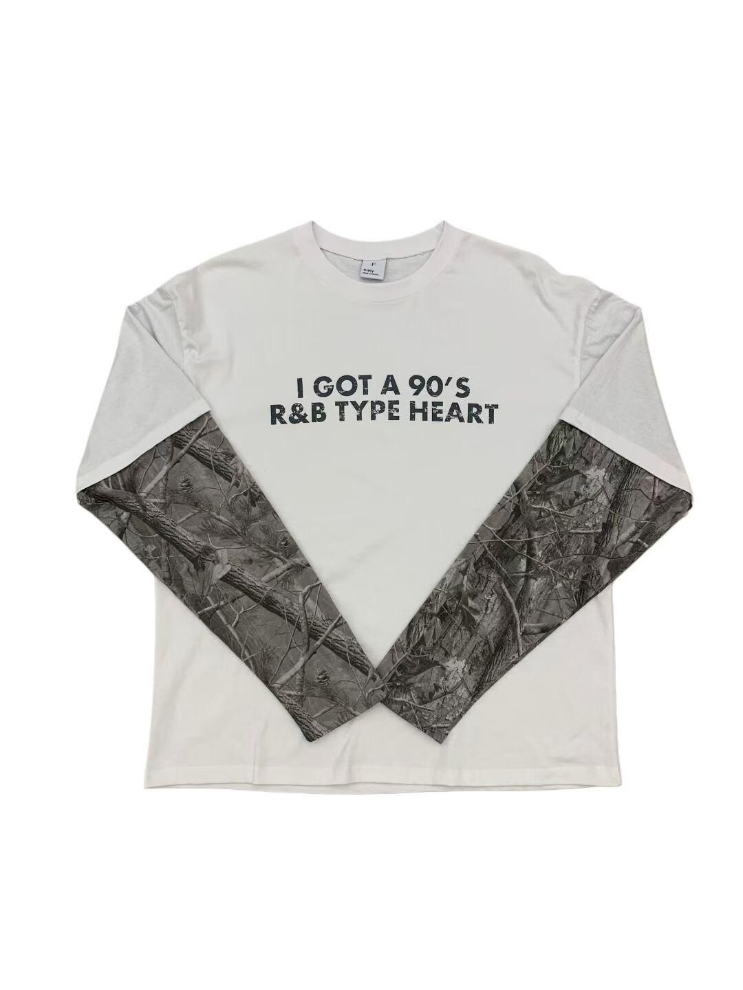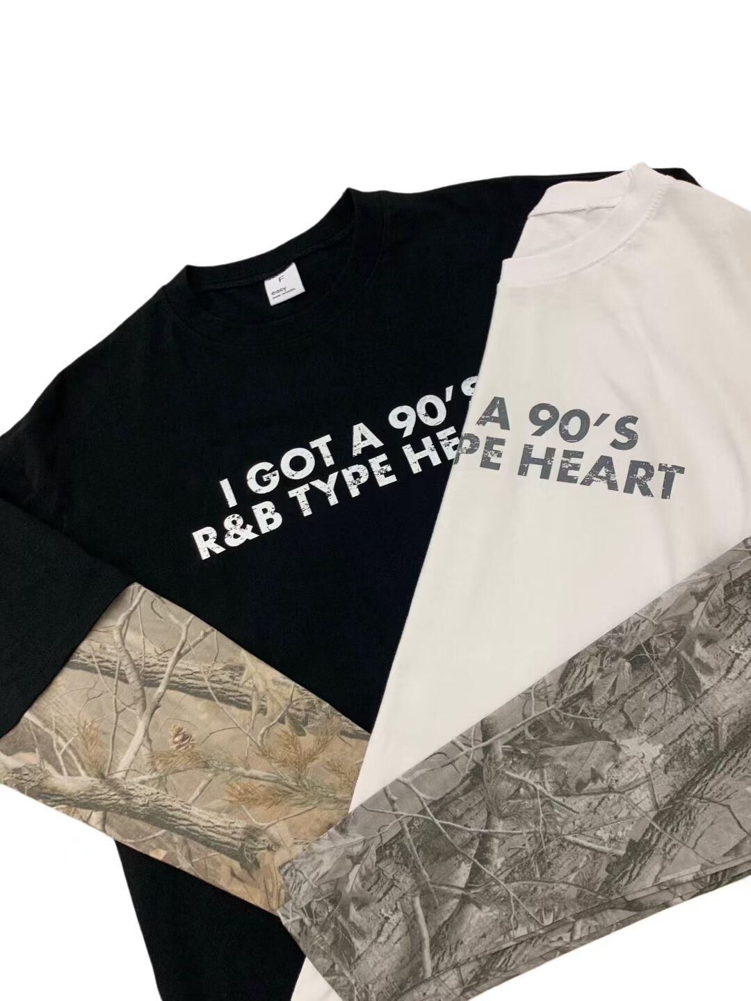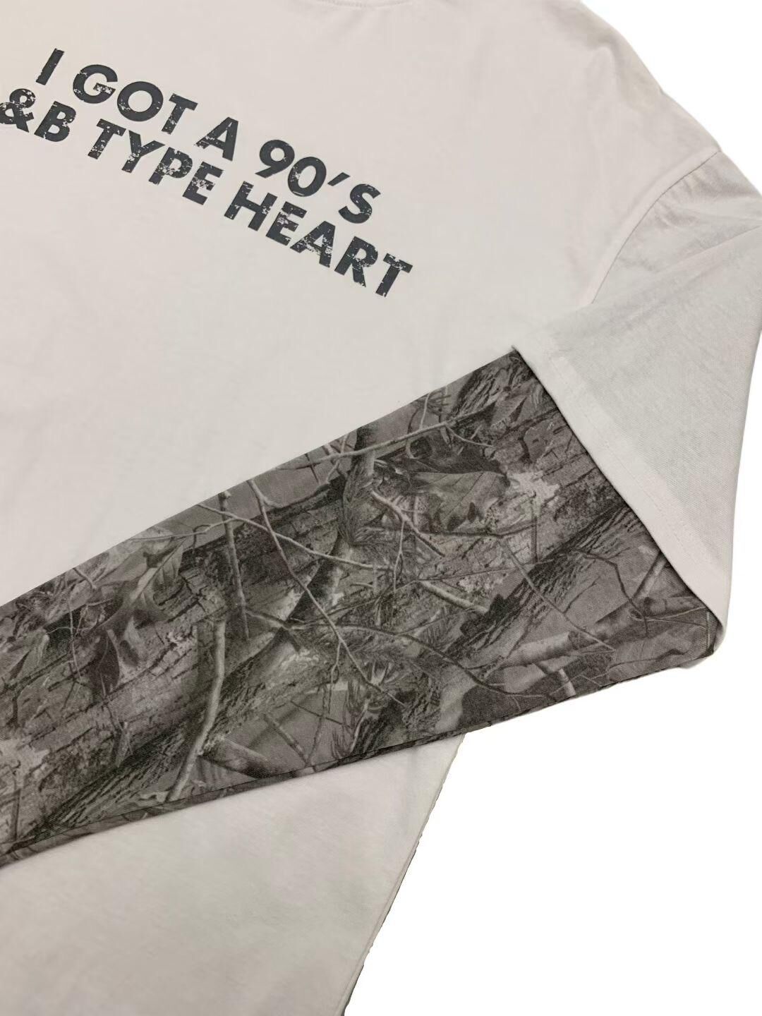 英文字假兩件樹紋袖長袖衫 EASY-089T