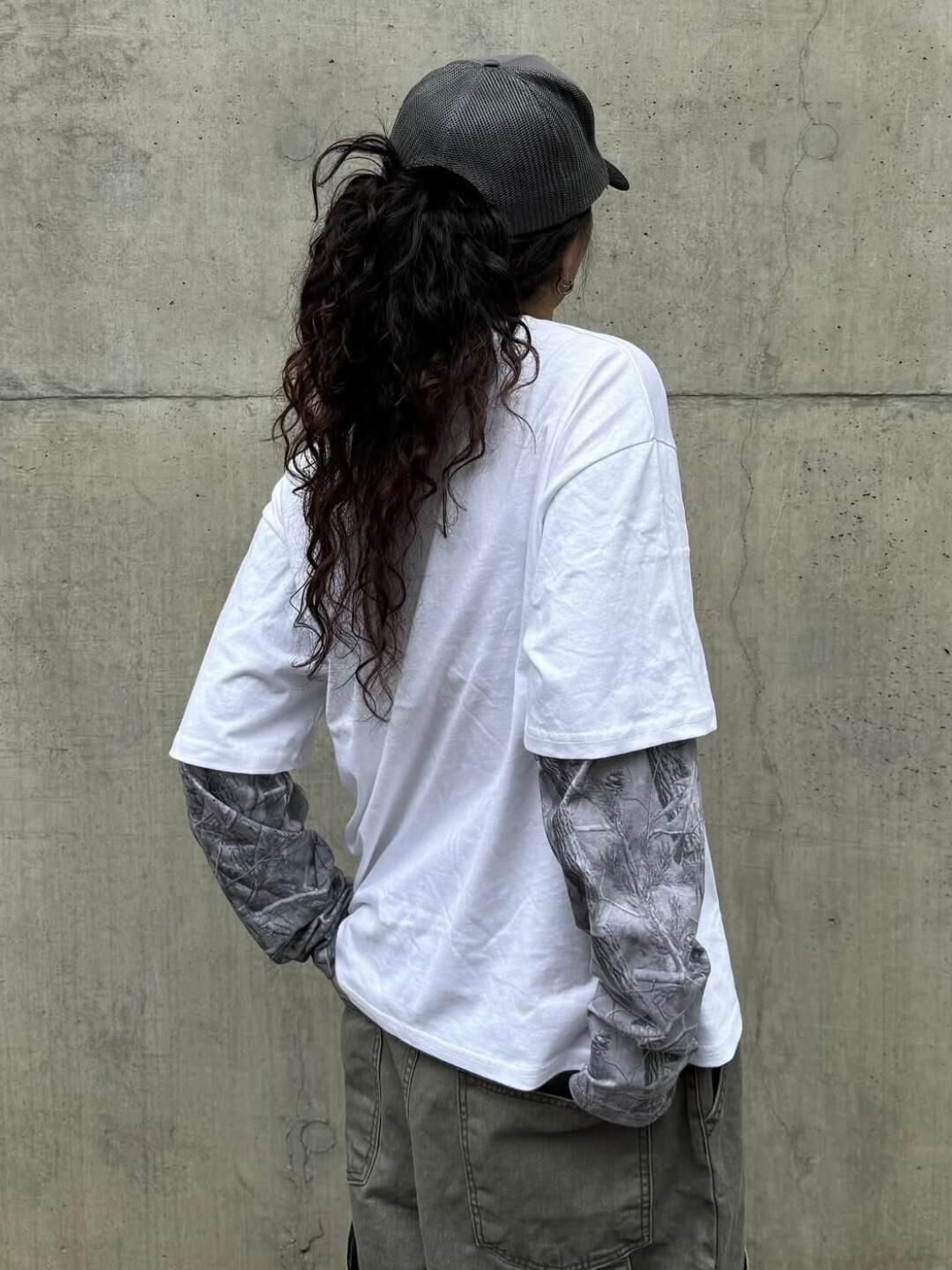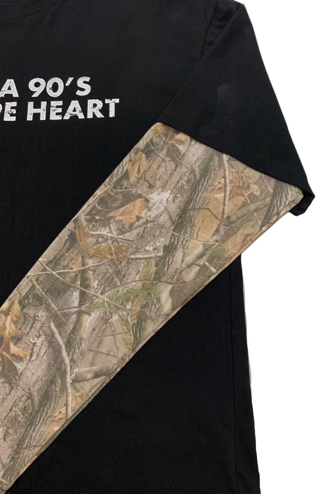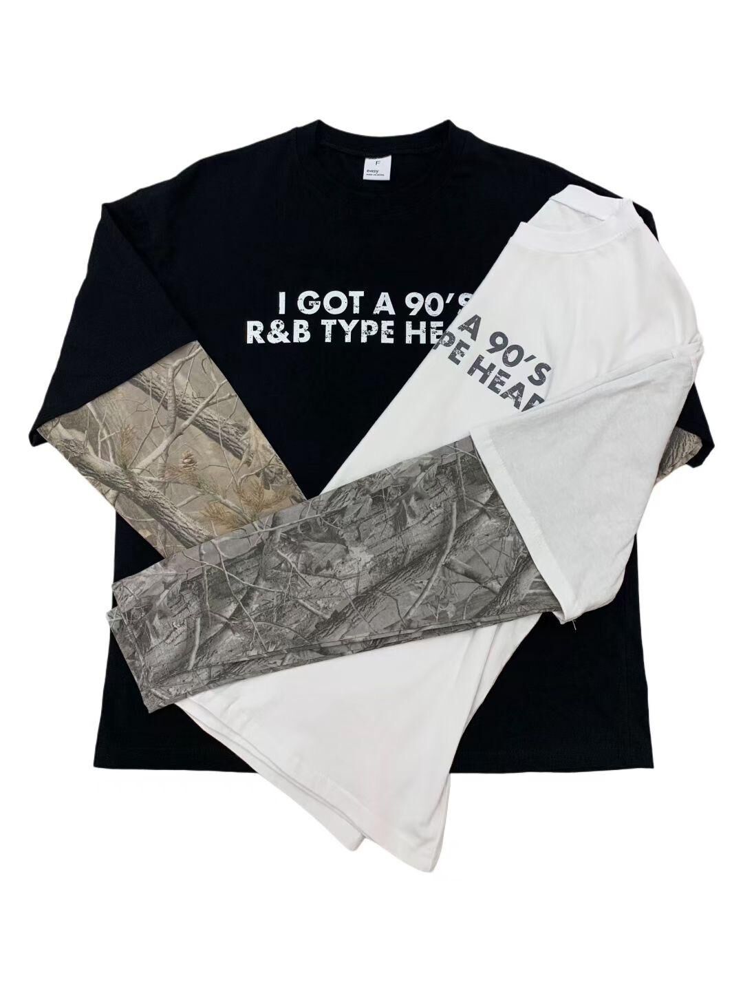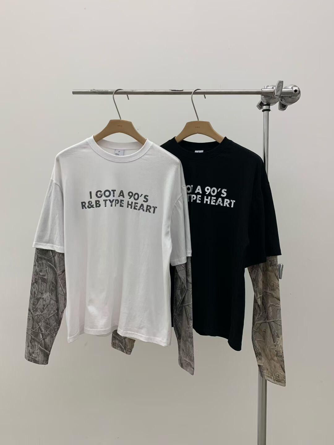 英文字假兩件樹紋袖長袖衫 EASY-089T