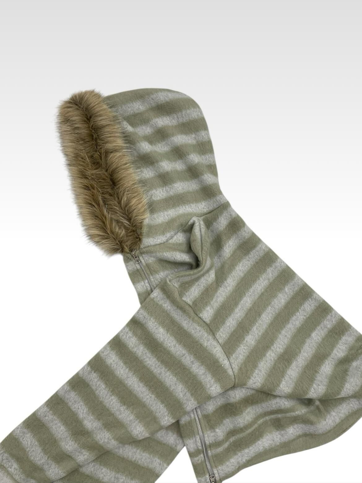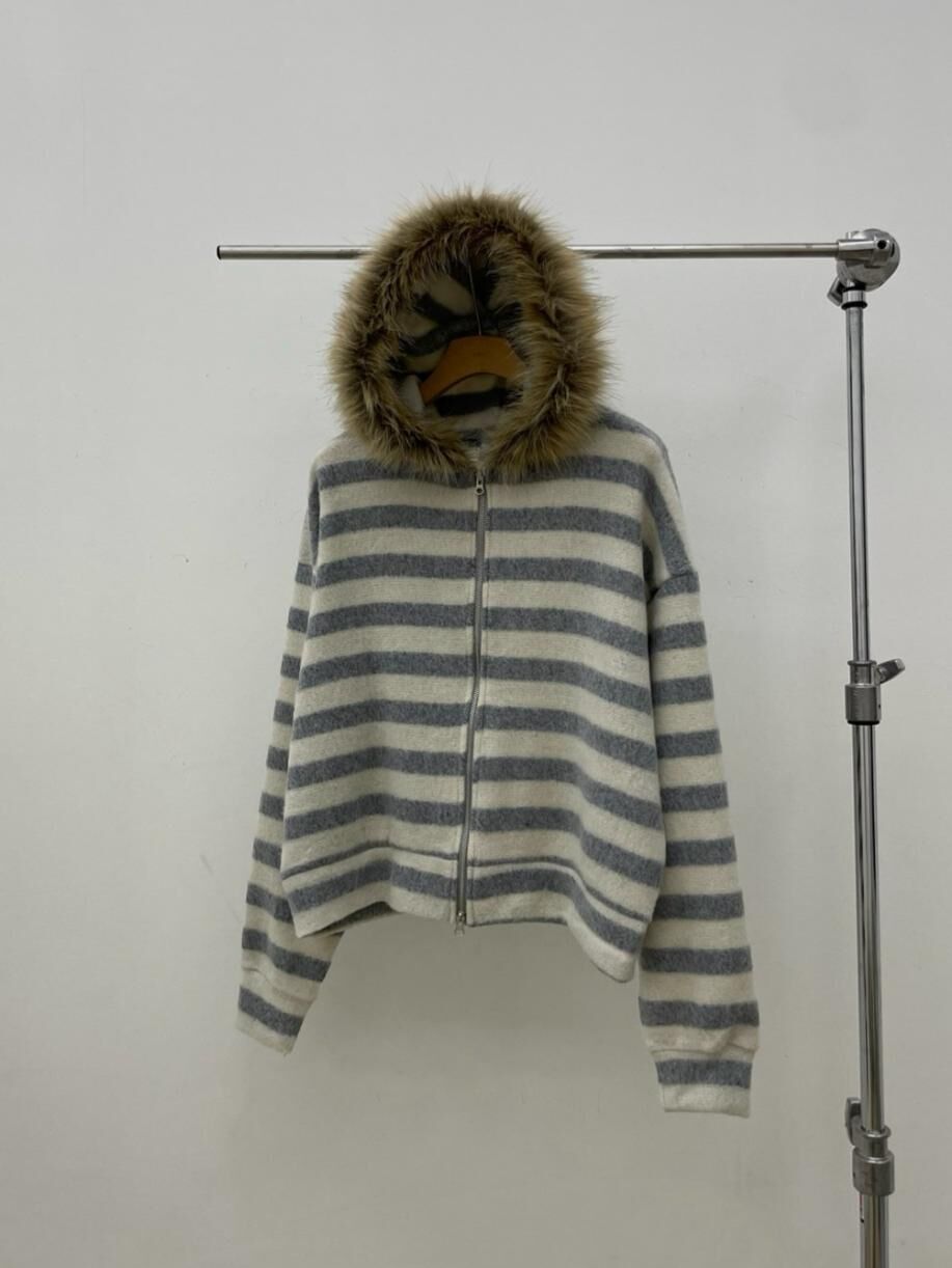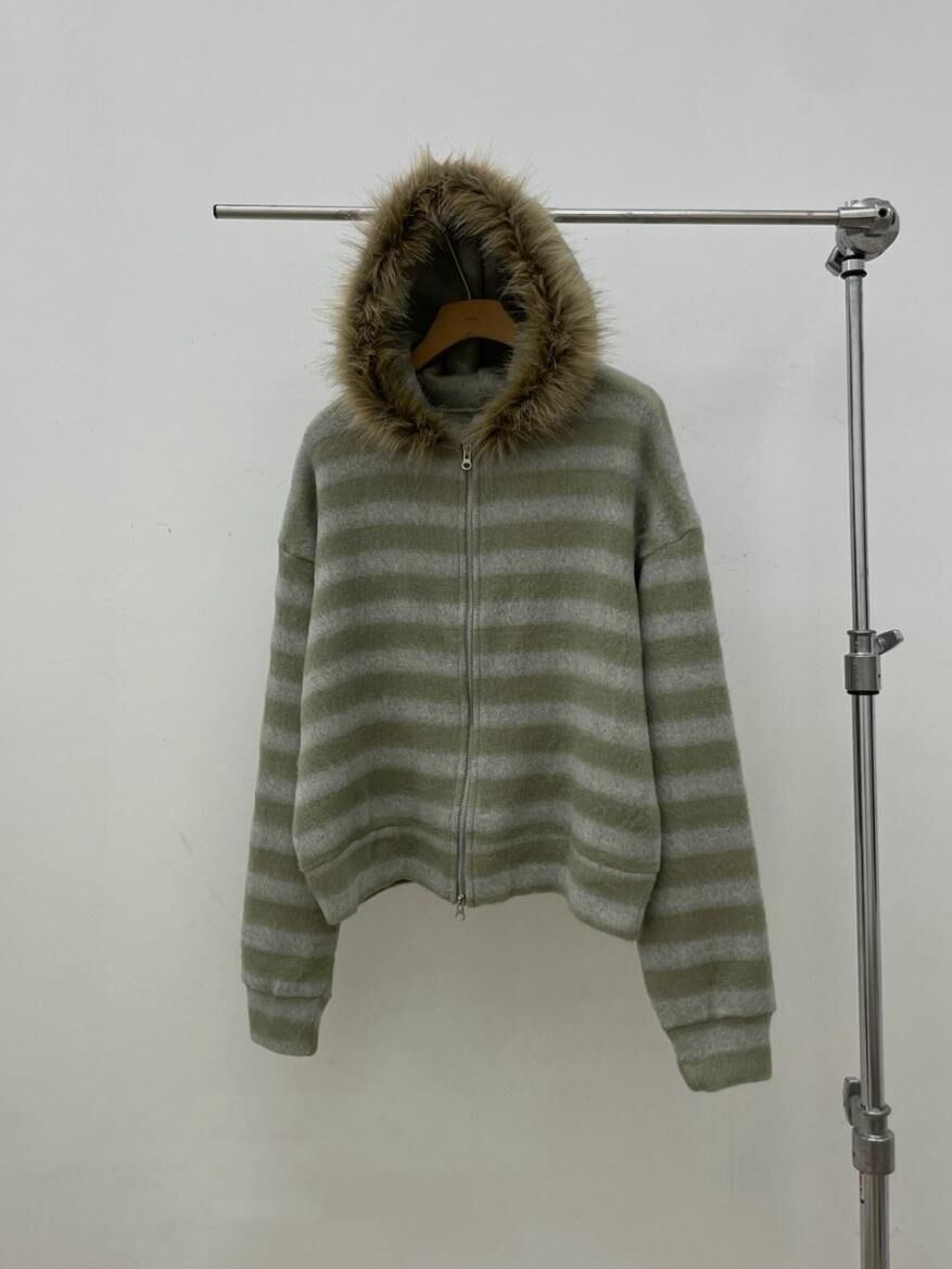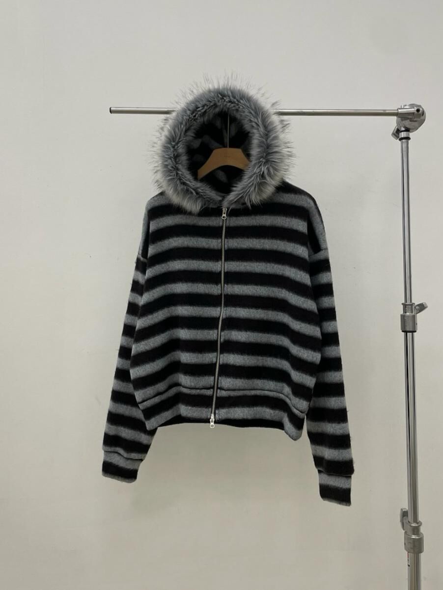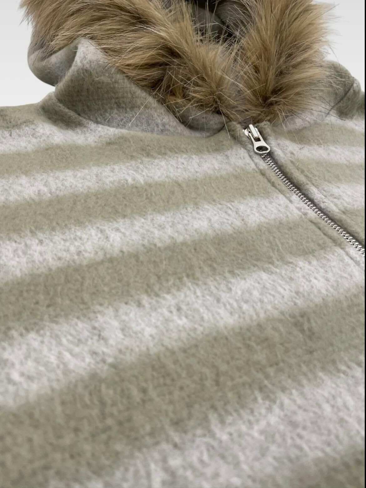 毛毛帽橫間拉鍊外套 EASY-093JK