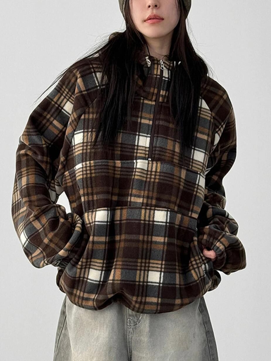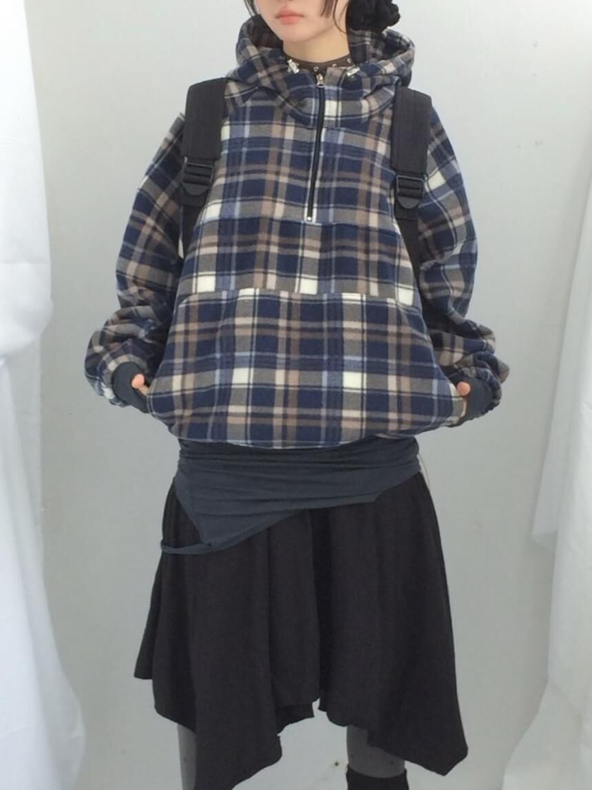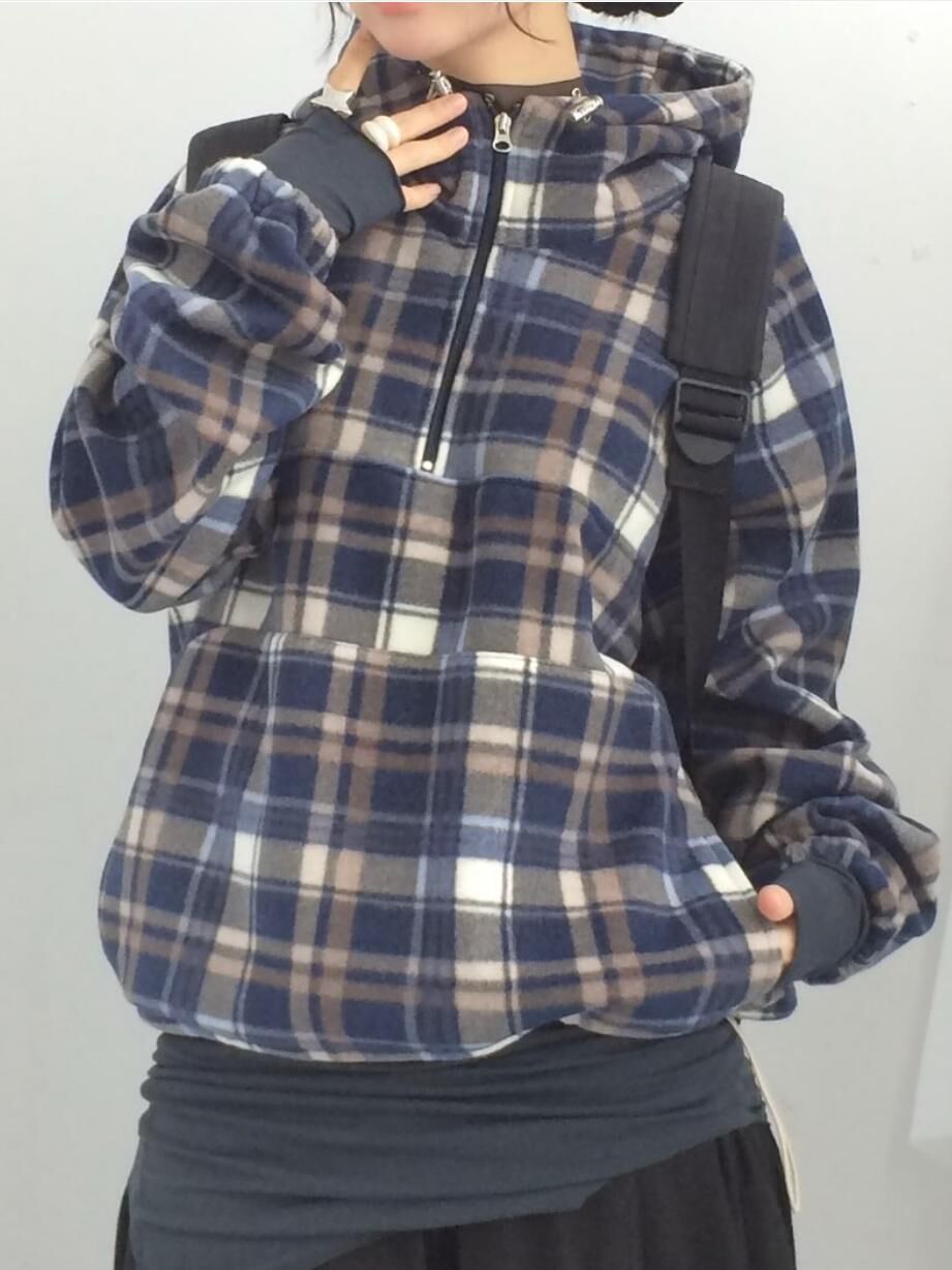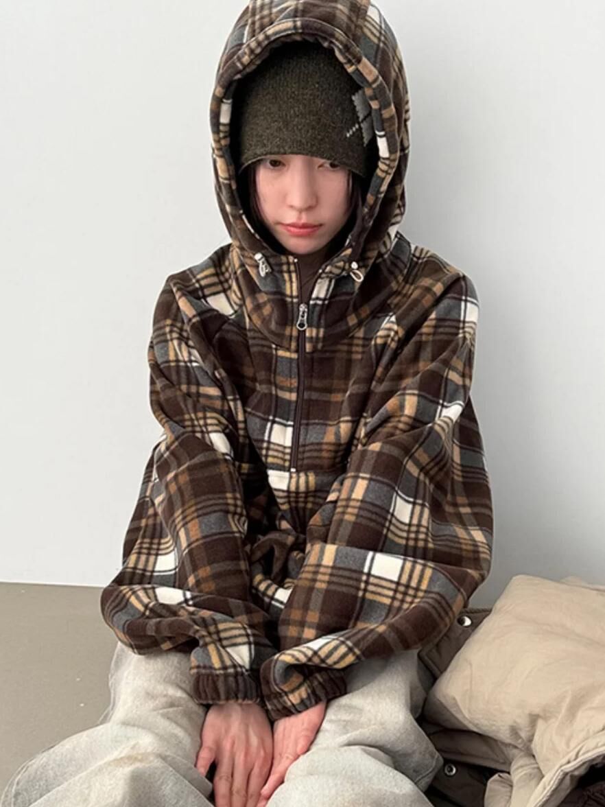 格仔半開胸連帽衛衣 EASY-102JK