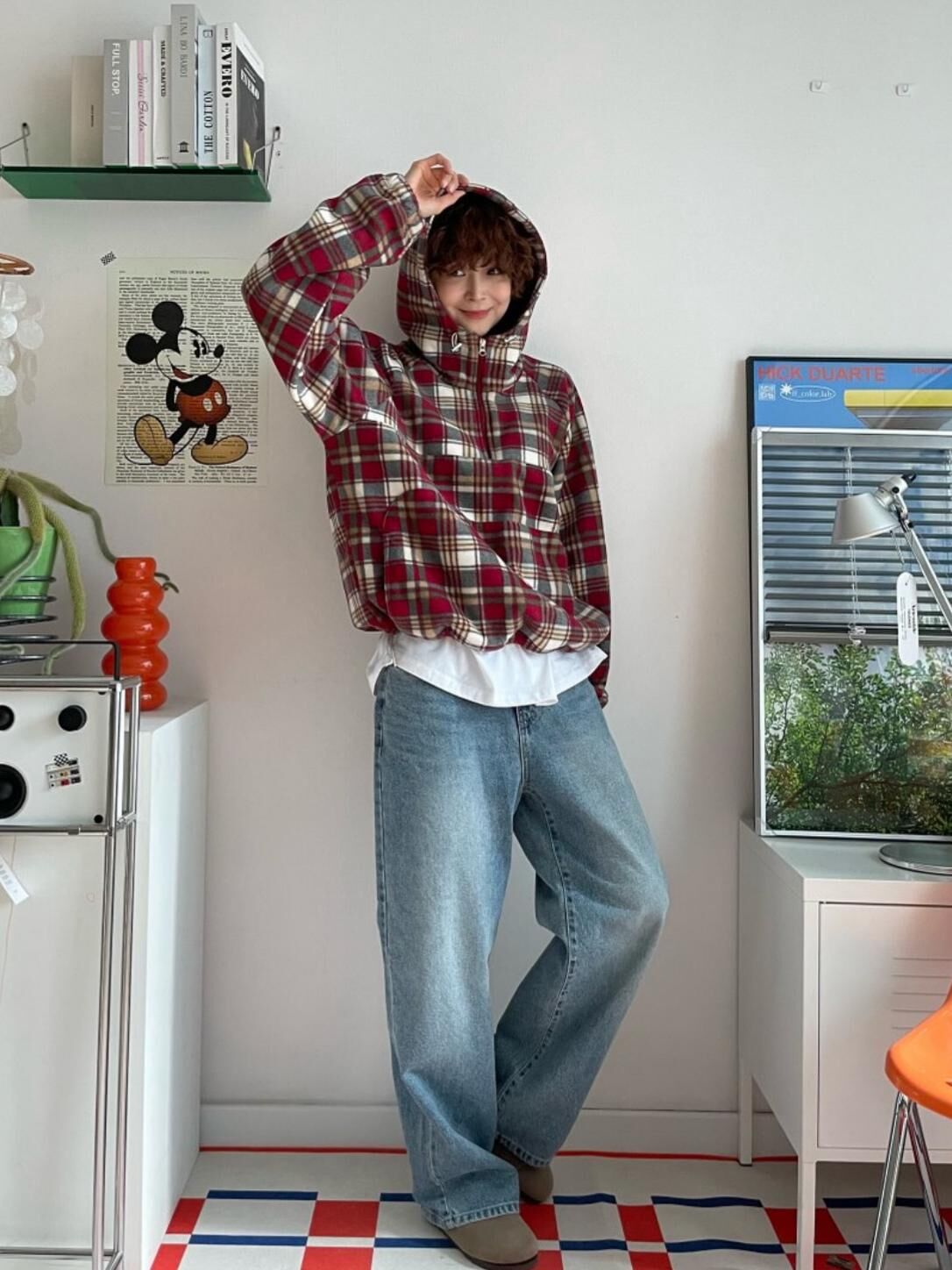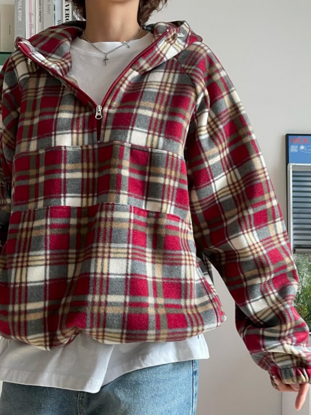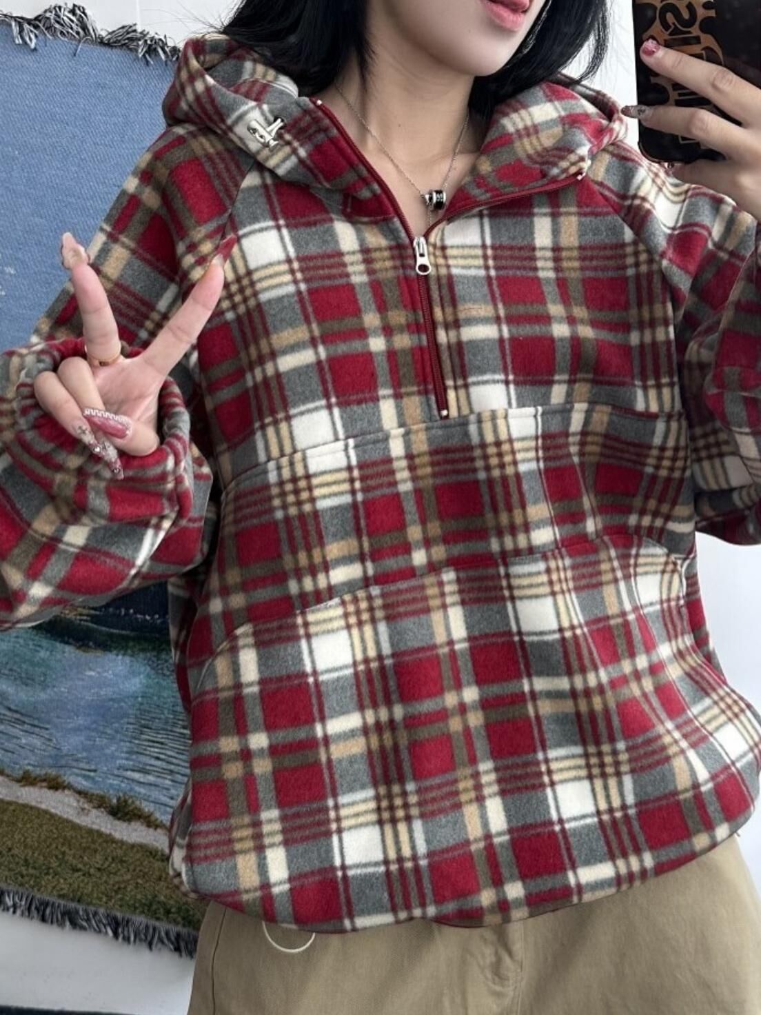 格仔半開胸連帽衛衣 EASY-102JK