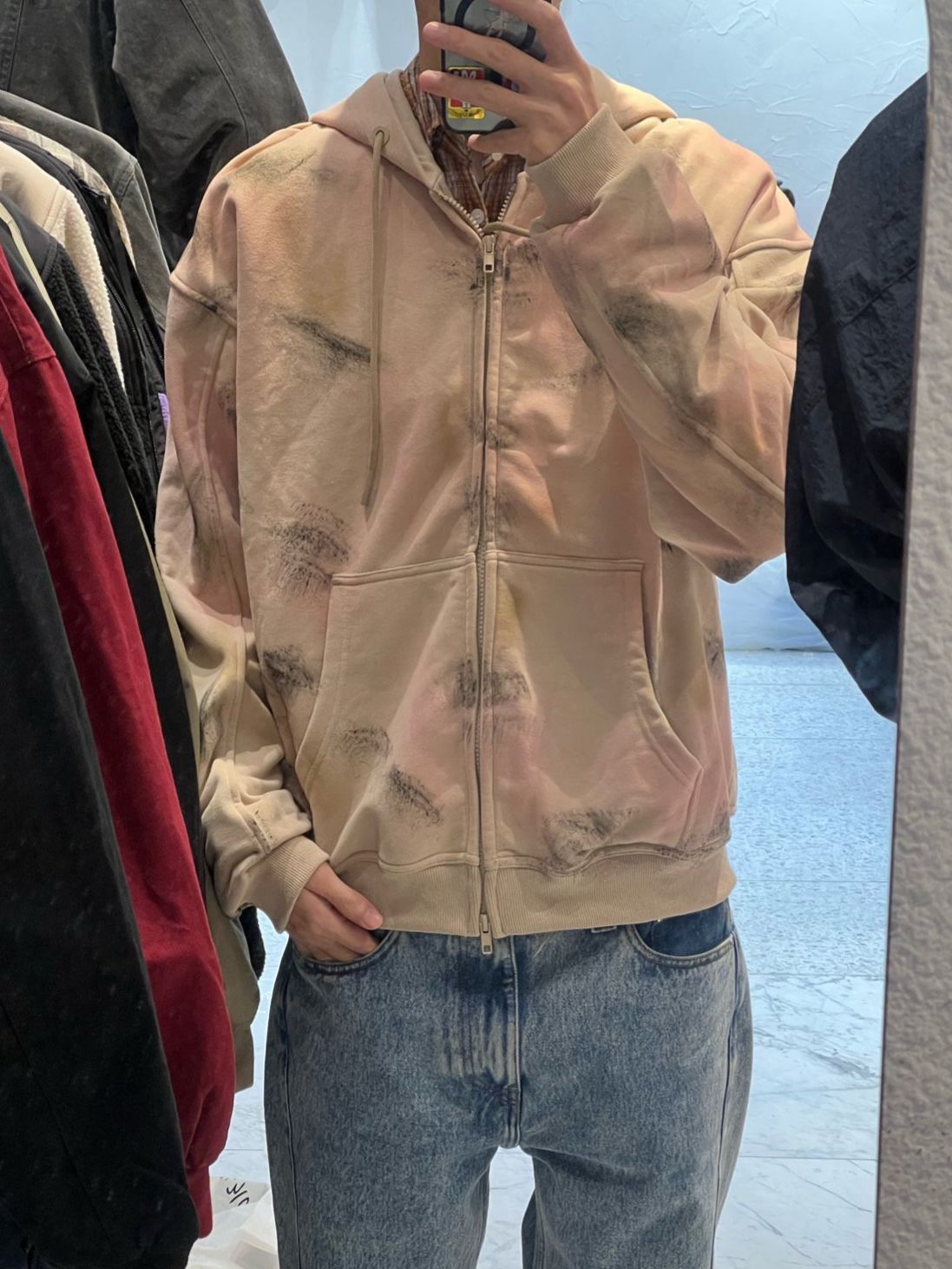 仿污連帽拉鍊外套 EDEN-032JK