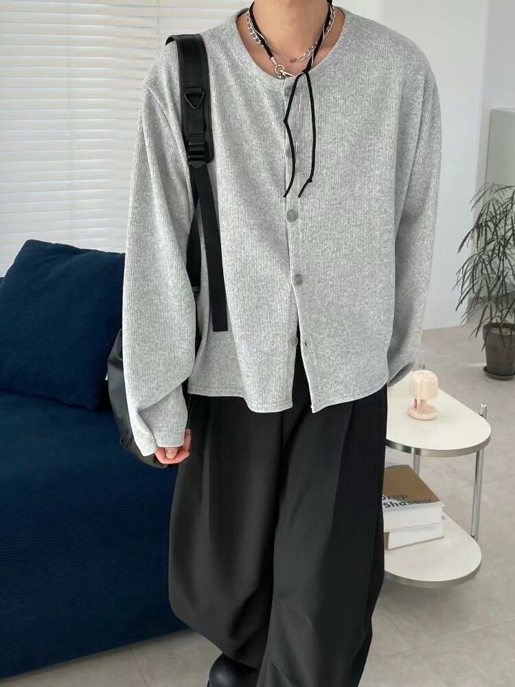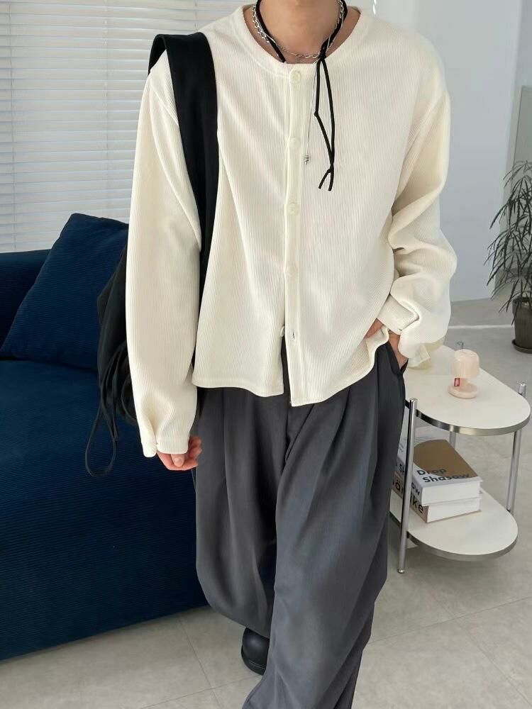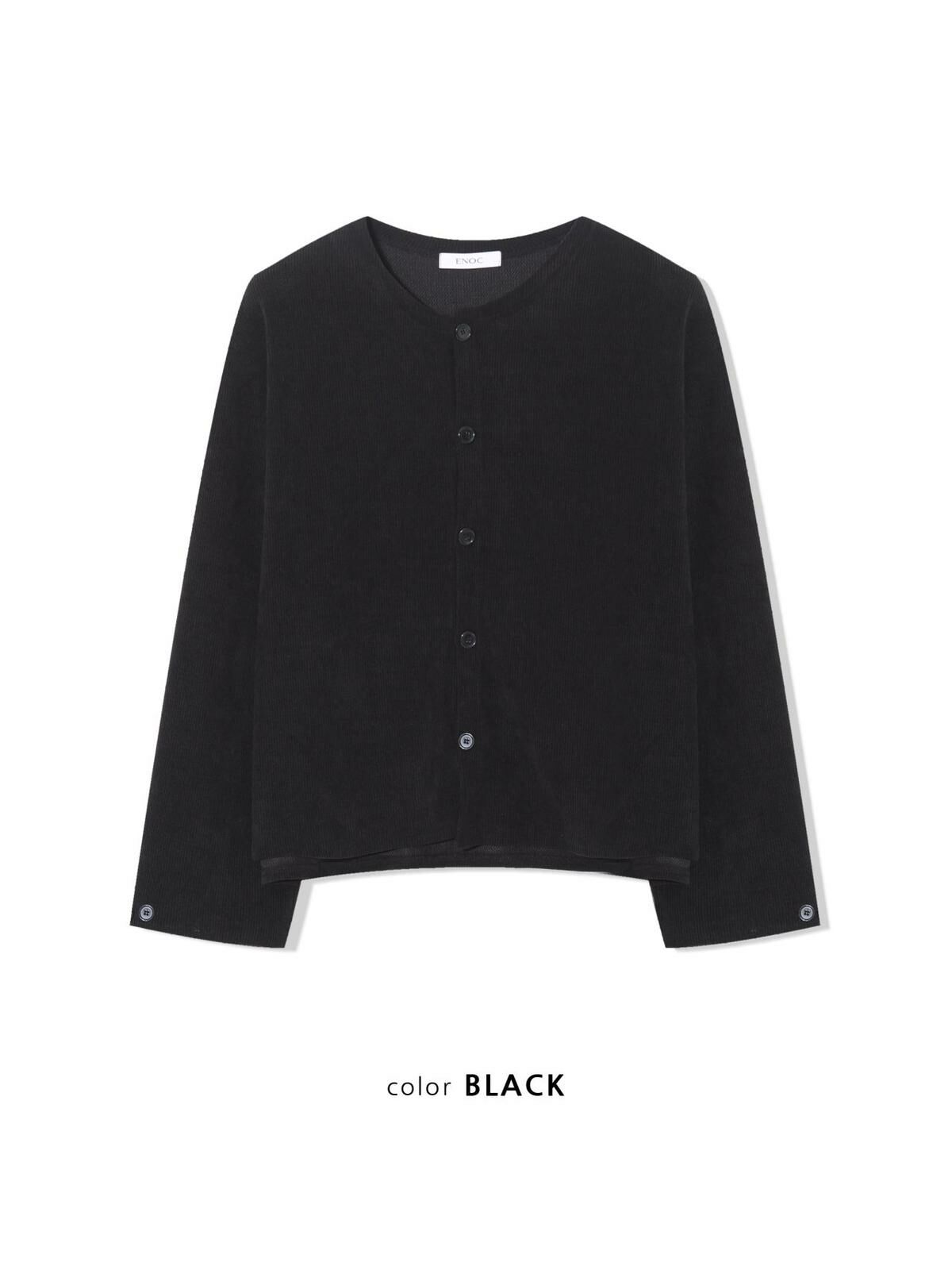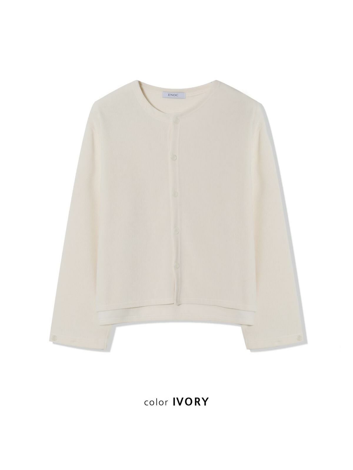 淨色圓領暗紋開胸針織外套 ENOC-018JK