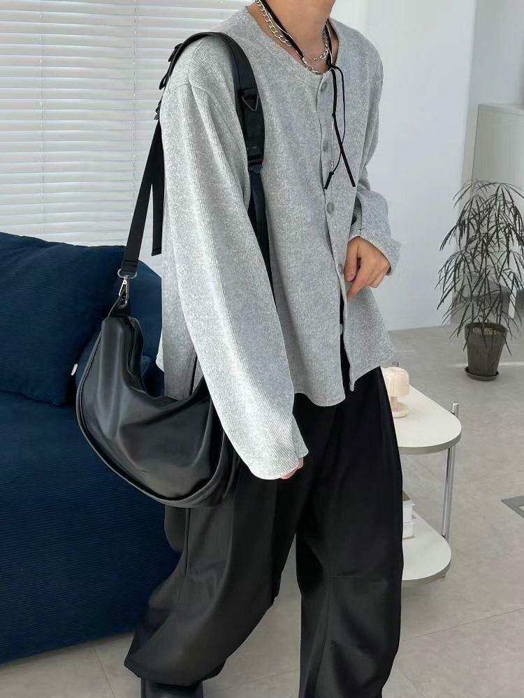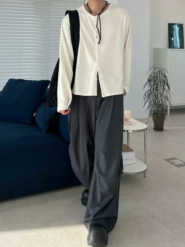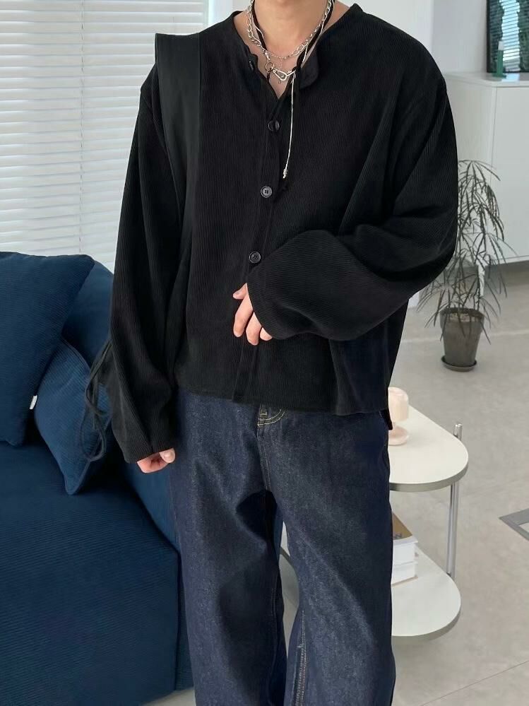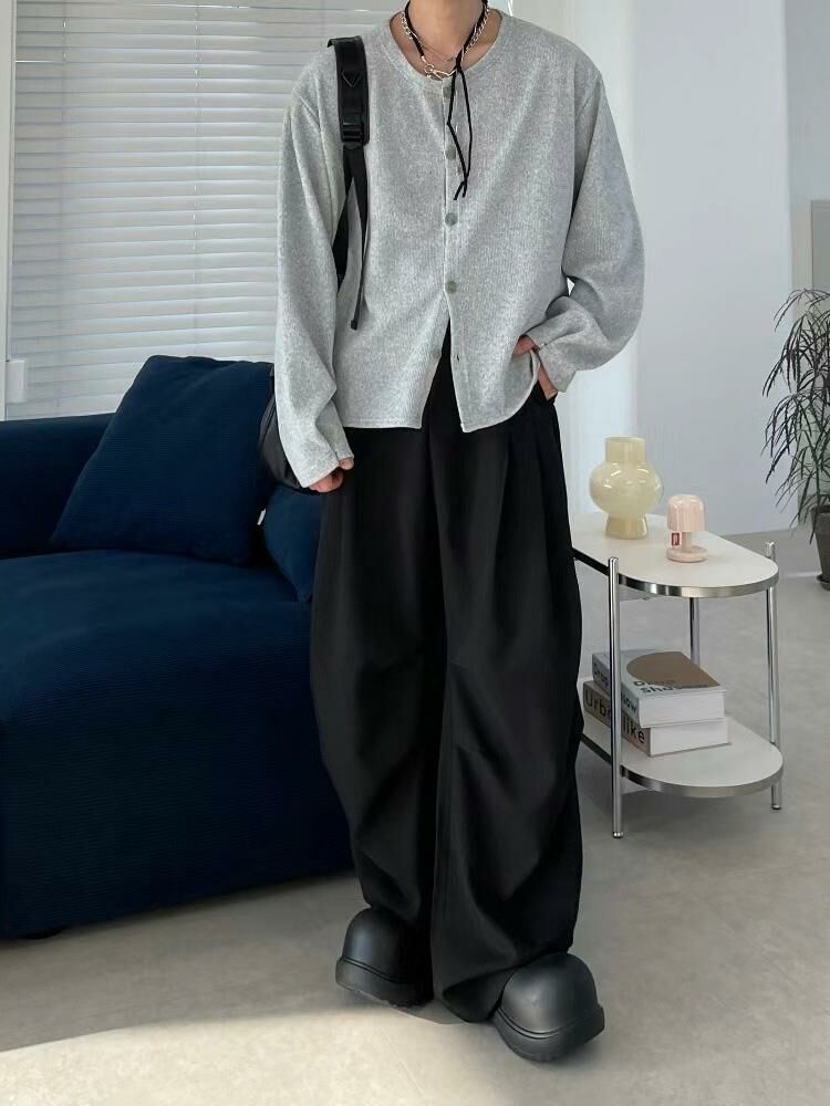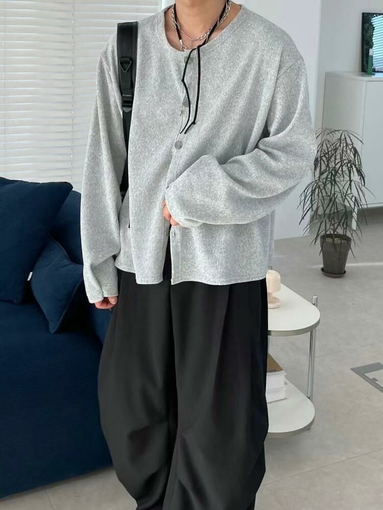 淨色圓領暗紋開胸針織外套 ENOC-018JK
