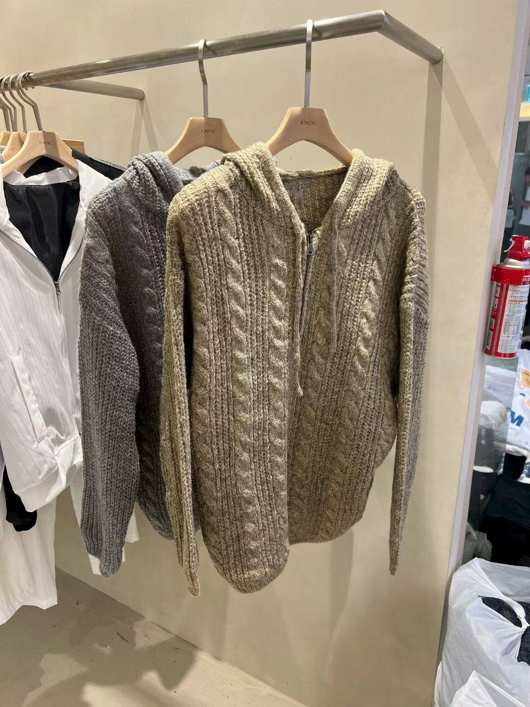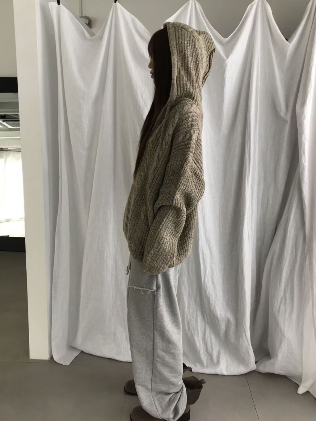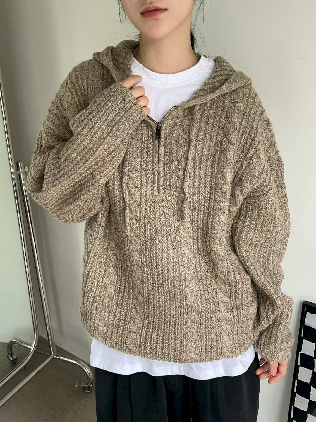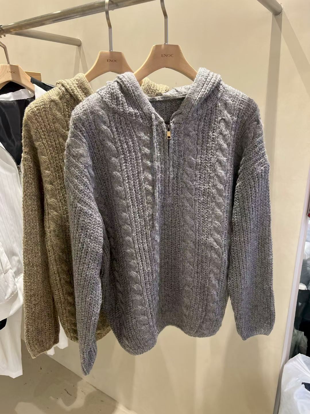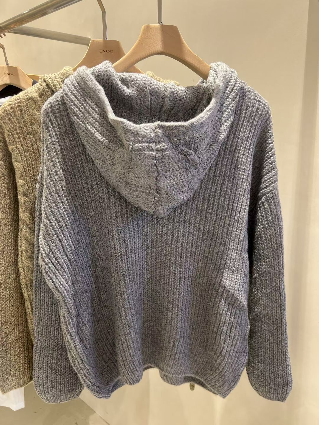淨色暗紋連帽針織衫 ENOC-044T