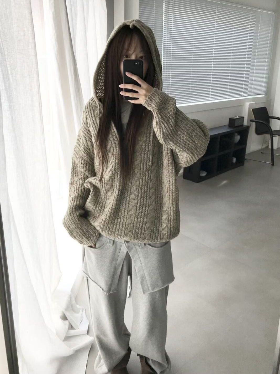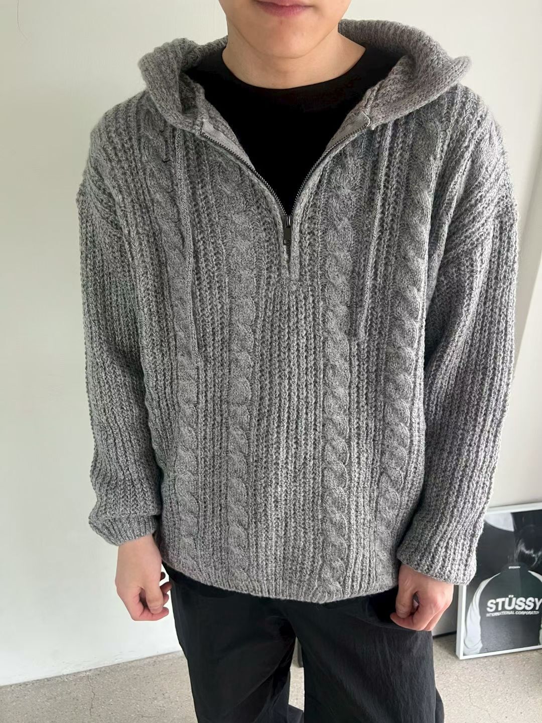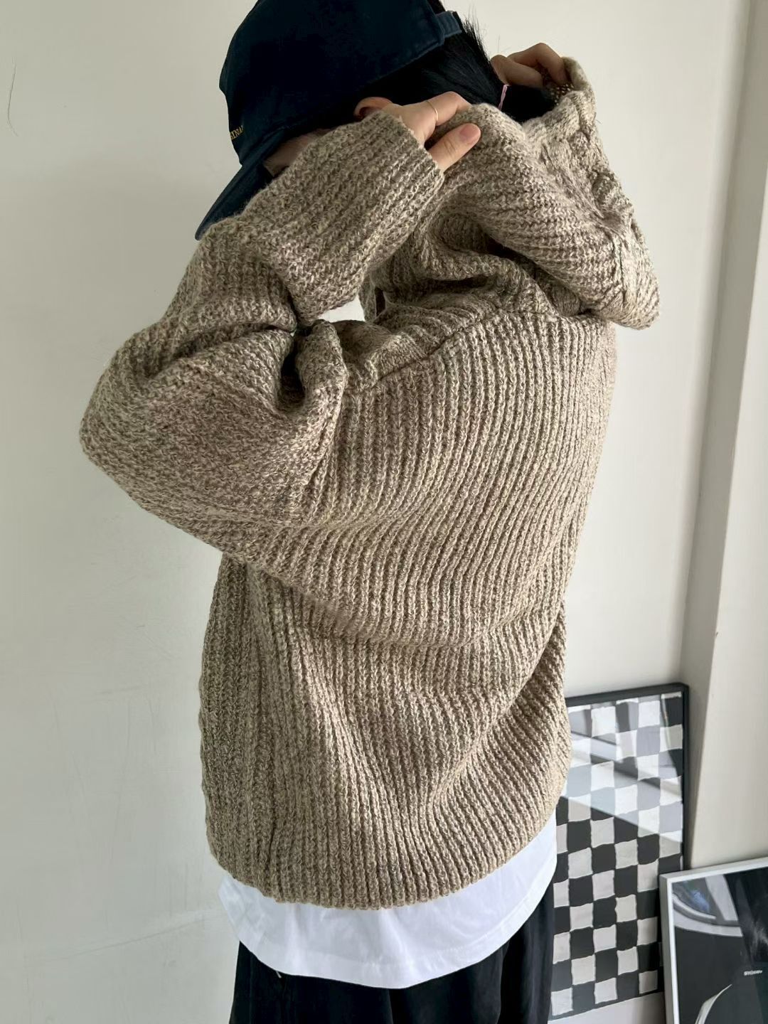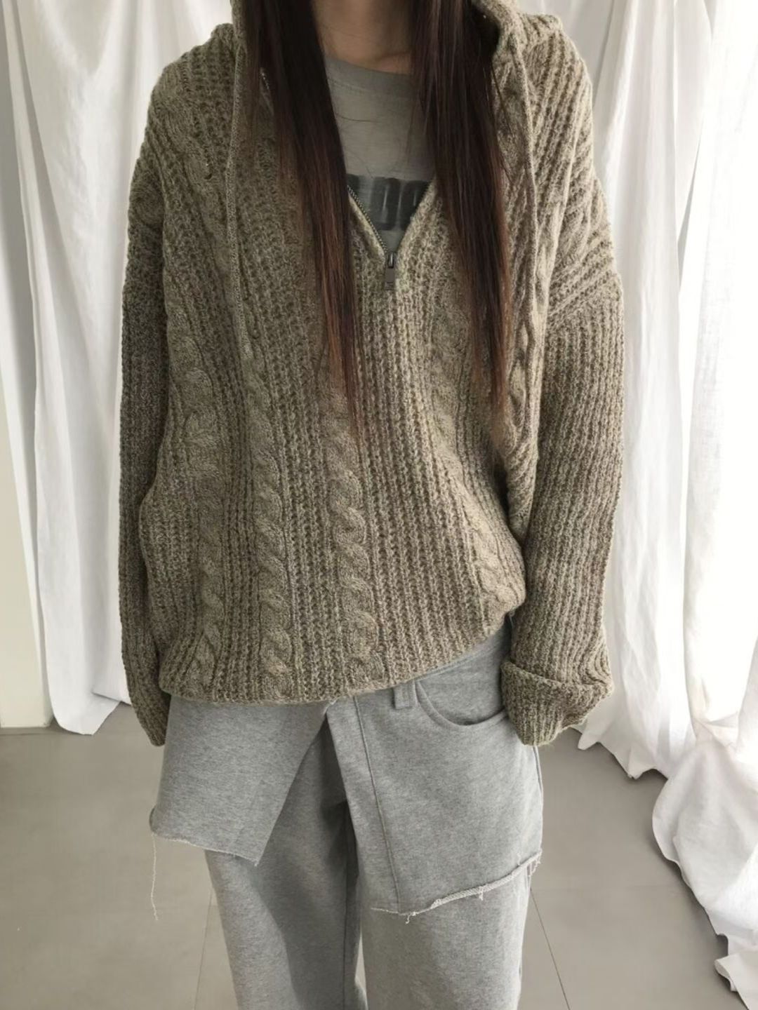 淨色暗紋連帽針織衫 ENOC-044T