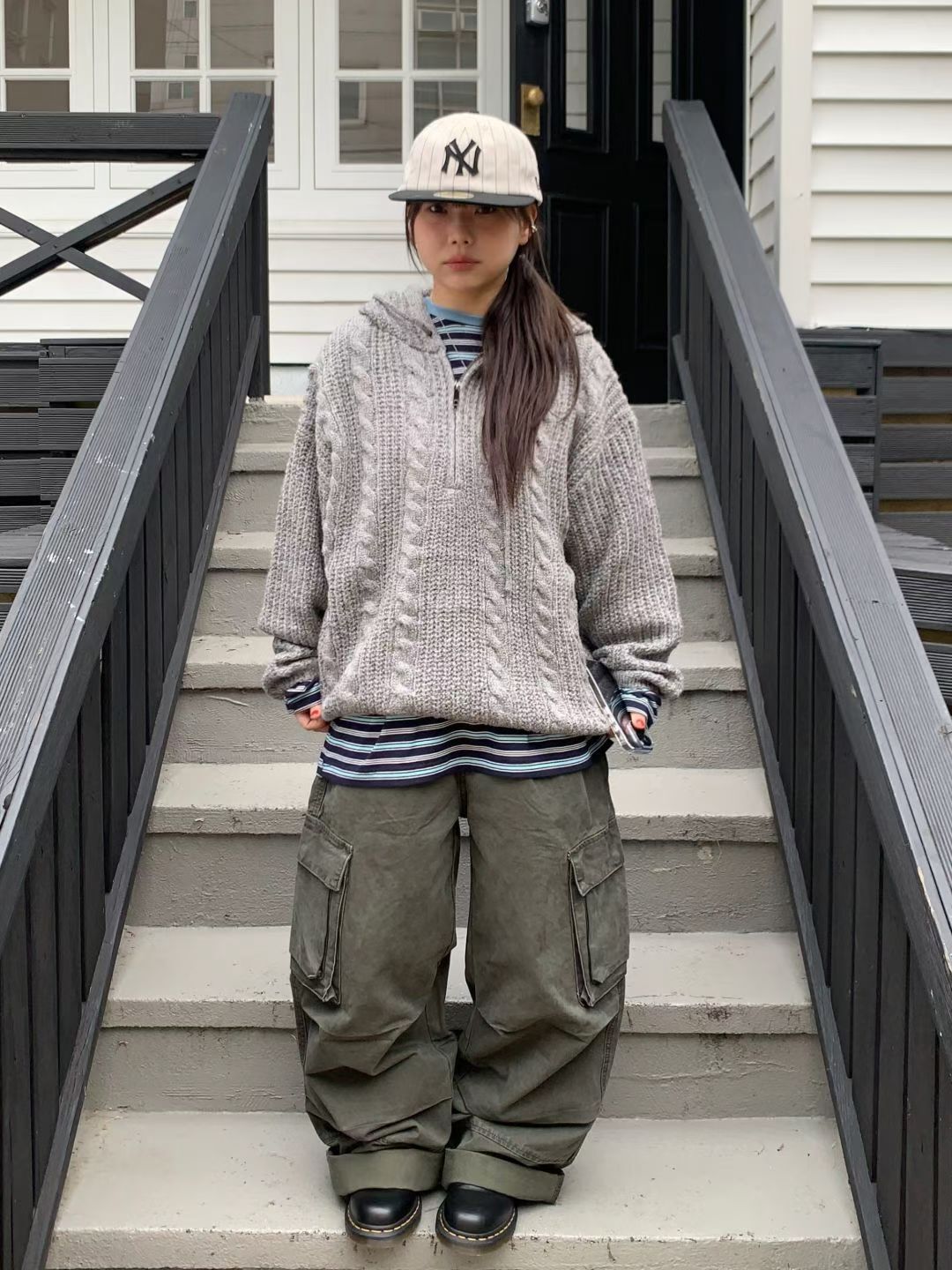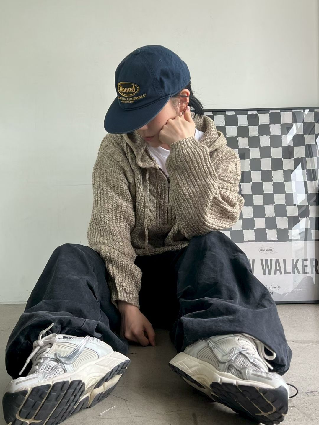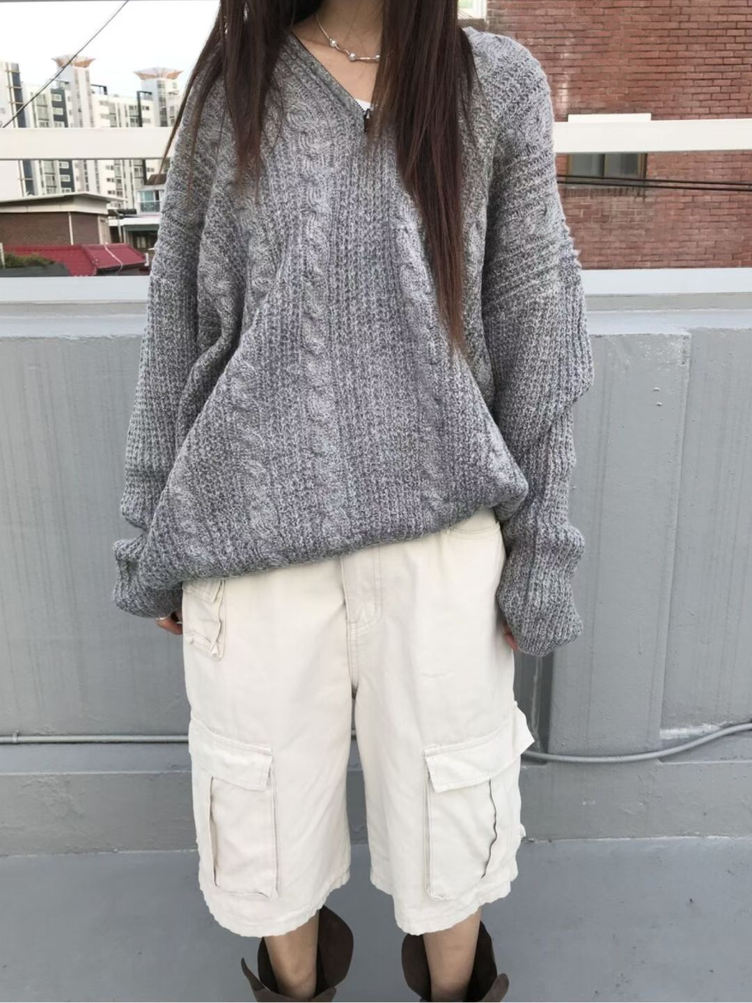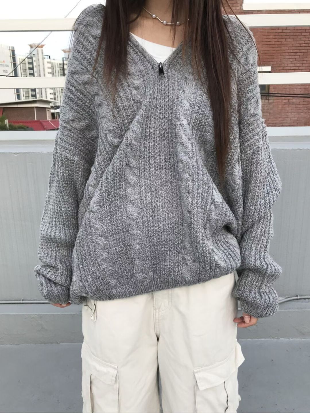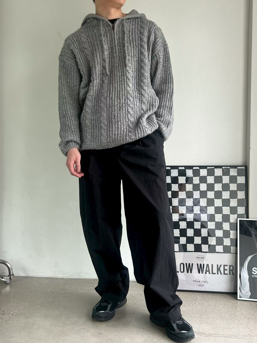 淨色暗紋連帽針織衫 ENOC-044T