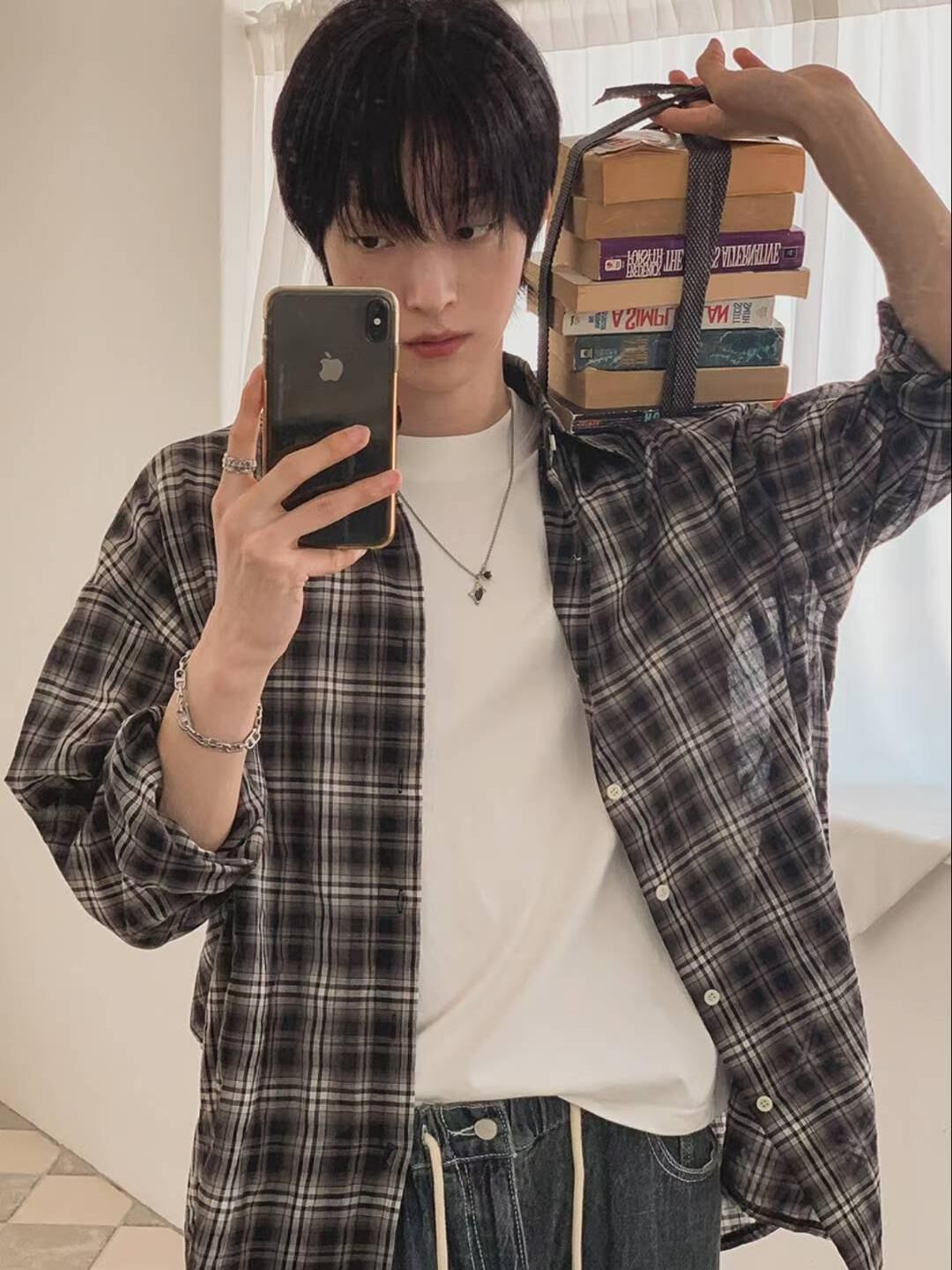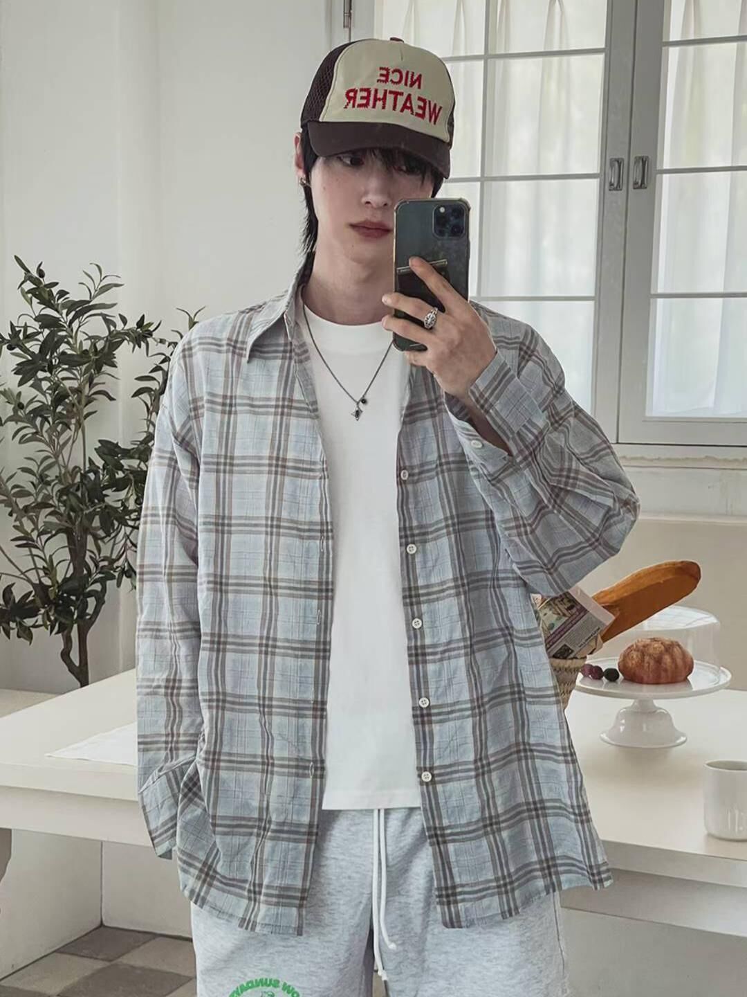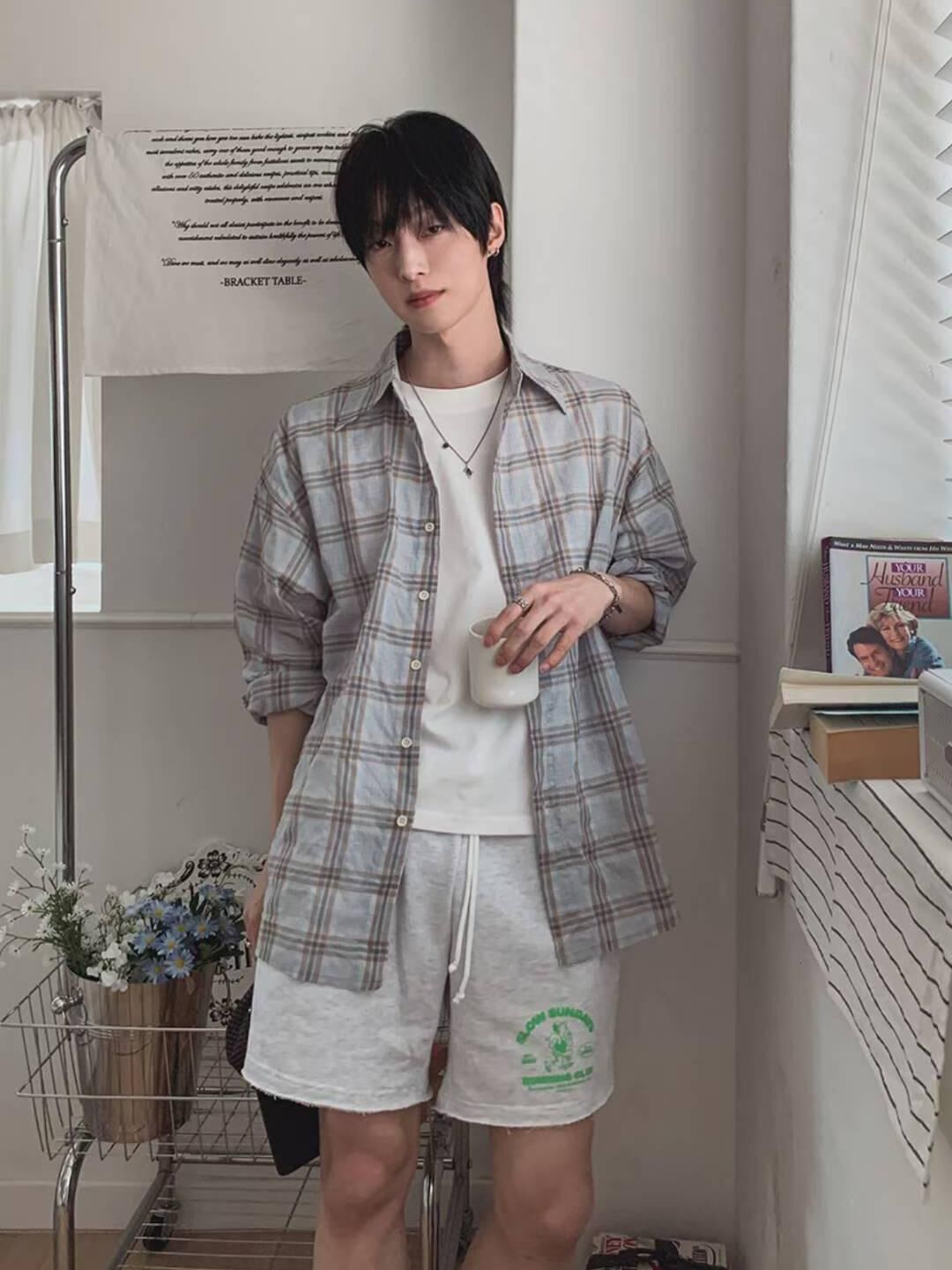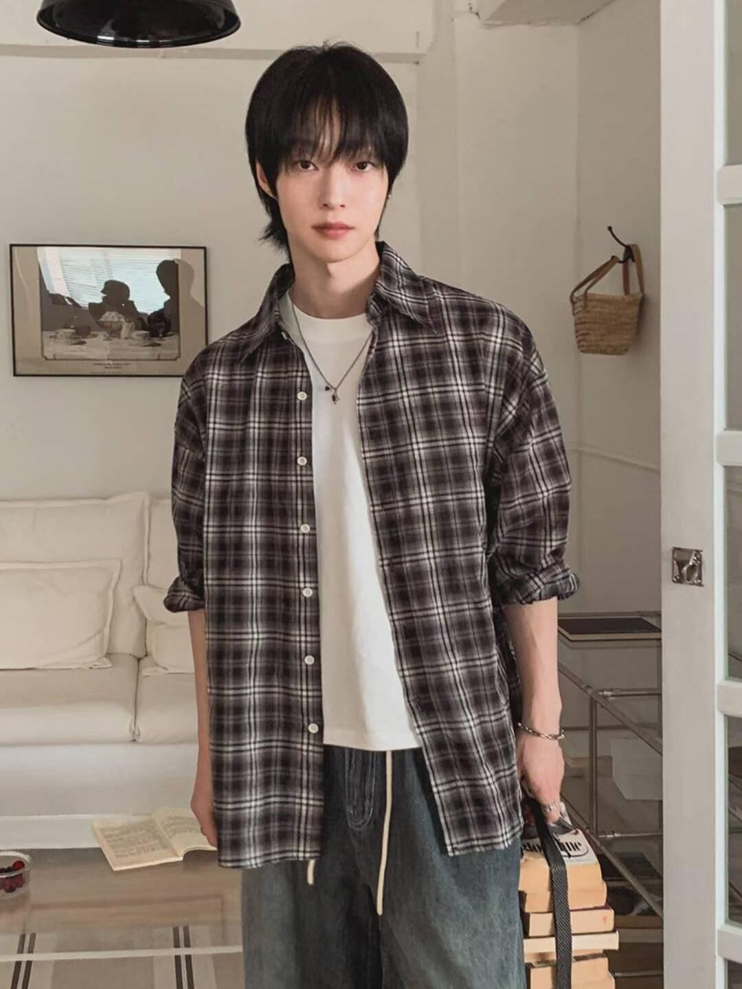 格仔長袖恤衫 ENOC-053S