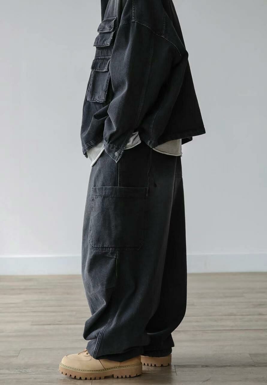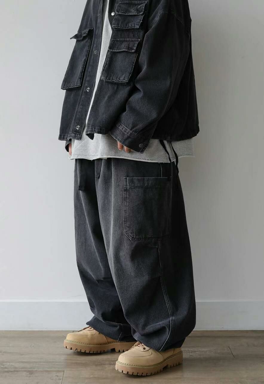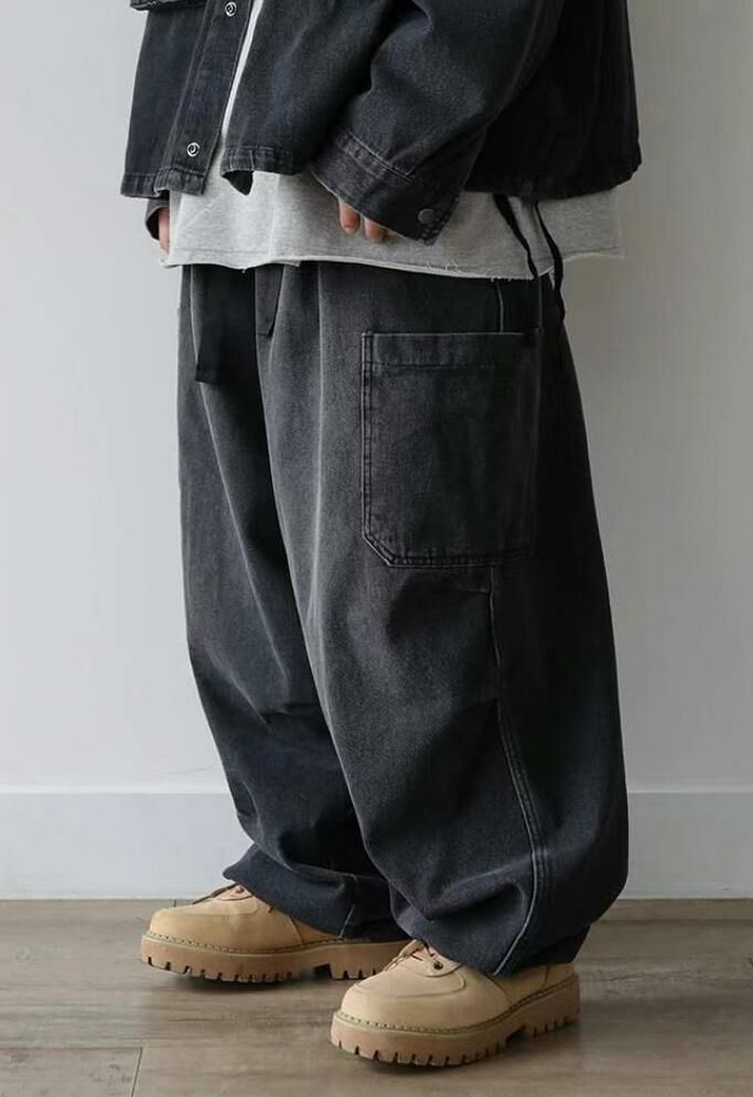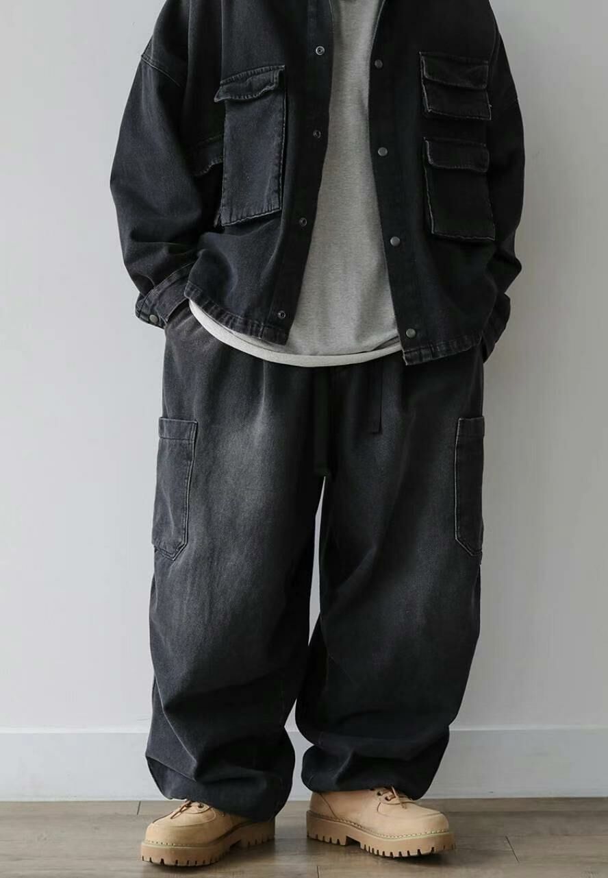 洗水淨色工裝鬆身牛仔褲 FARMERS-038J