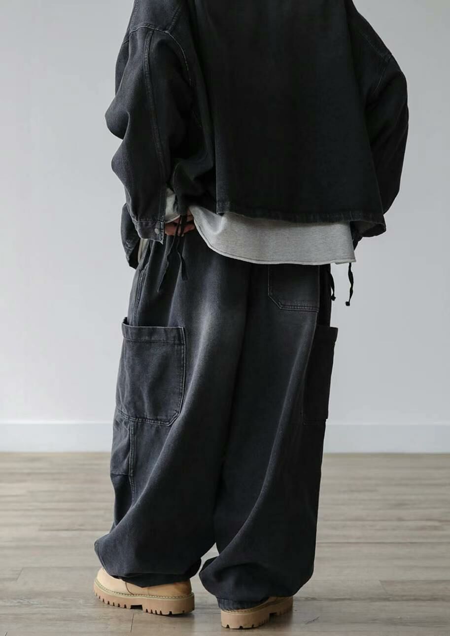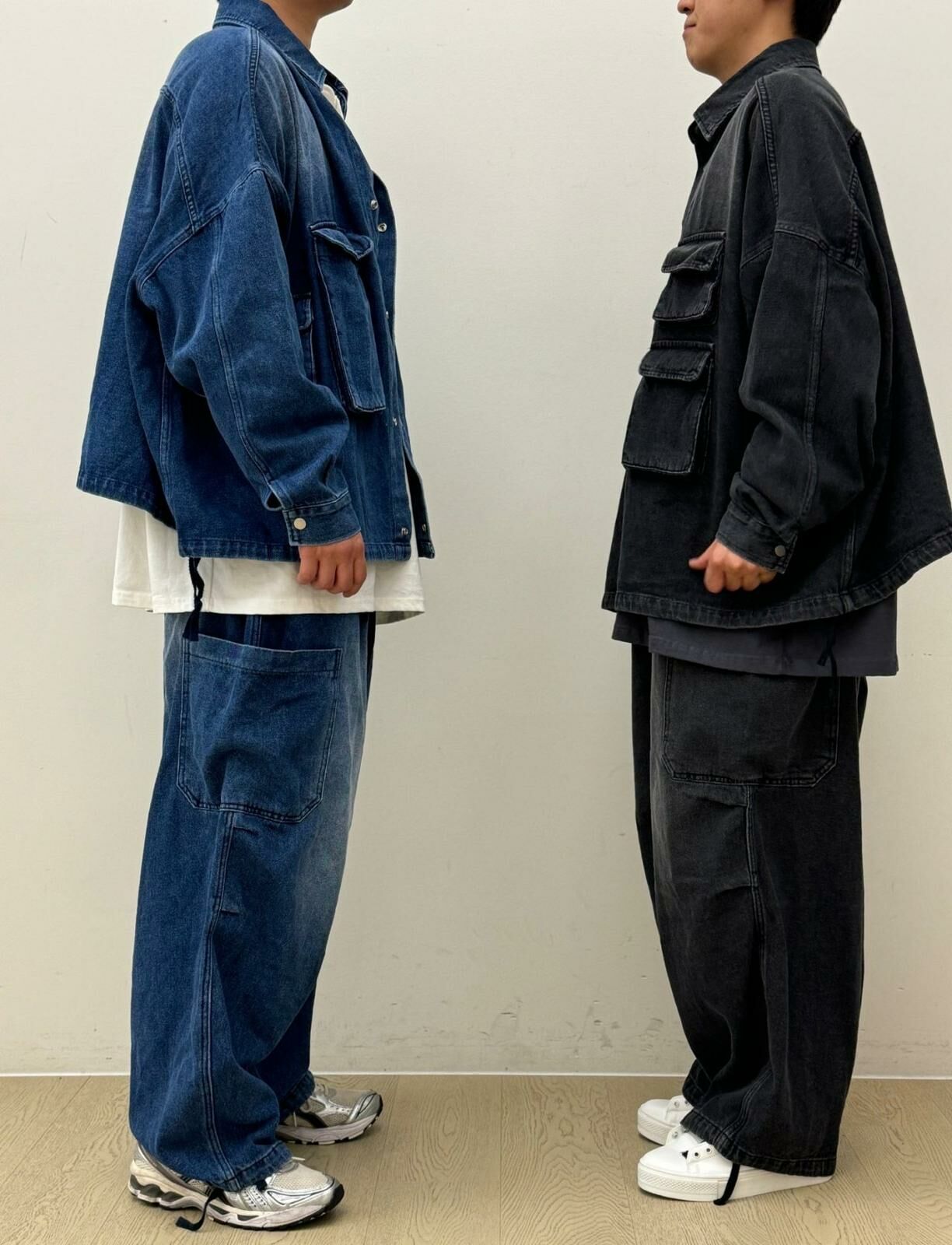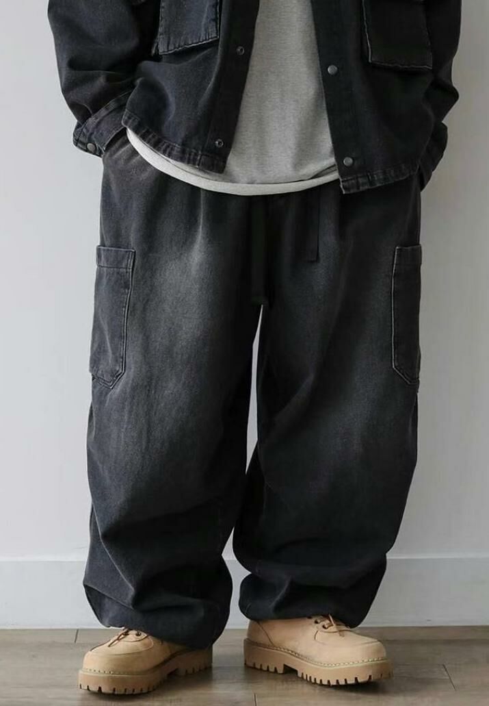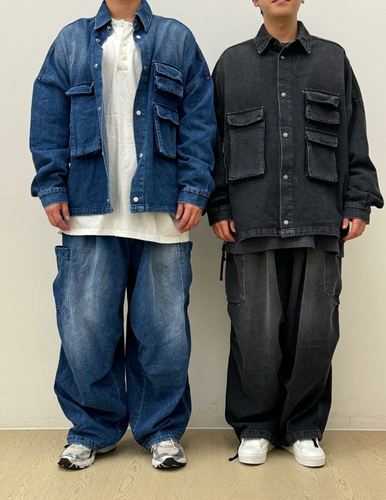 洗水淨色工裝鬆身牛仔褲 FARMERS-038J