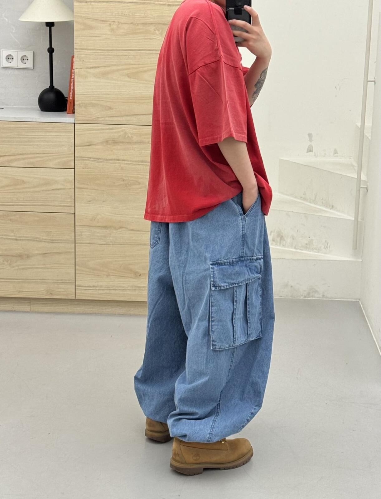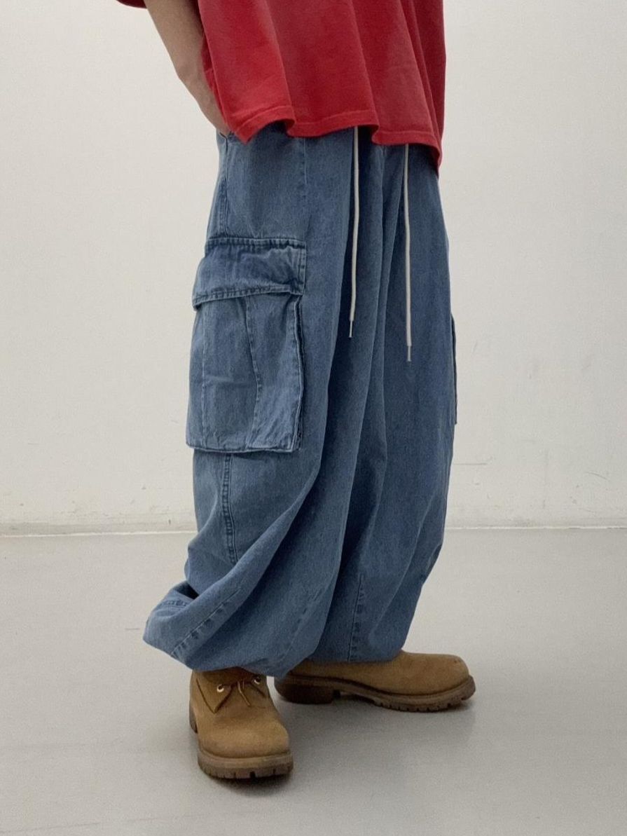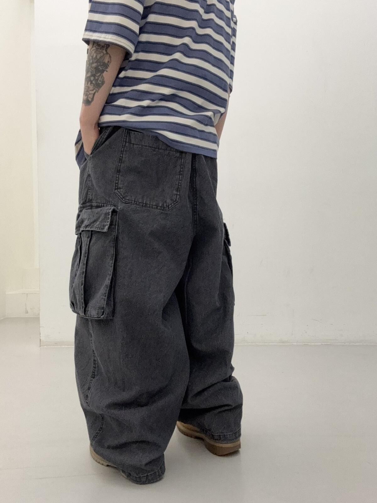 洗水可束腳工裝牛仔鬆身褲 FARMERS-133J